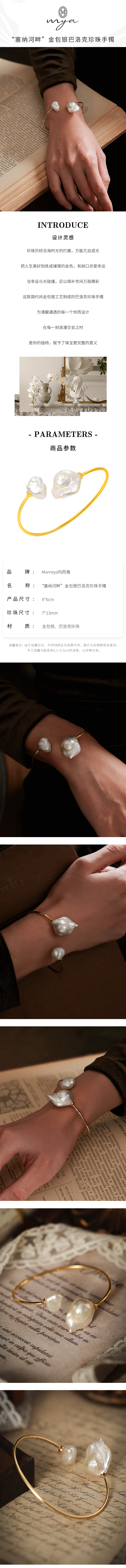 Manreya玛芮雅“塞纳河畔”金包银巴洛克珍珠手镯复古法式手链