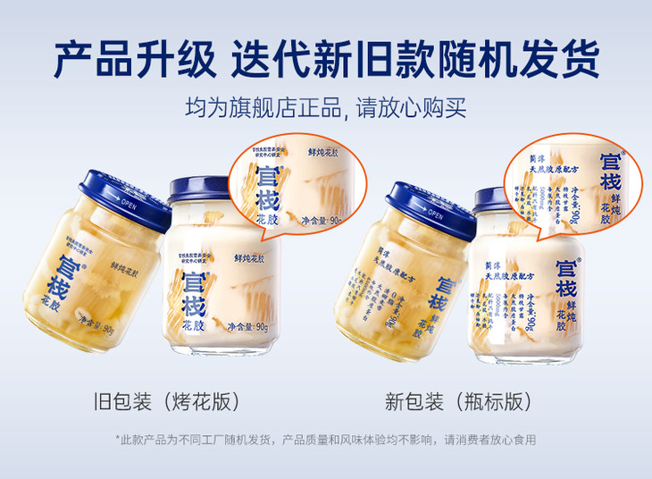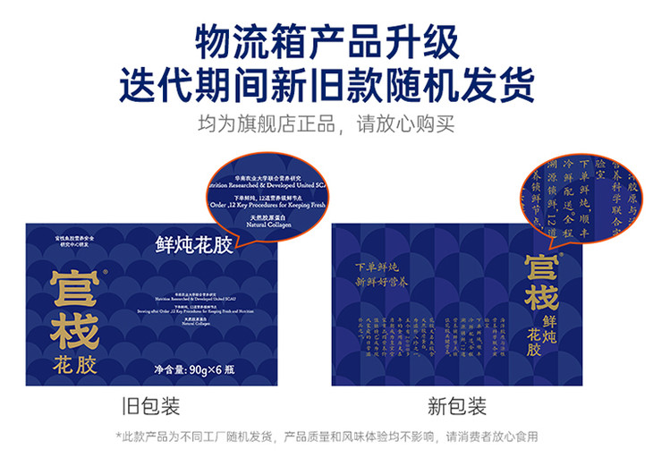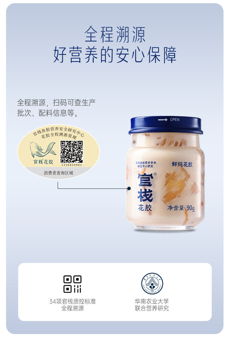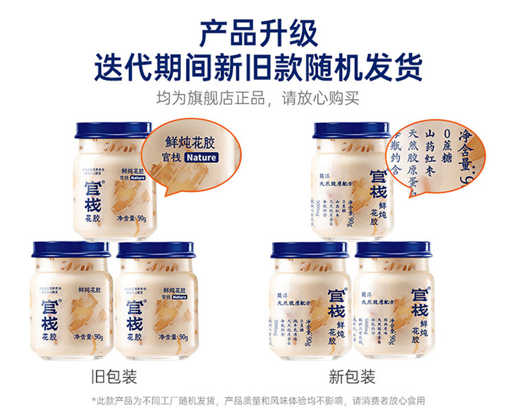【限时特惠】周套餐-官栈鲜炖花胶3口味任选(90g*6瓶装) 商品缩略图0 【限时特惠】周套餐-官栈鲜炖花胶3口味任选(90g*6瓶装) 商品缩略图1 【限时特惠】周套餐-官栈鲜炖花胶3口味任选(90g*6瓶装) 商品缩略图2 【限时特惠】周套餐-官栈鲜炖花胶3口味任选(90g*6瓶装) 商品缩略图3