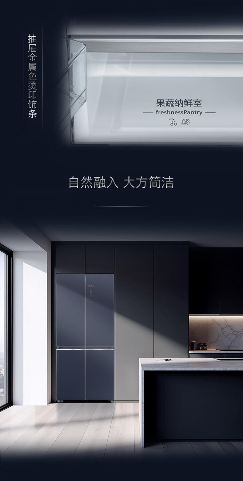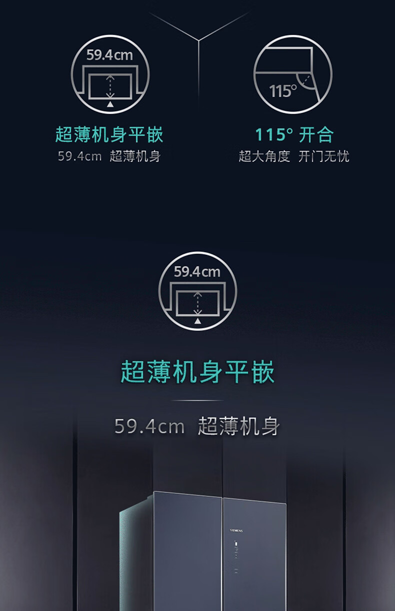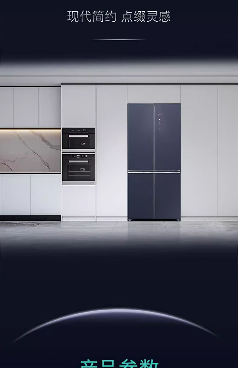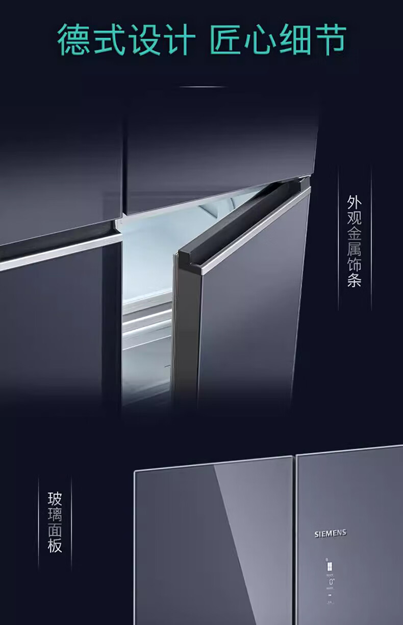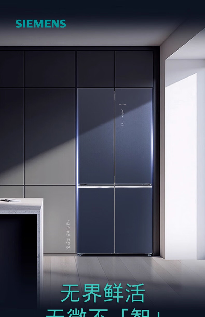 西门子(SIEMENS)十字对开门平嵌冰箱503升大容量存储 抗菌净味 智能抗冷凝技术 三种变温储鲜 玻璃面板 KC88EA256C 湖蕴蓝