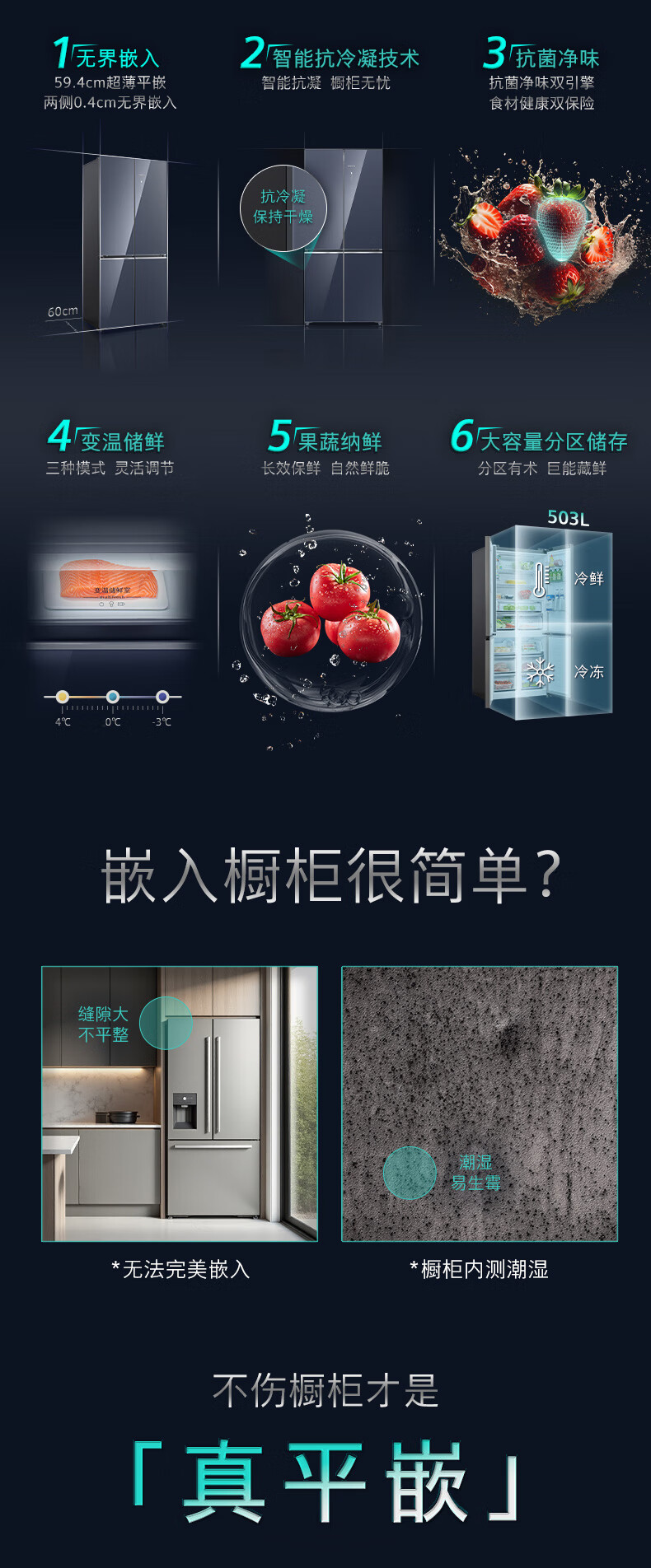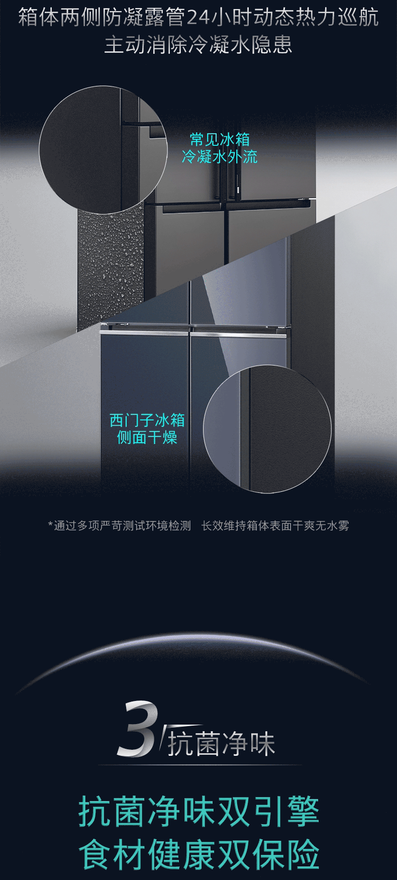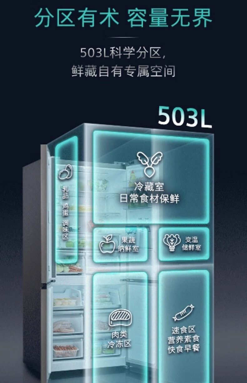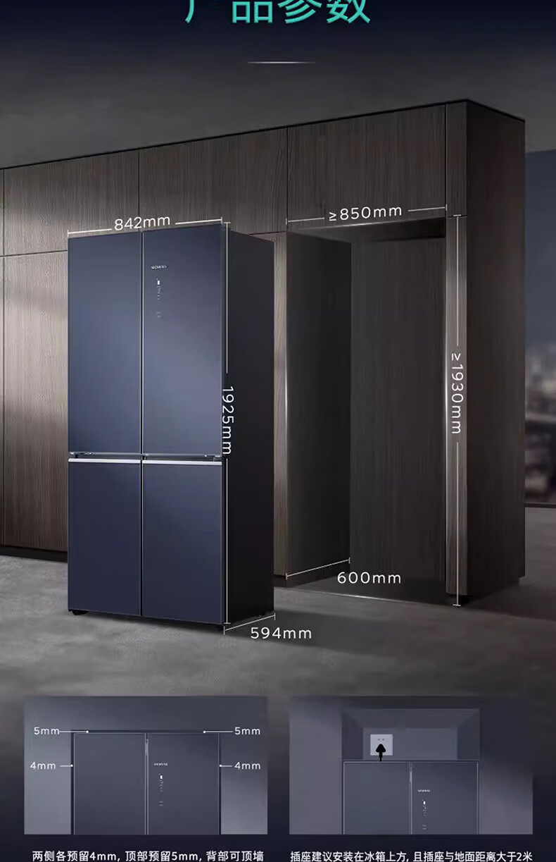 西门子(SIEMENS)十字对开门平嵌冰箱503升大容量存储 抗菌净味 智能抗冷凝技术 三种变温储鲜 玻璃面板 KC88EA256C 湖蕴蓝