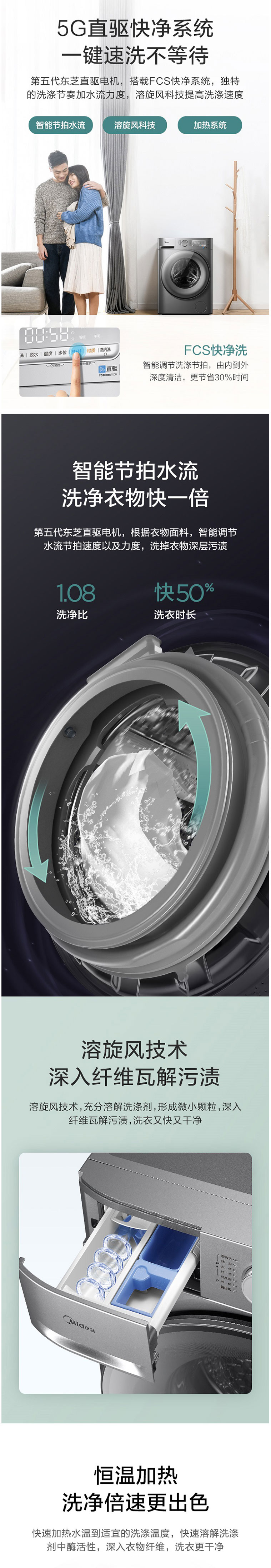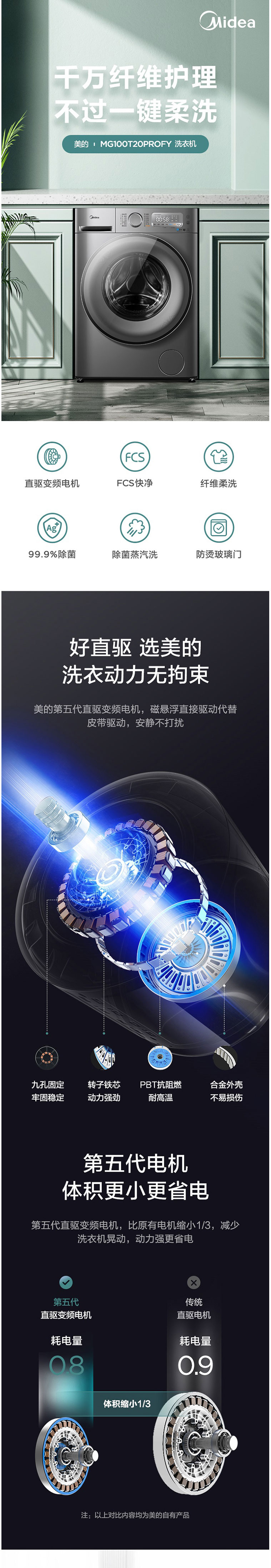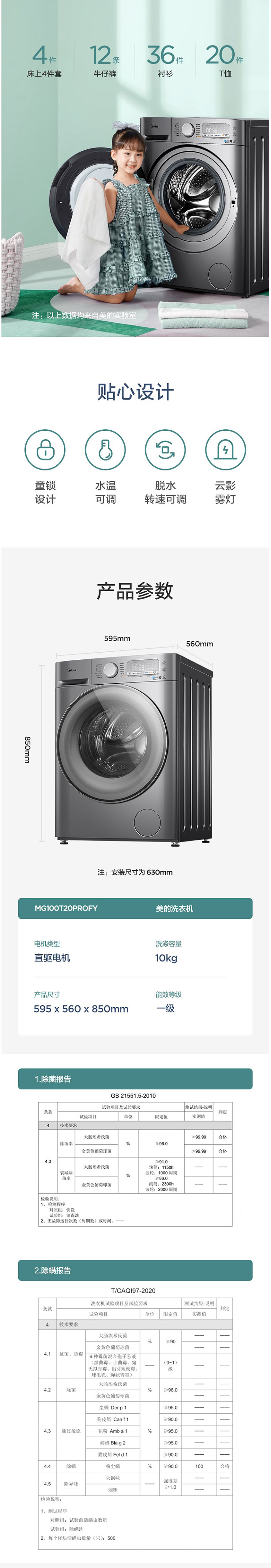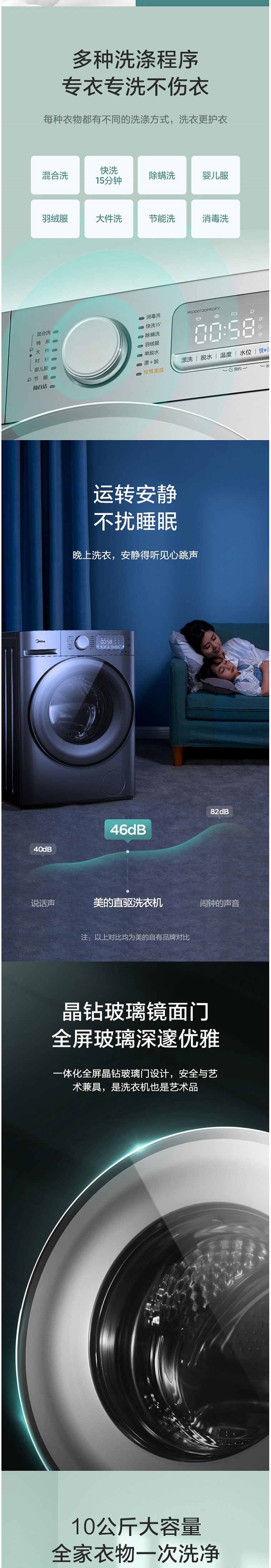 美的(Midea)MG100T20PROFY 10公斤 滚筒洗衣机 巴赫银
