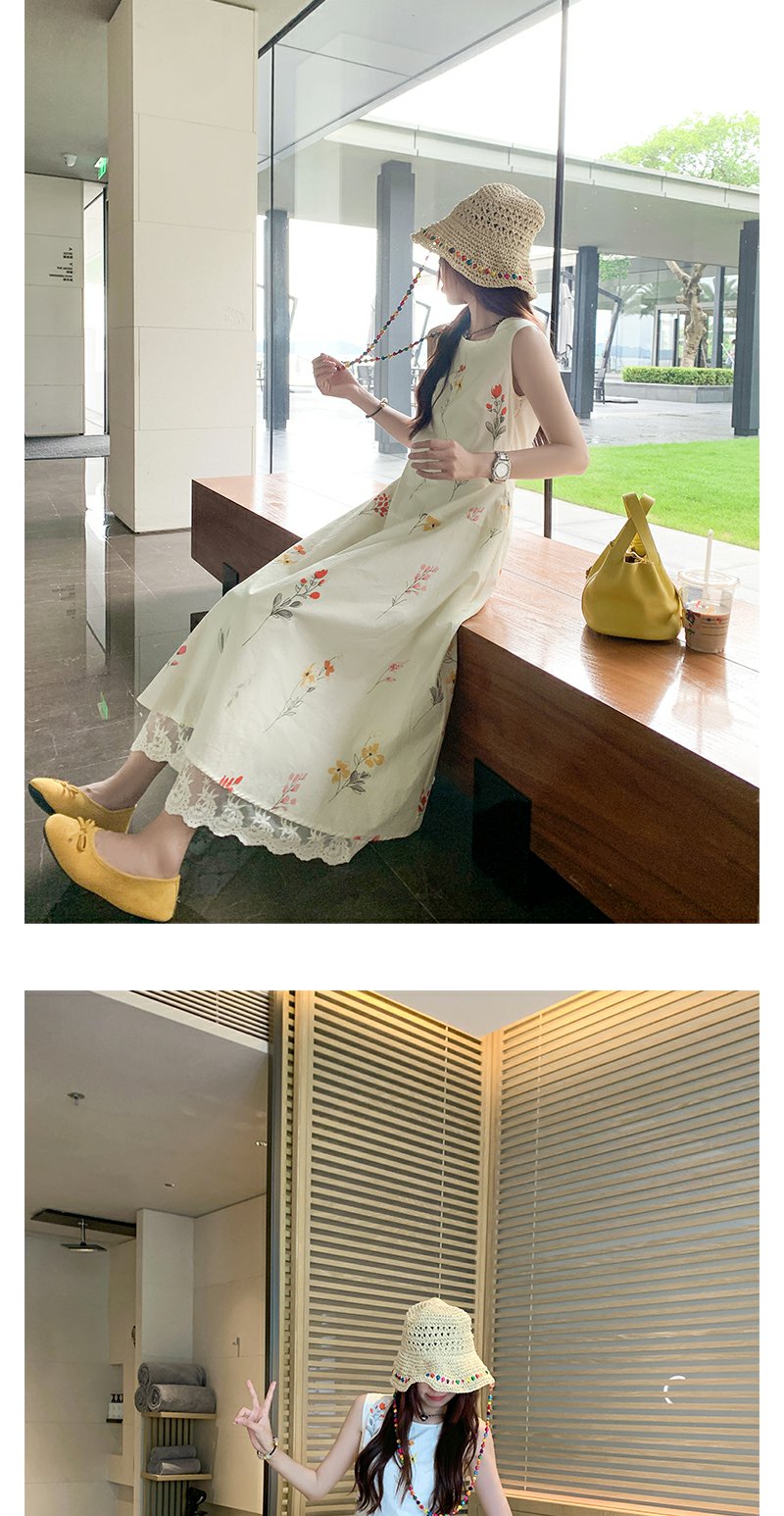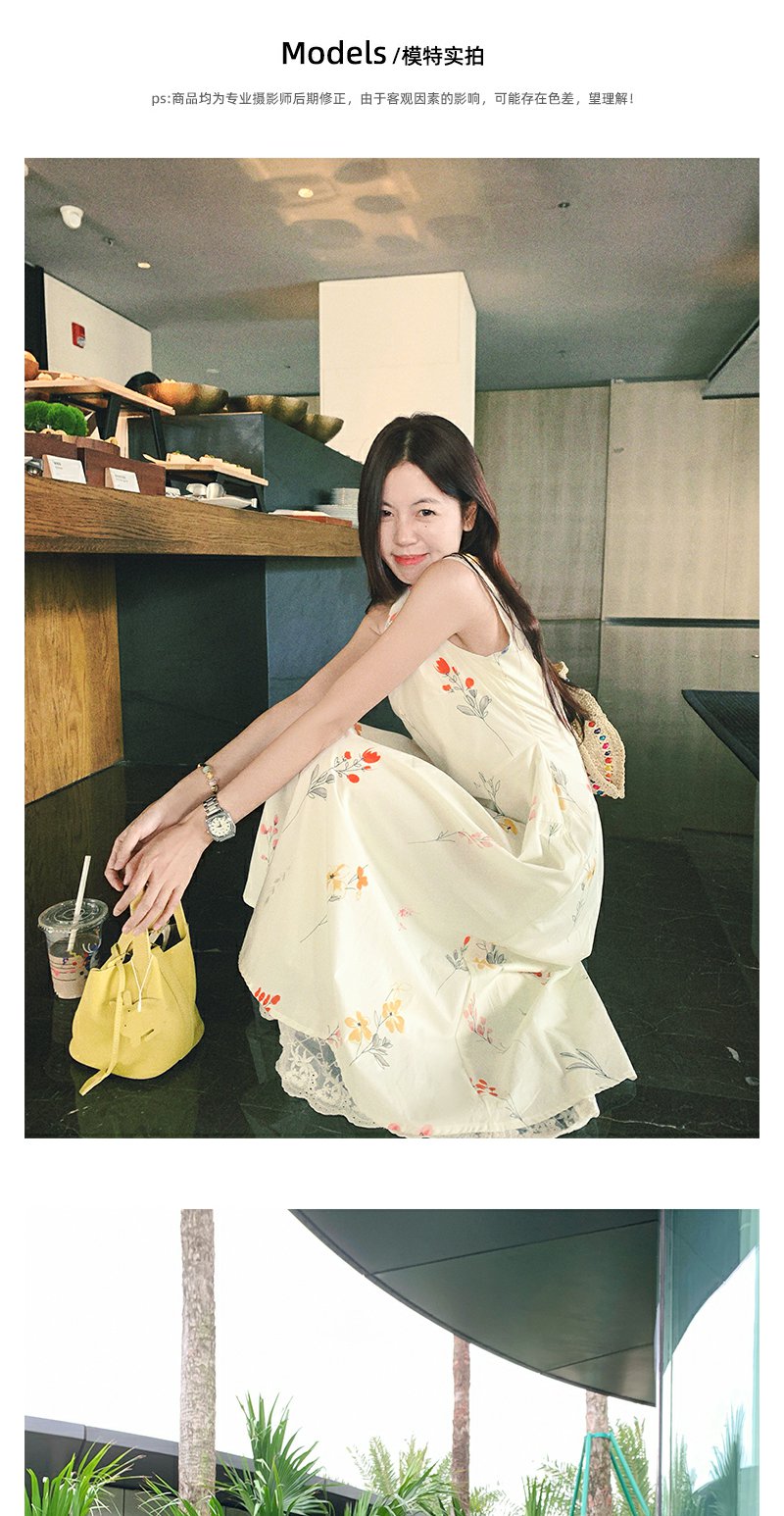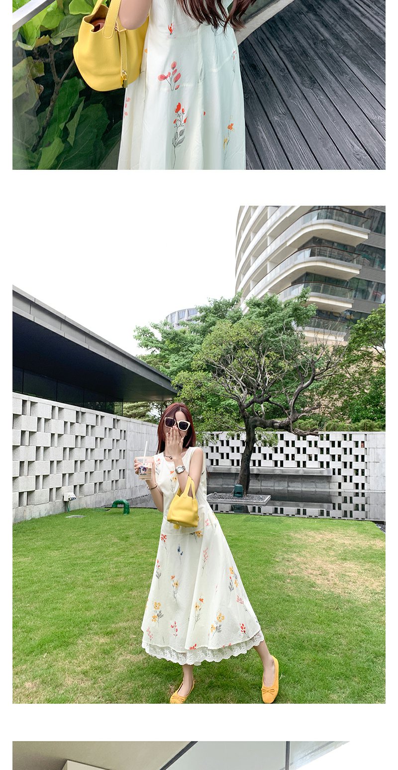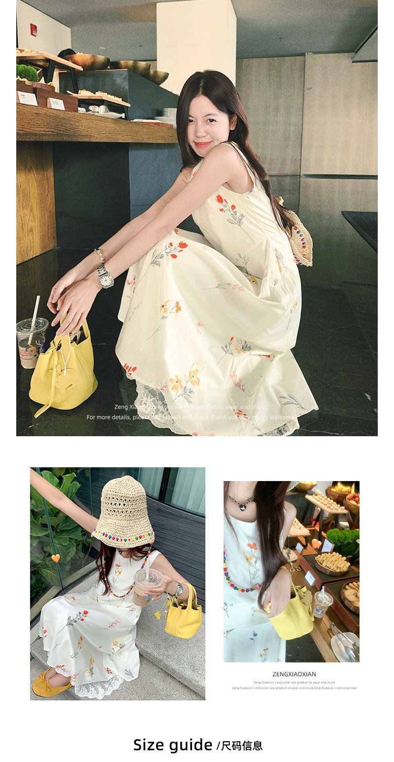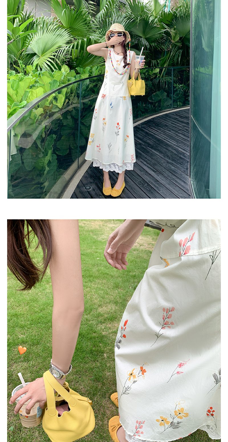 <曾小咸推荐>法式温柔风植物印花无袖连衣裙