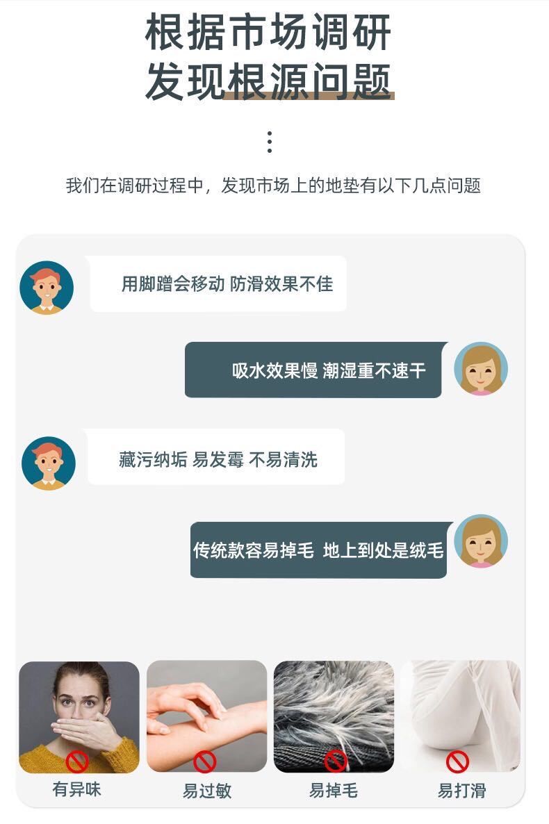 我真的太太太爱这个地垫了!特别喜欢这种提升幸福感的居家好物!偶像派+实力派的代表,海量吸水,快速干爽。软硅藻面料干湿防滑不起球,久用不易发霉。这张软垫软得不仅舒服,吸水效果更是神奇。刚出浴,只要踩上去,脚上水渍一下就没了
