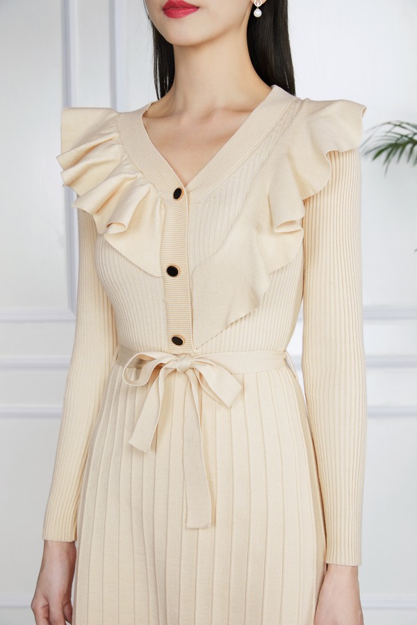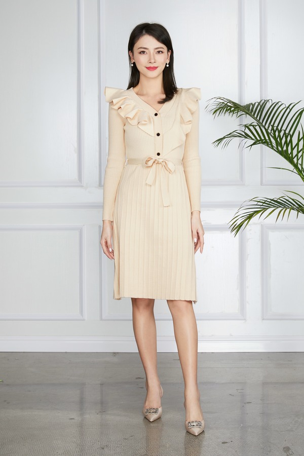 L.Fleuri 米色针织收腰连衣裙 11539