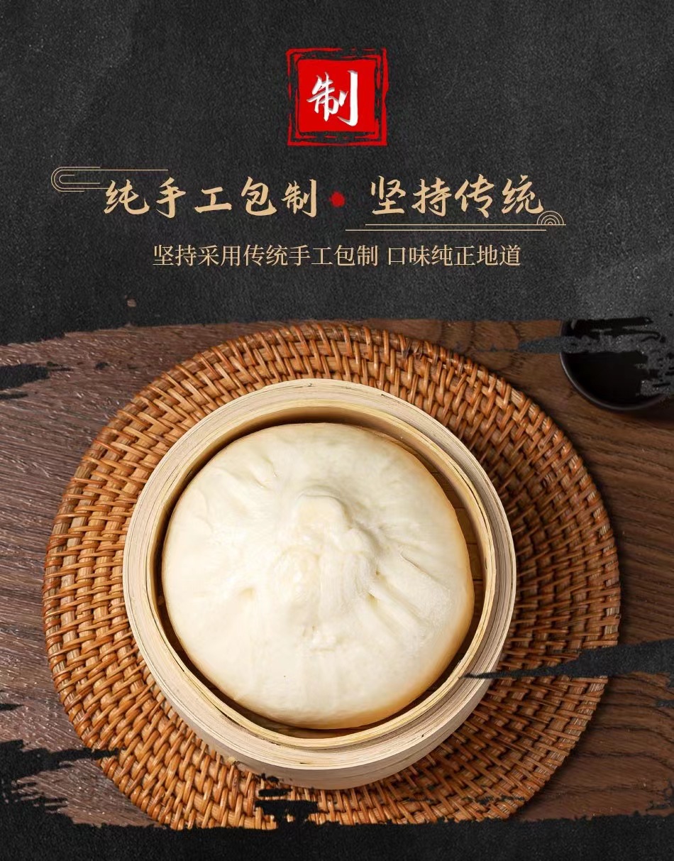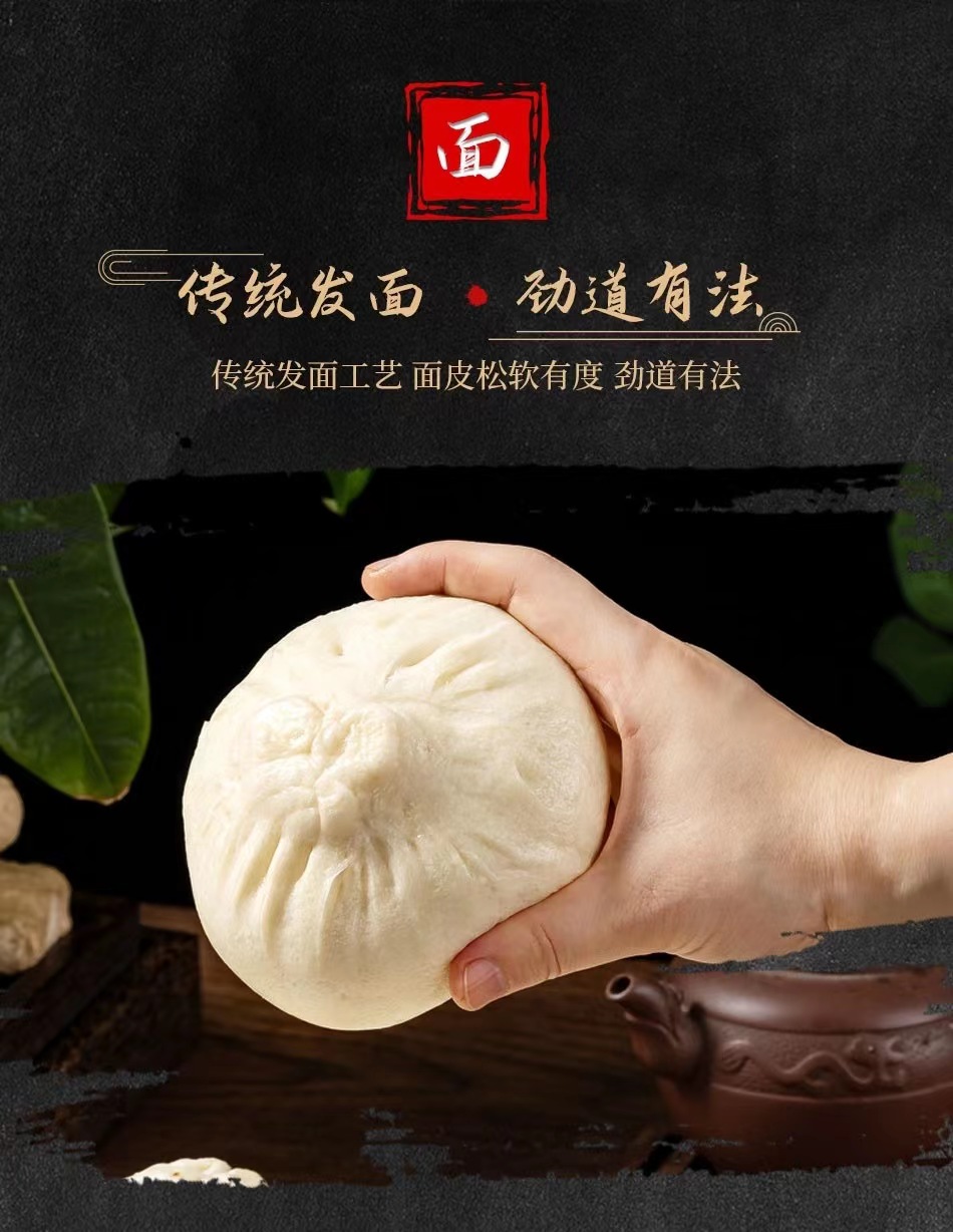 与市面上的大多数包子不同,金陵大肉包从不适用泡打粉,而是采取传统的碱发工艺,所以面皮略微发黄,面香十足