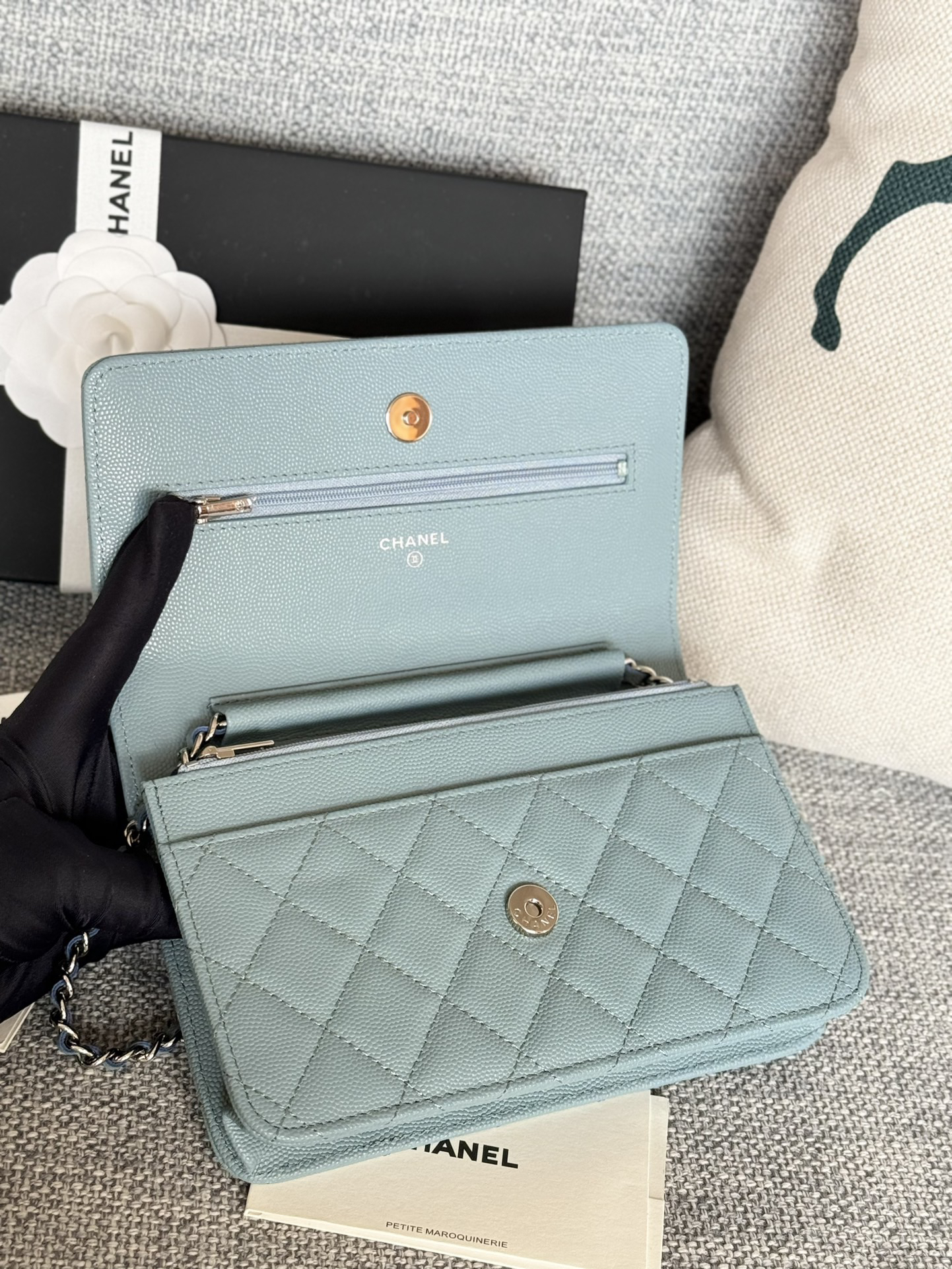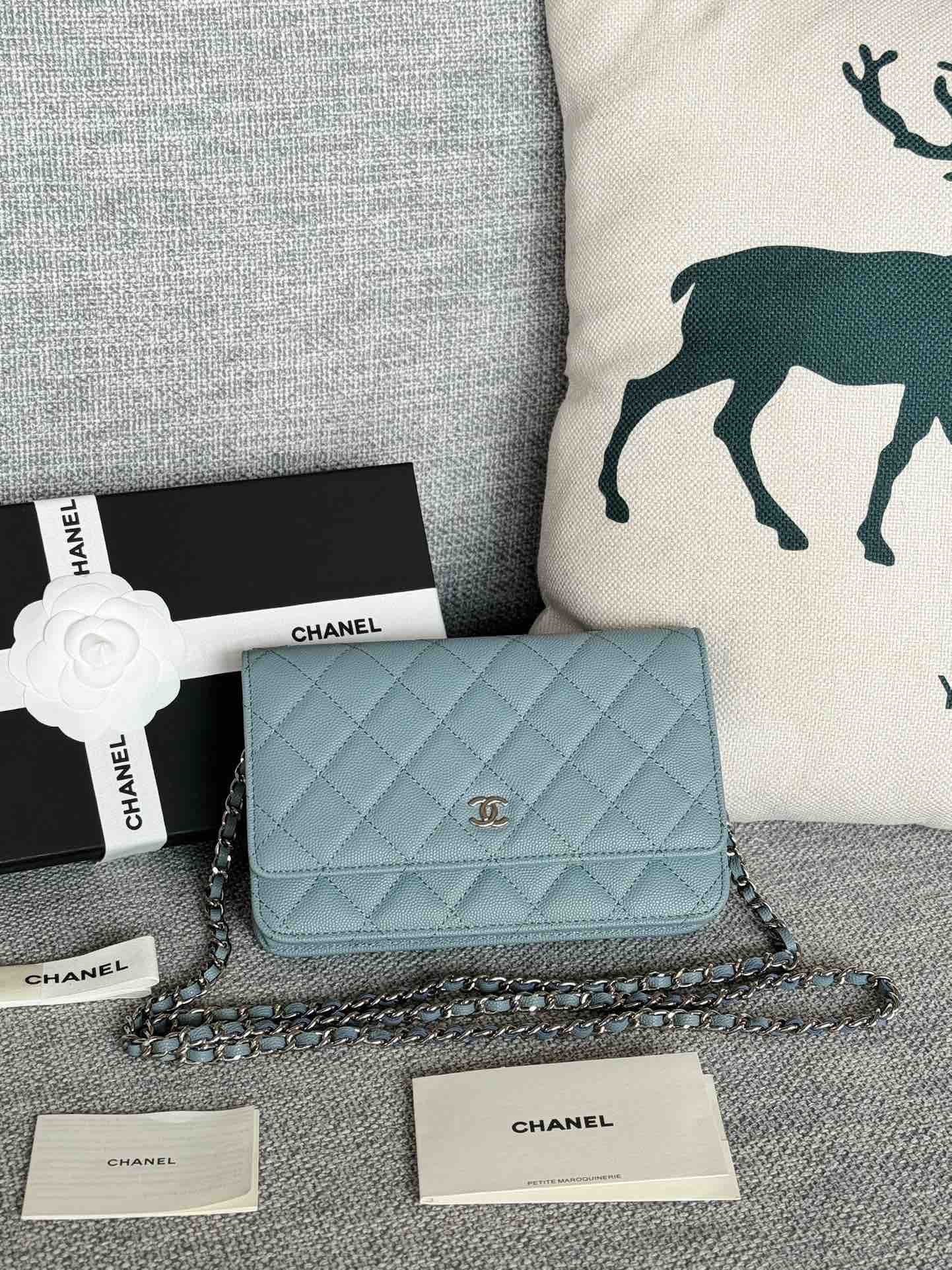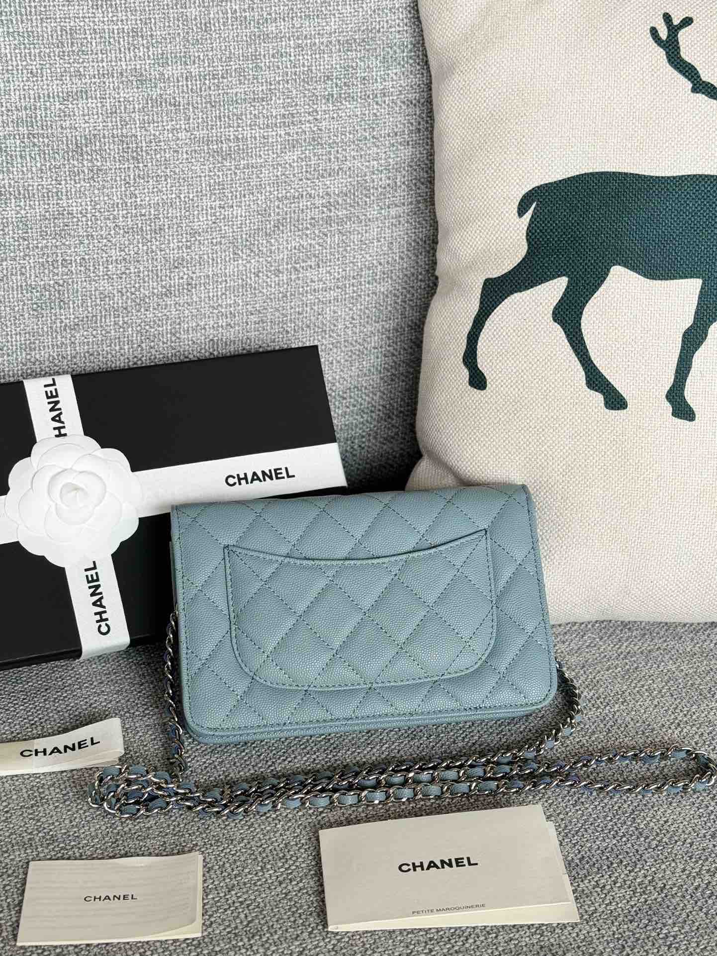 香奈儿woc链条包🉐️牛皮-湖蓝色银扣(⚠️细球纹)