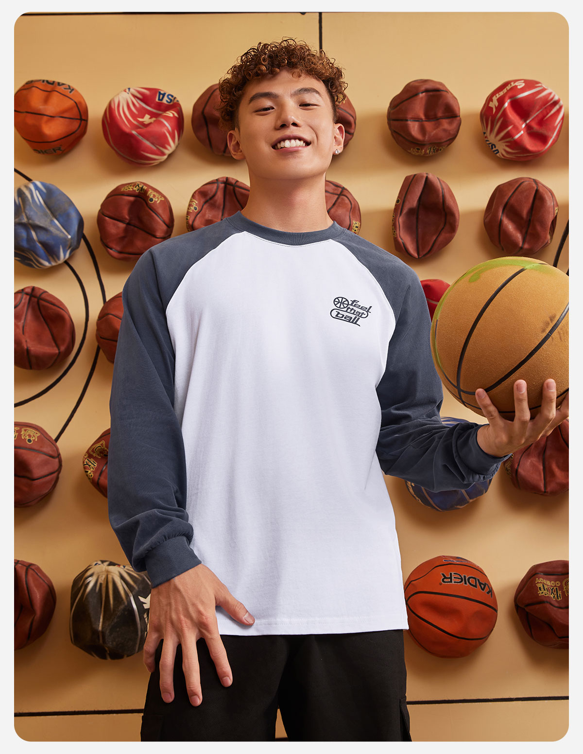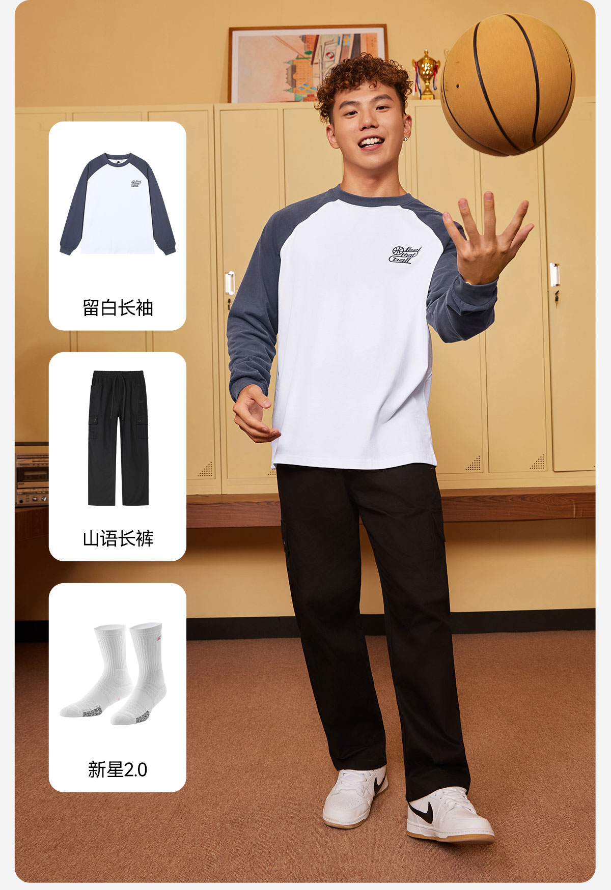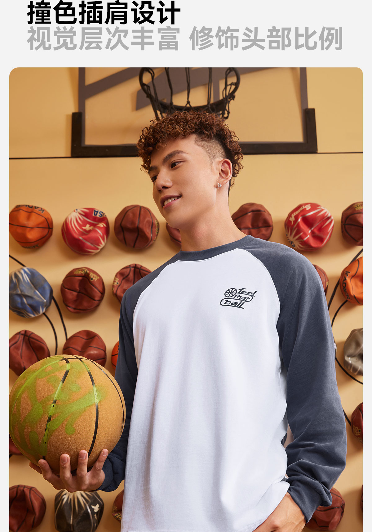 有志者UZIS 美式运动长袖男纯棉T恤篮球跑步潮流拼色打底衫[留白]