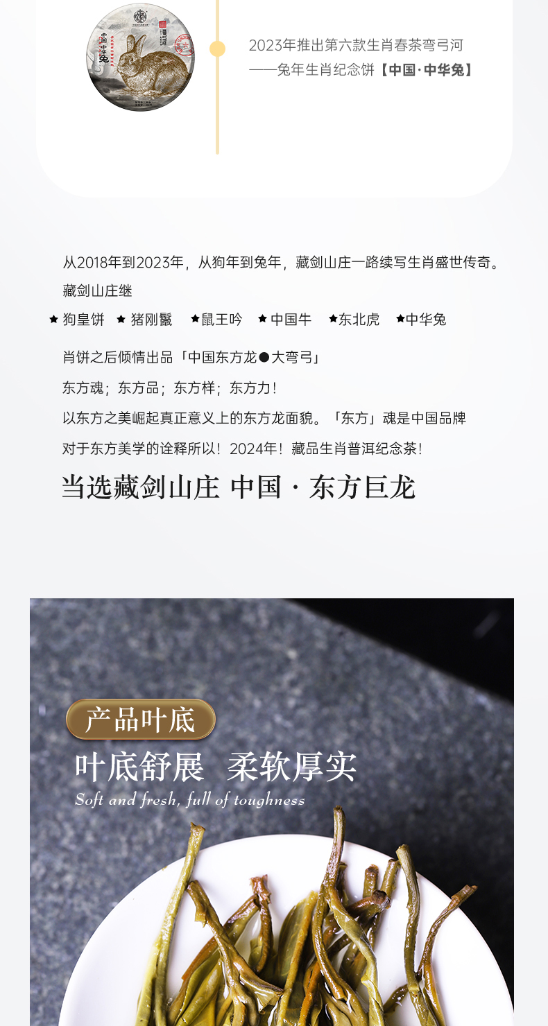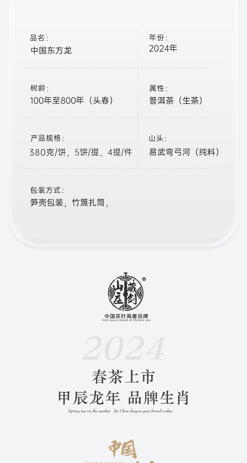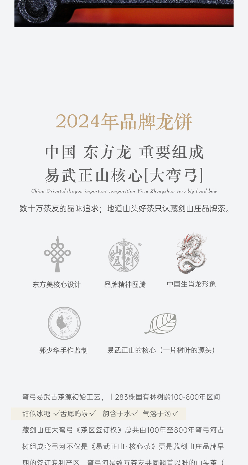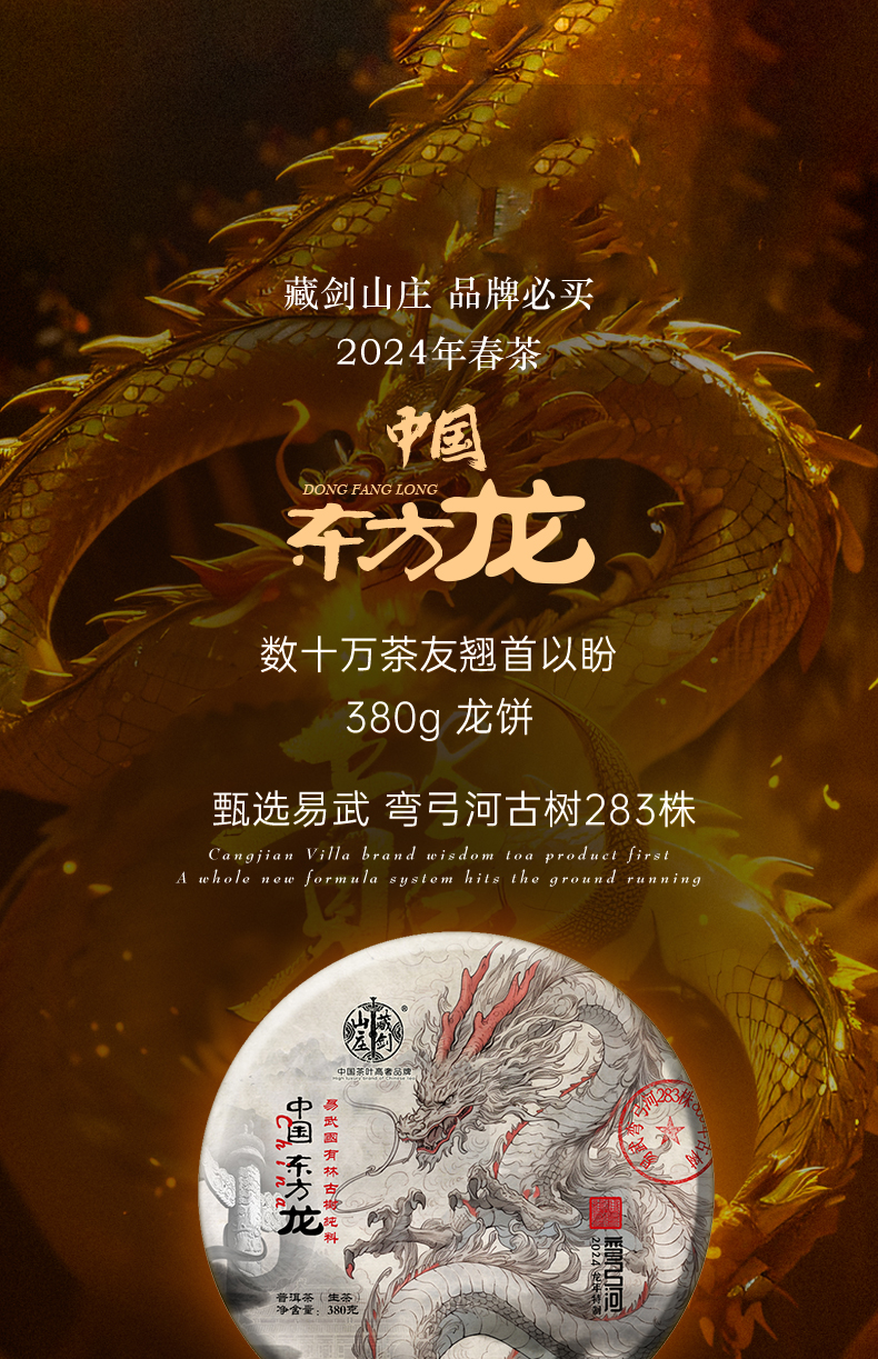 【藏剑山庄】云南普洱茶生茶 2024年春茶 龙年生肖易武弯弓河东方龙380克饼茶