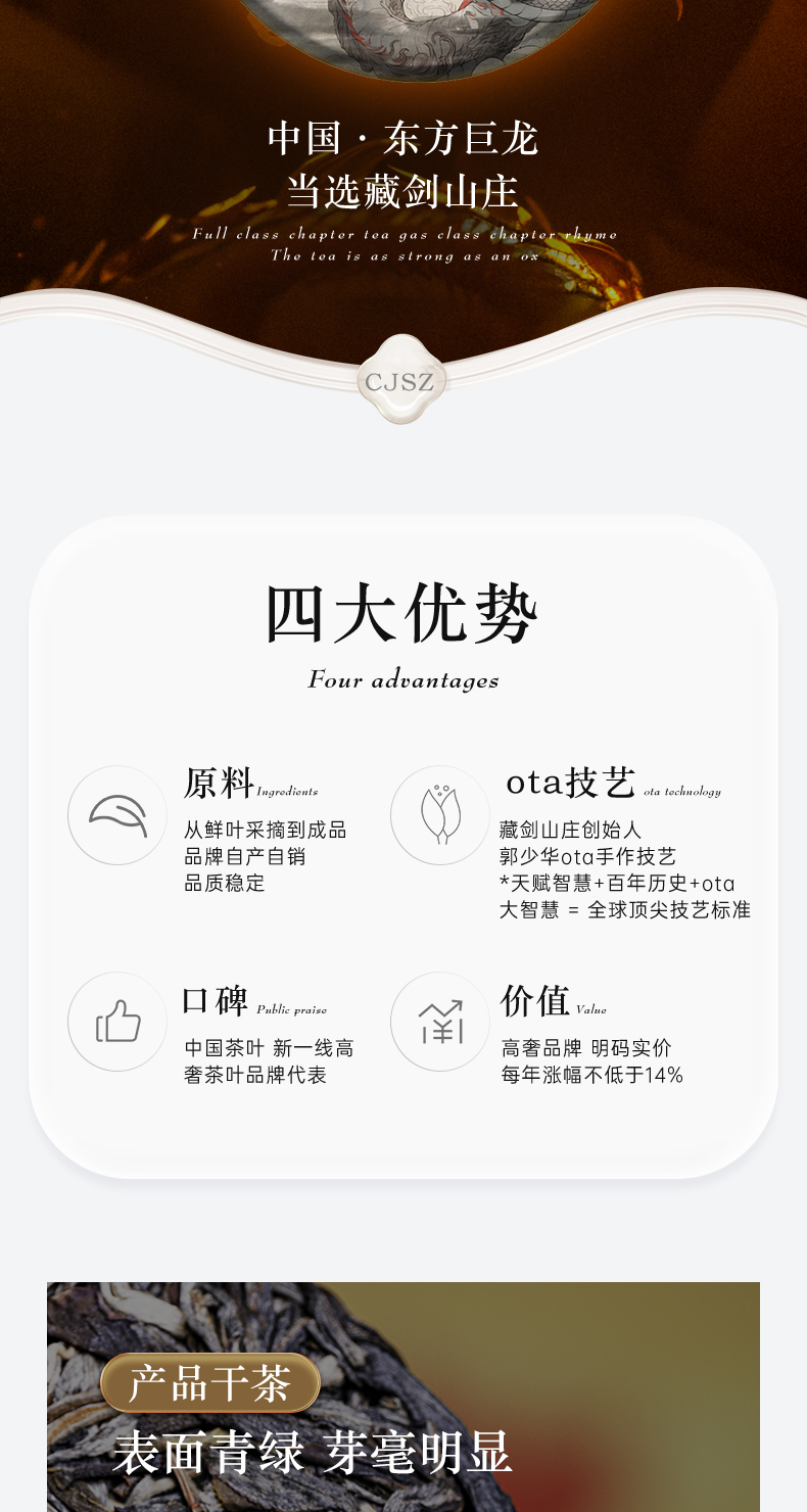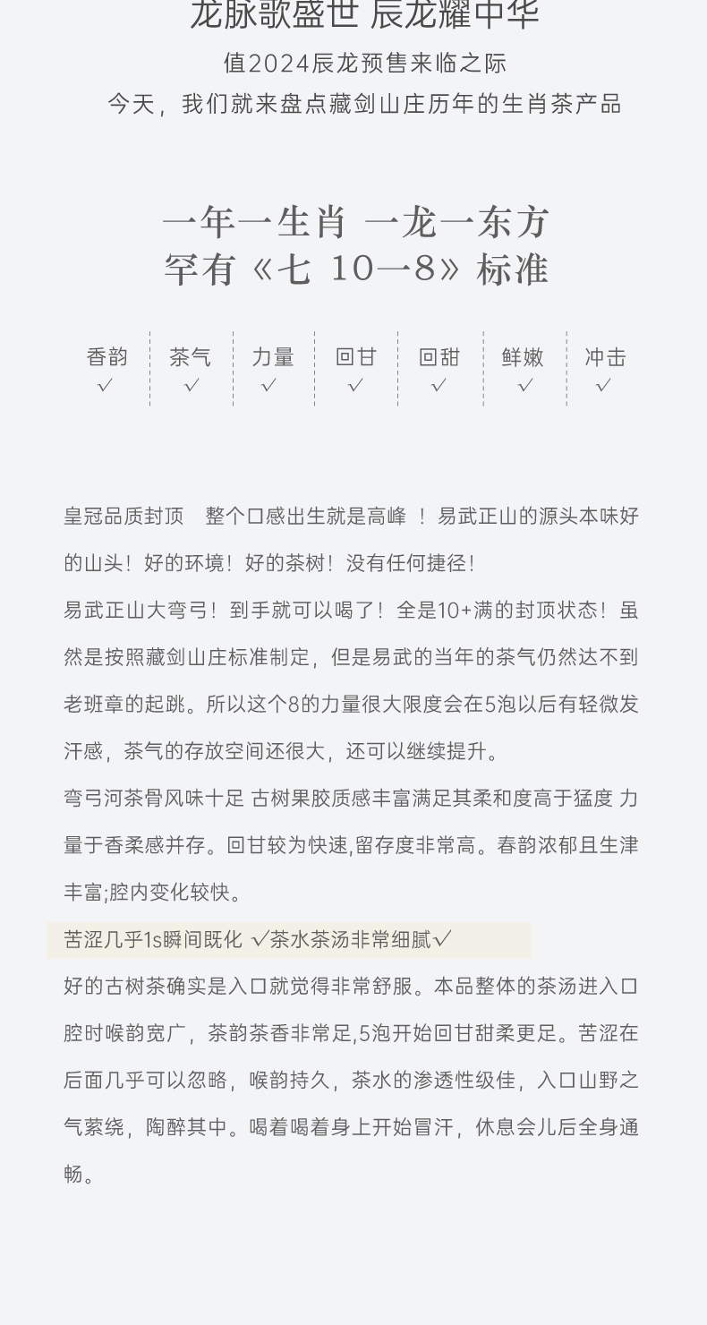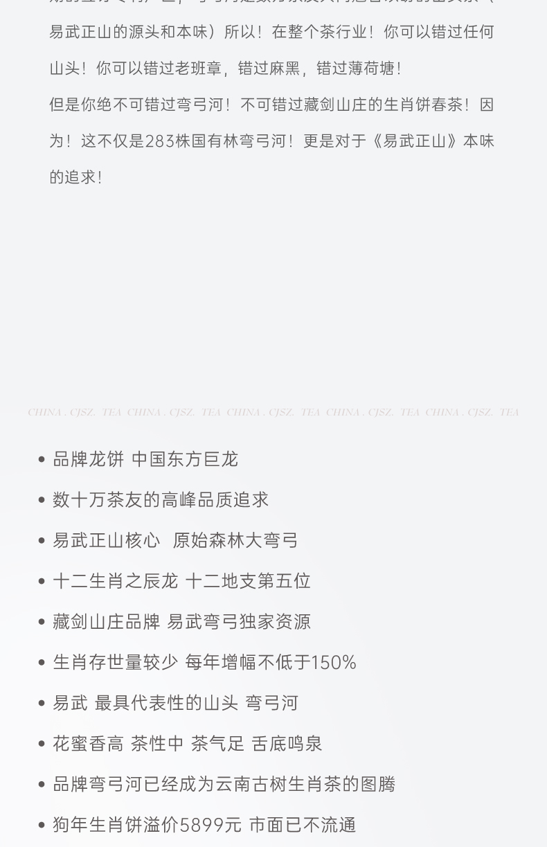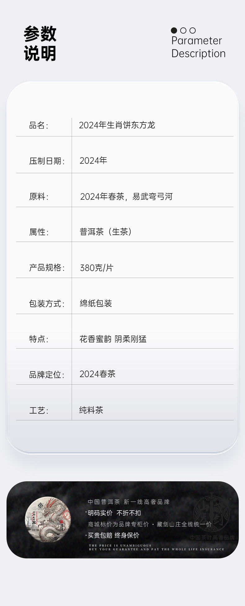 【藏剑山庄】云南普洱茶生茶 2024年春茶 龙年生肖易武弯弓河东方龙380克饼茶