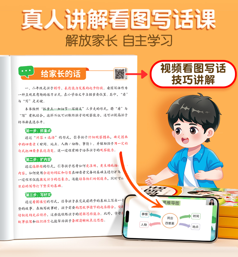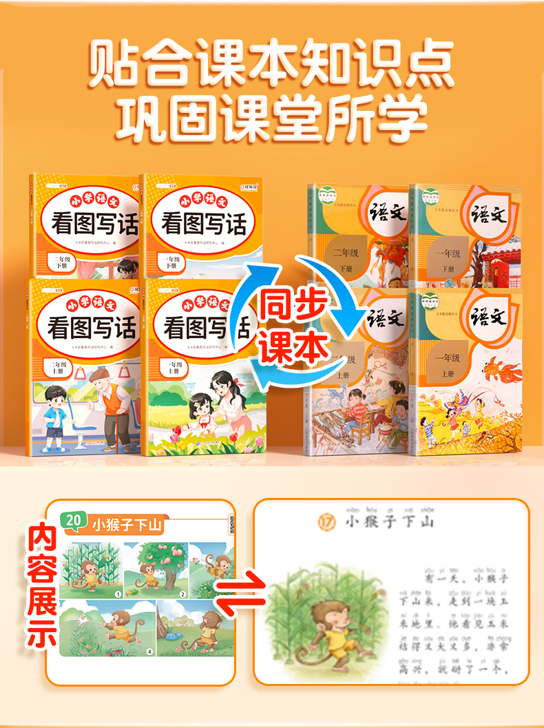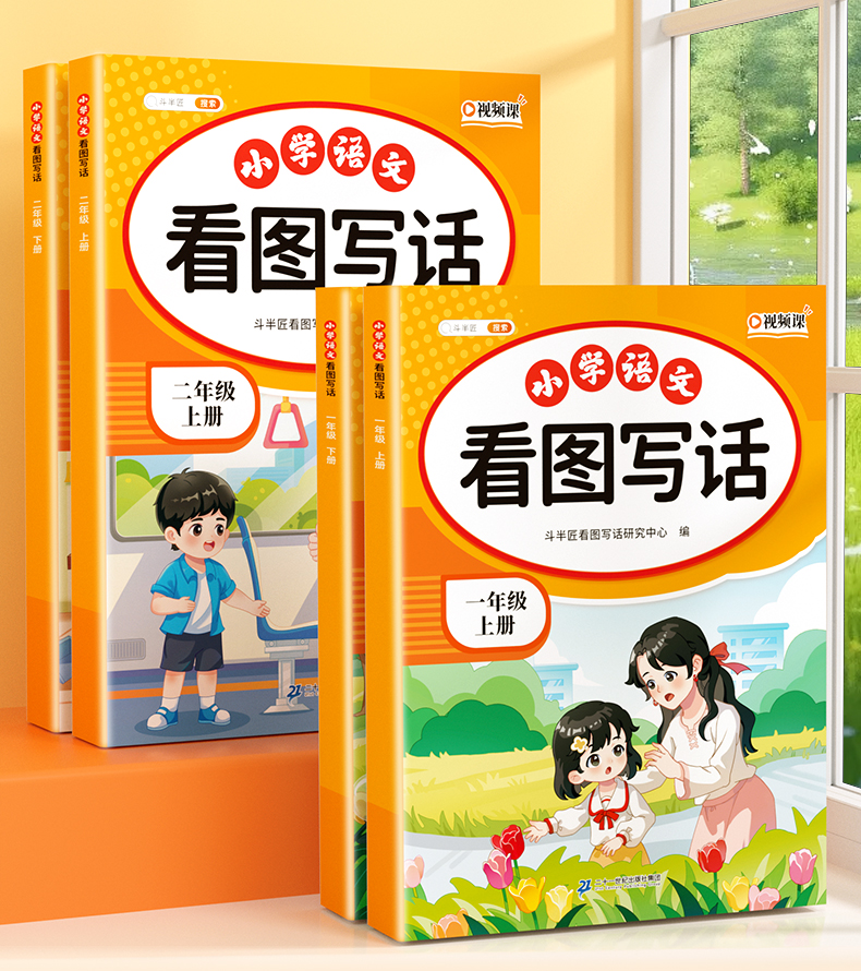 【斗半匠】小学语文看图写话一二年级彩图注音同步课本视频讲解带练习练字帖