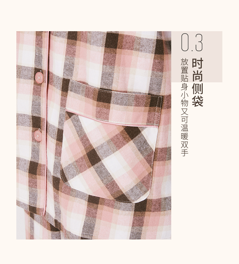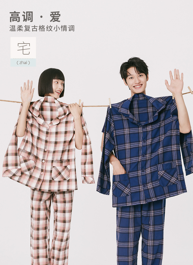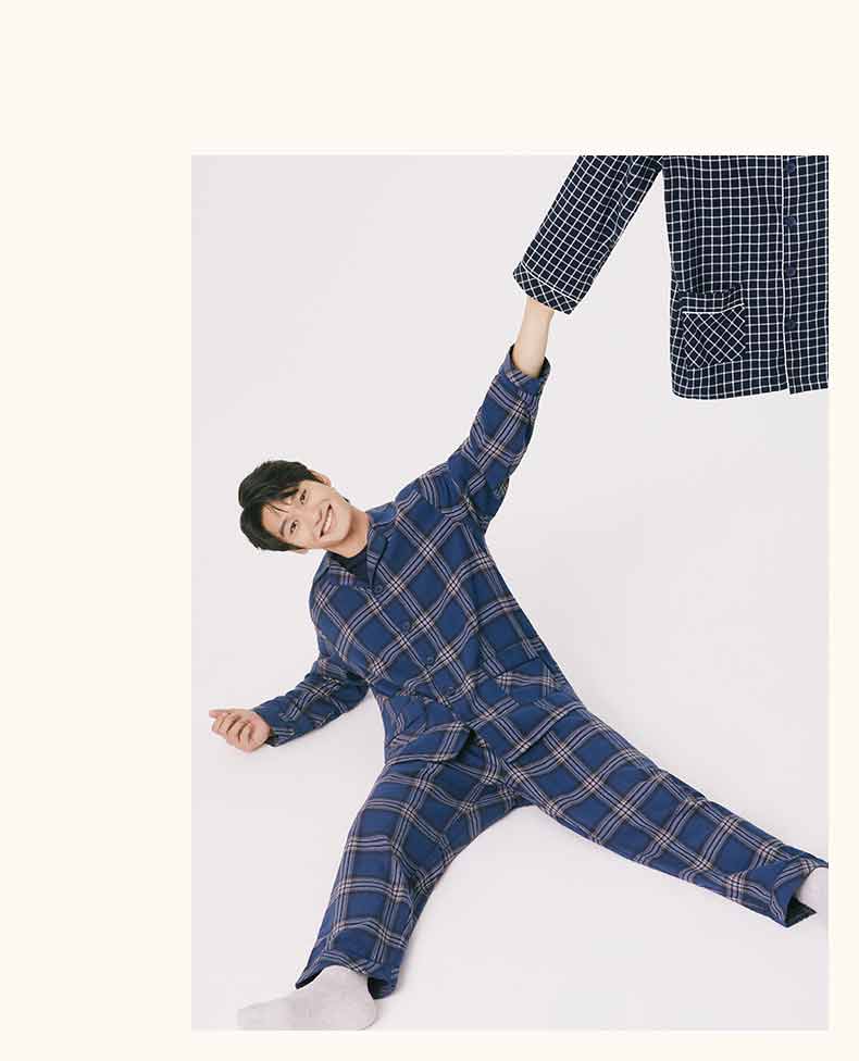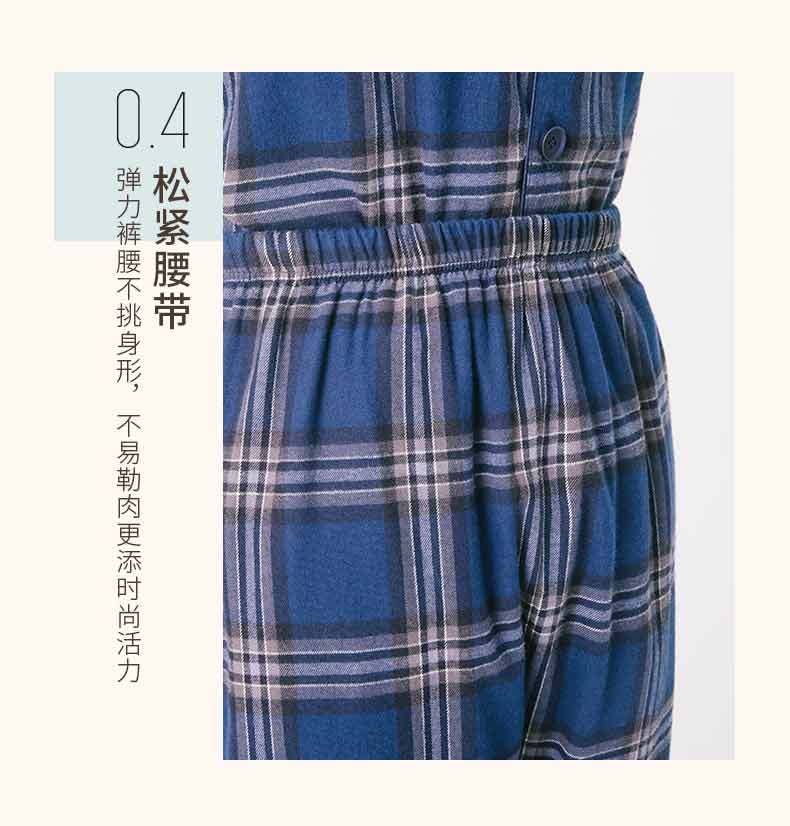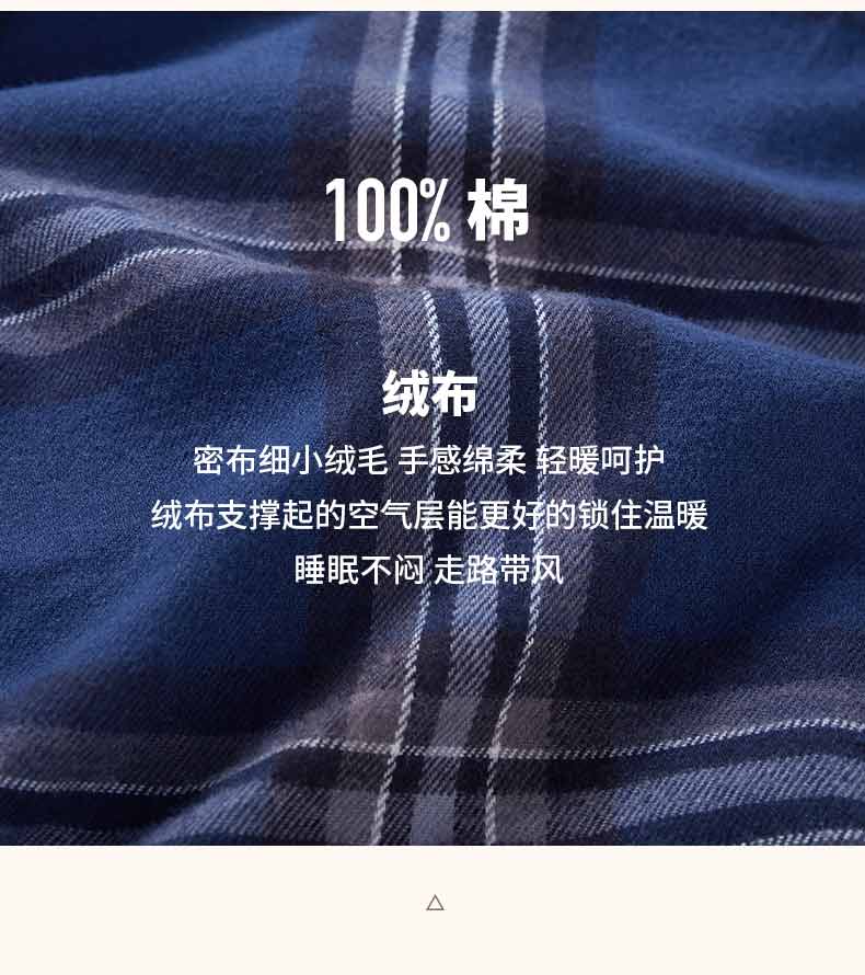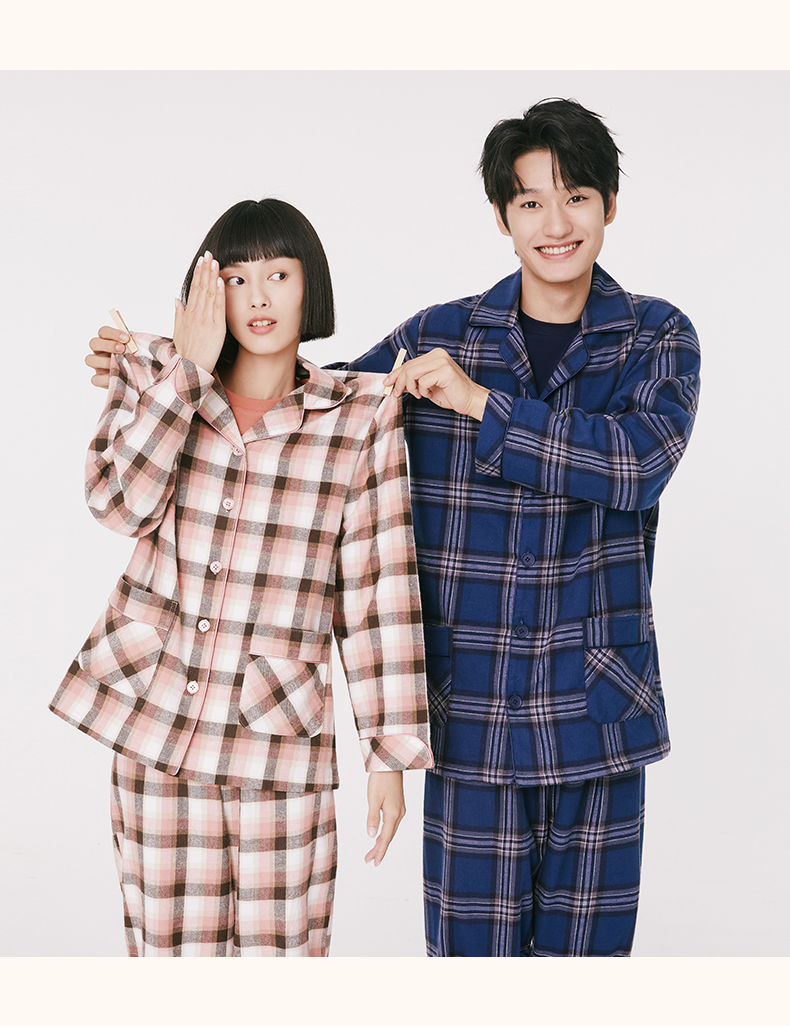 Threegun三枪 【彩格绒布】翻领开襟男士休闲家居套家居服-80517D211