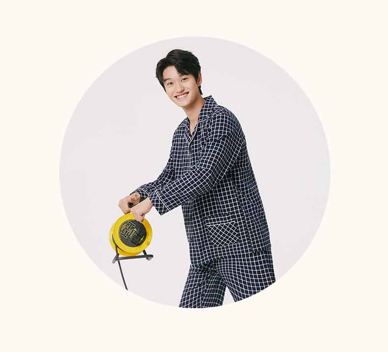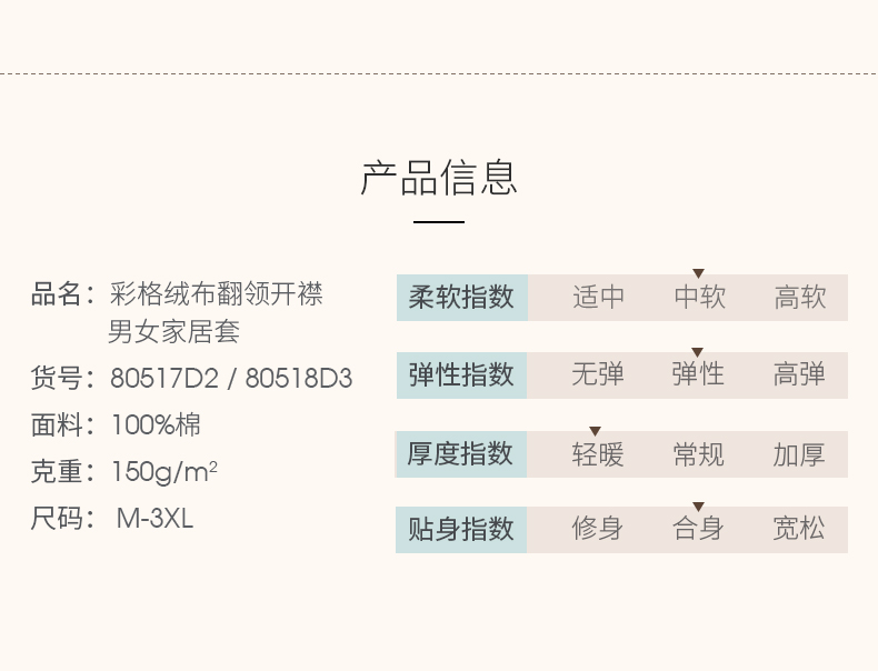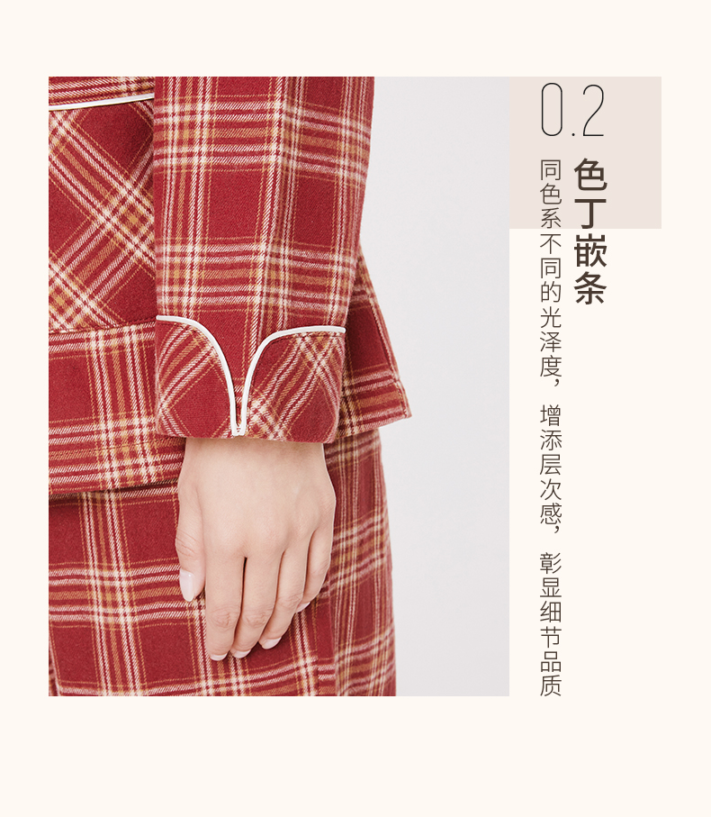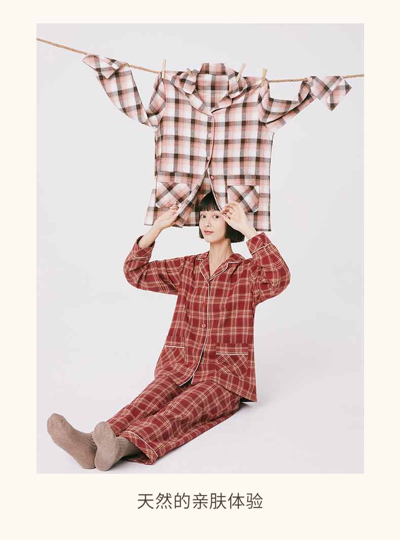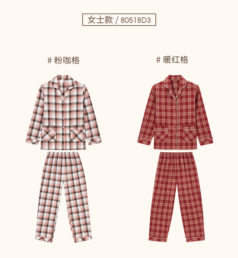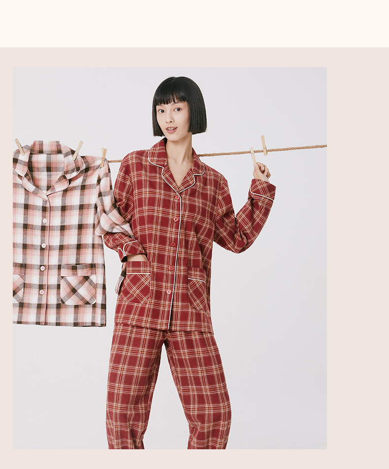 Threegun三枪 【彩格绒布】翻领开襟男士休闲家居套家居服-80517D211
