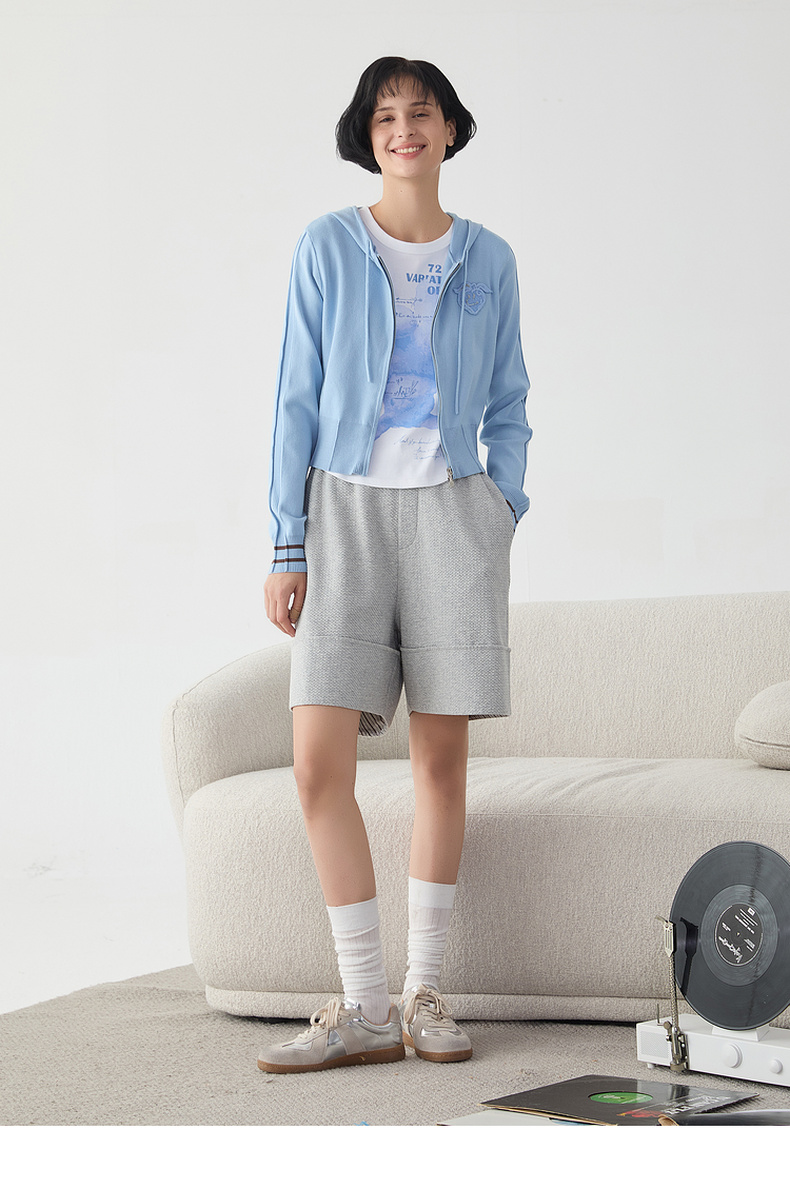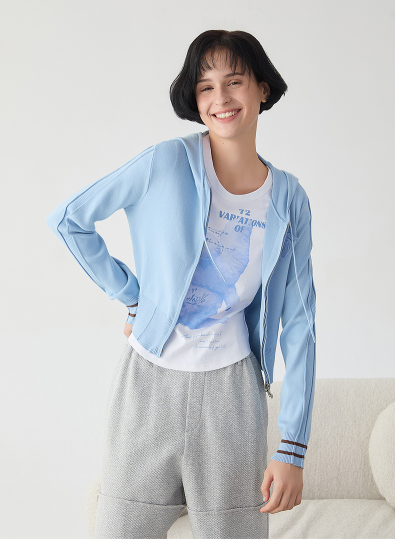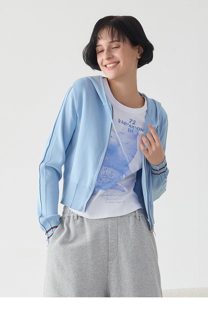 谜底连帽针织衫外套2025春新品学院风百搭针织开衫长袖251MZ0325