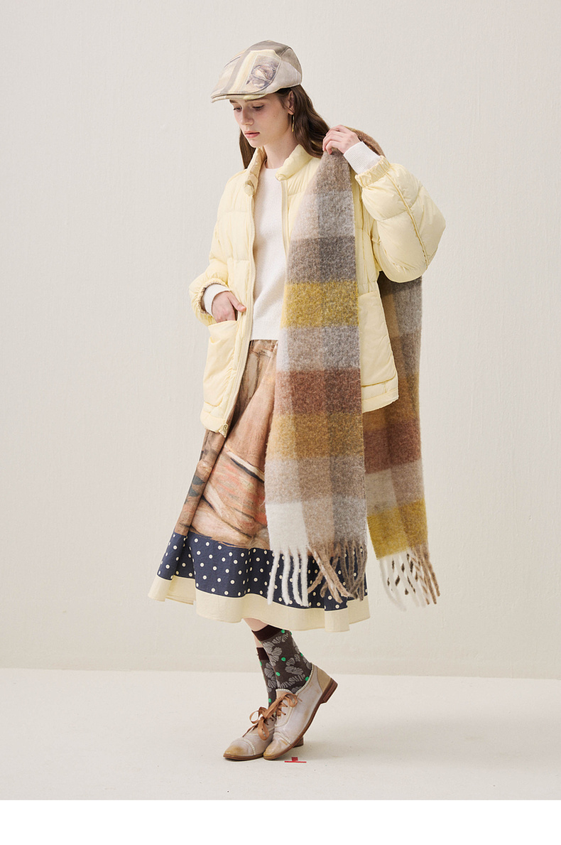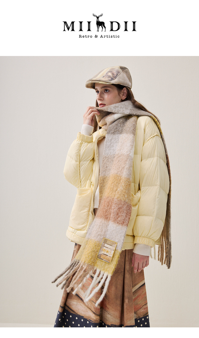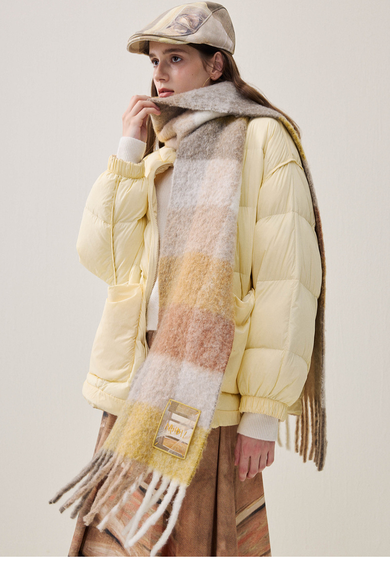 谜底格子围巾2025冬新品流苏慵懒率性格纹保暖大围巾女254MQ1953