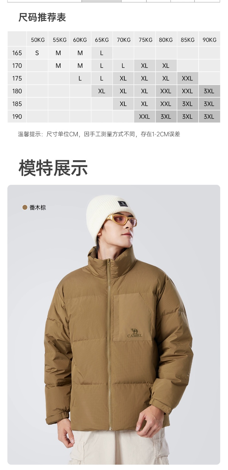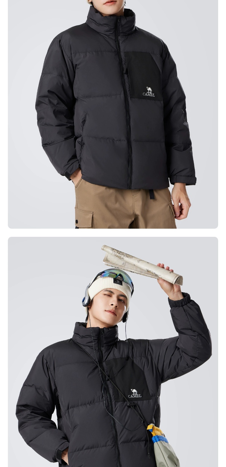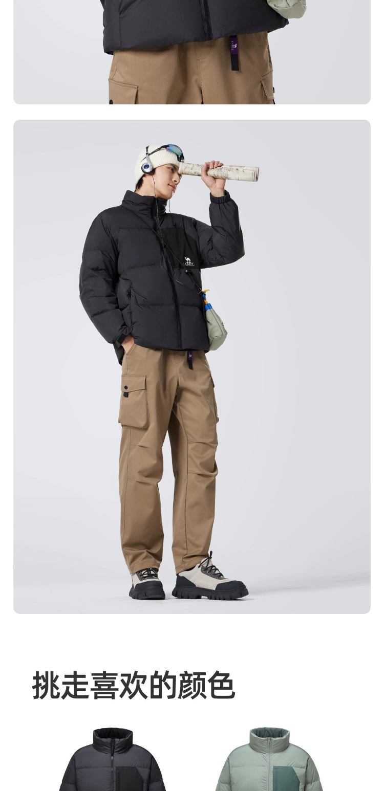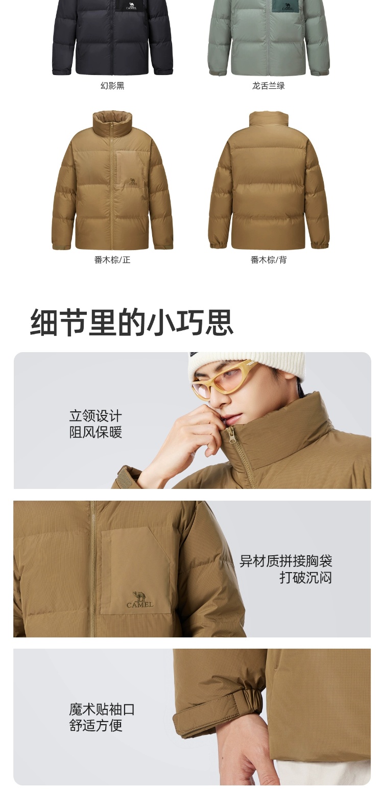 骆驼男装立领羽绒服男冬季新款加绒加厚保暖短款户外休闲外套 M14CR07703