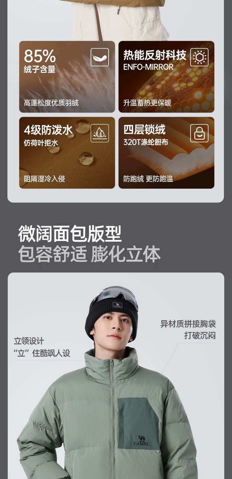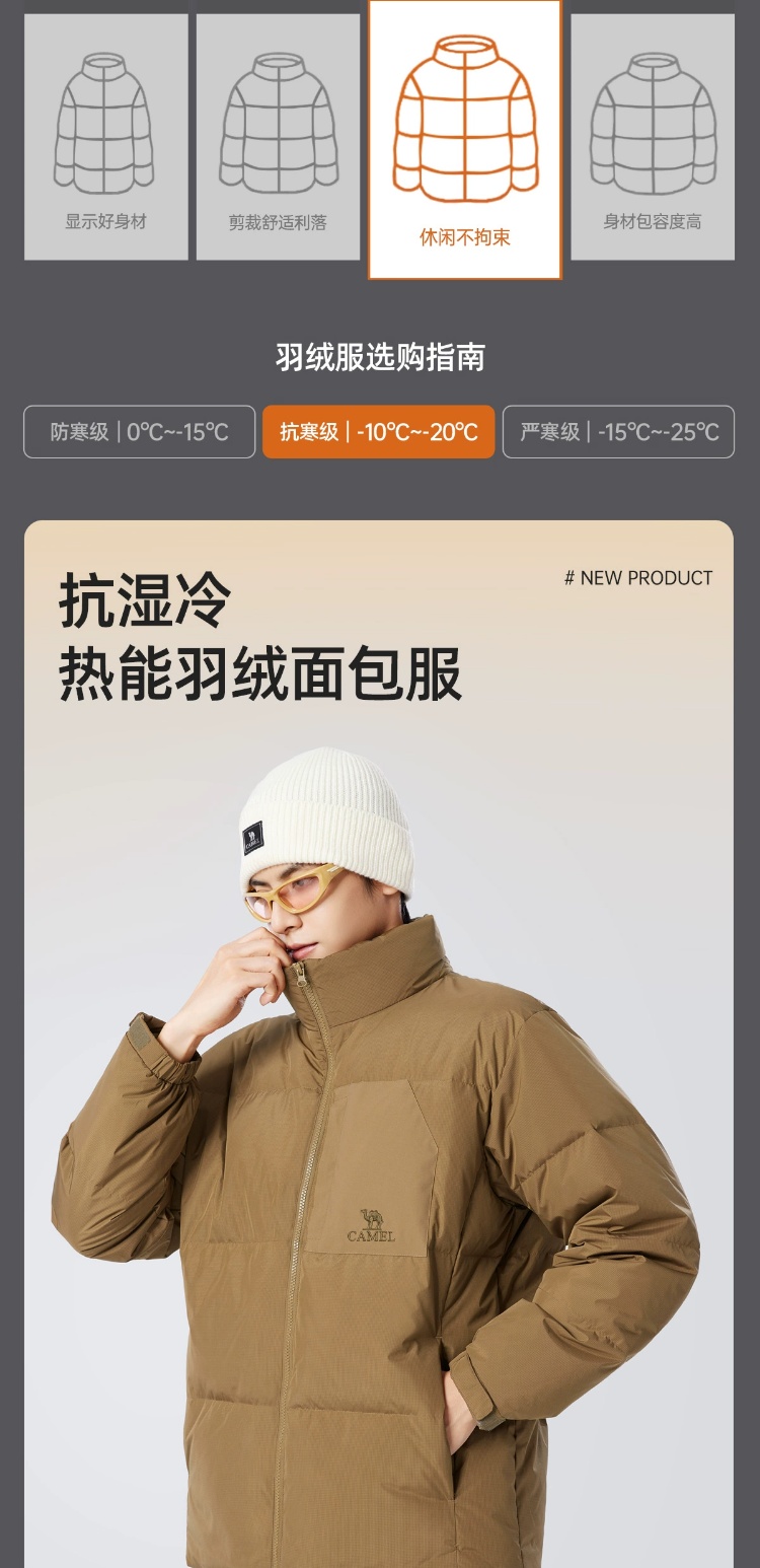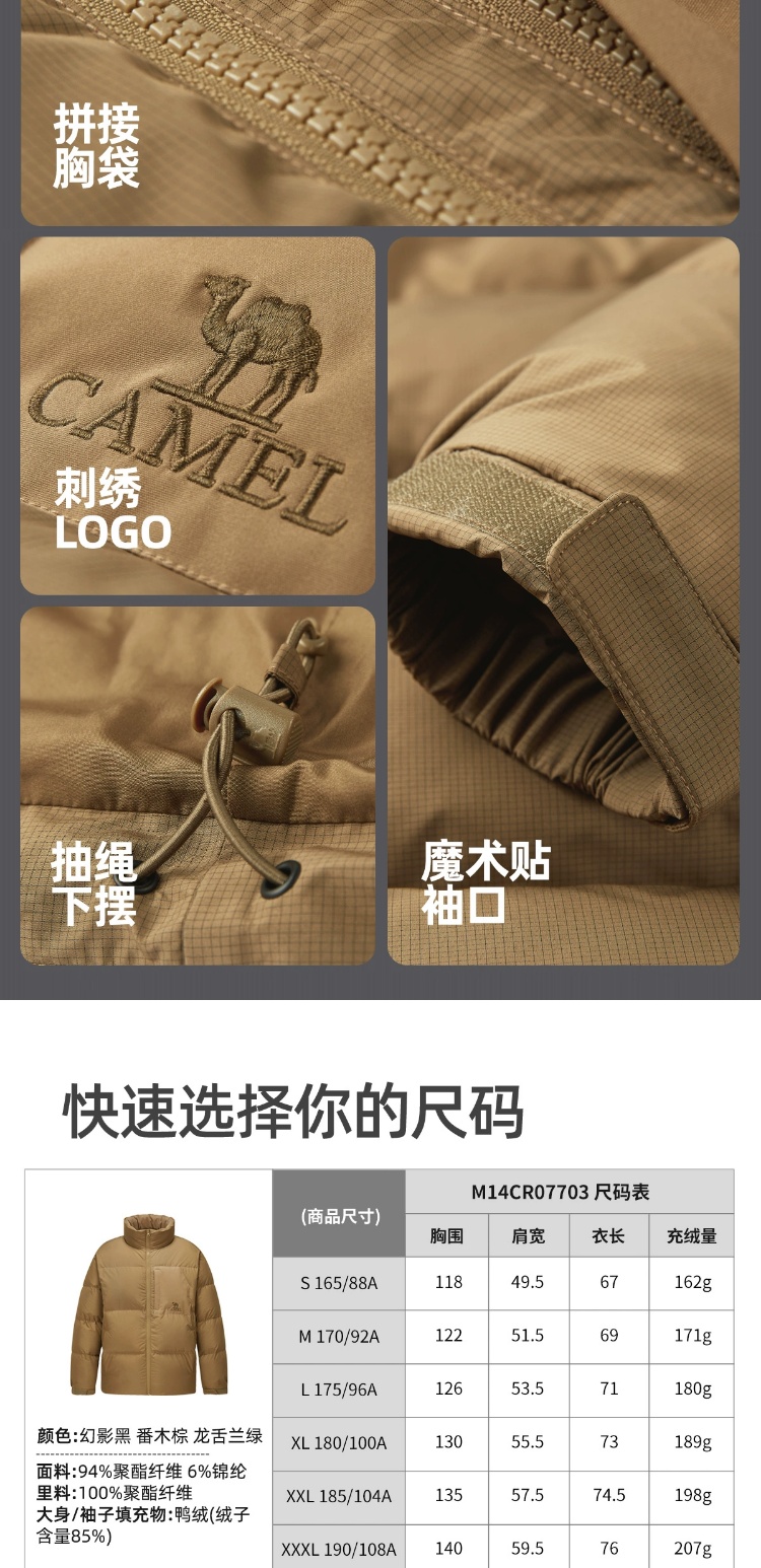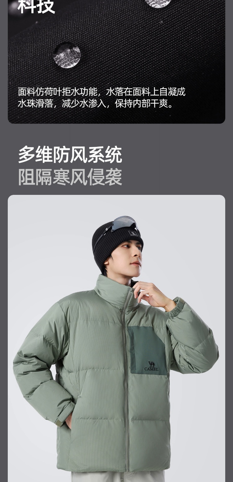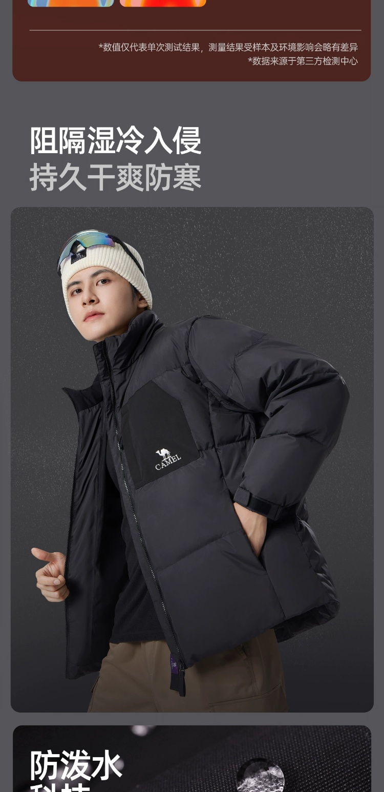 骆驼男装立领羽绒服男冬季新款加绒加厚保暖短款户外休闲外套 M14CR07703