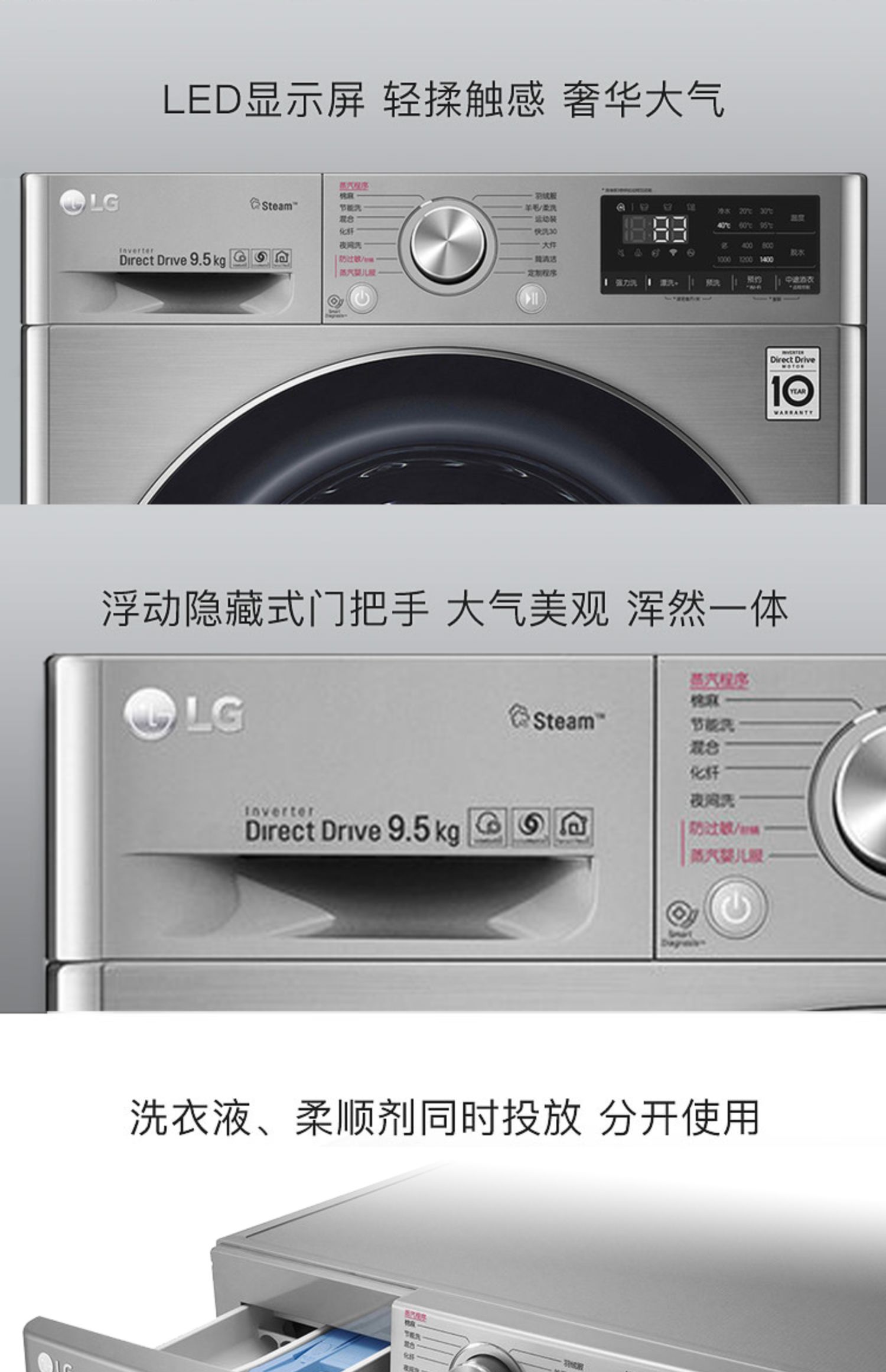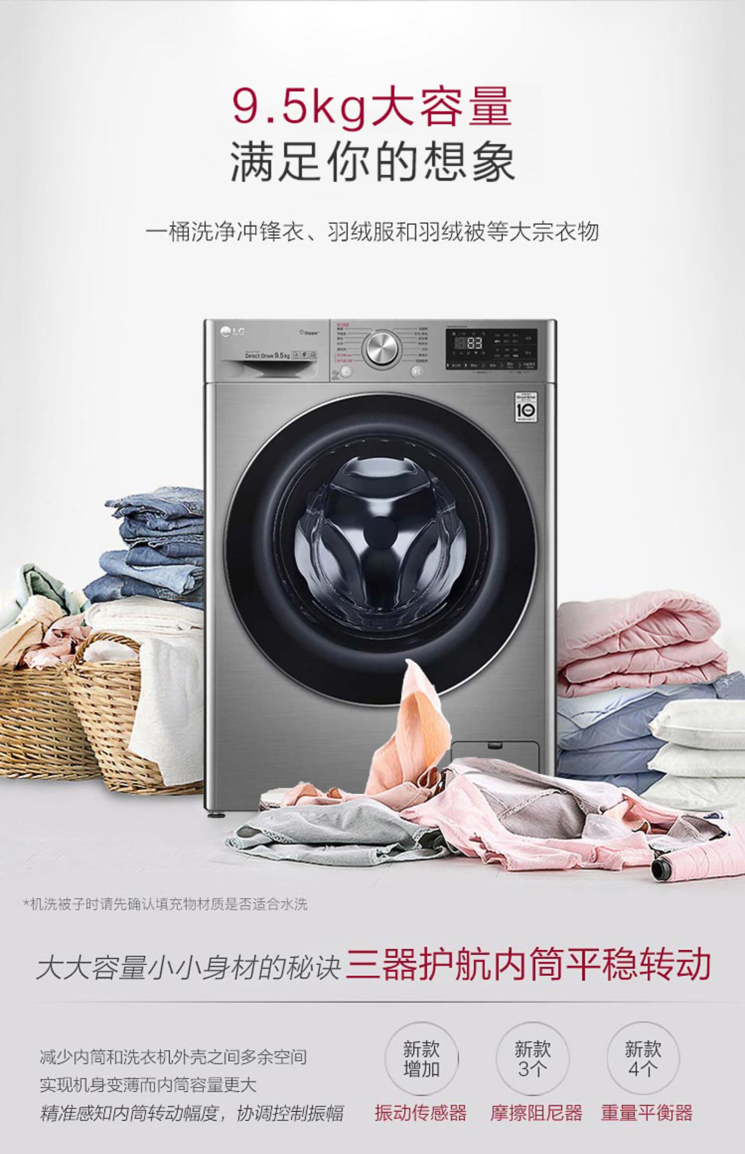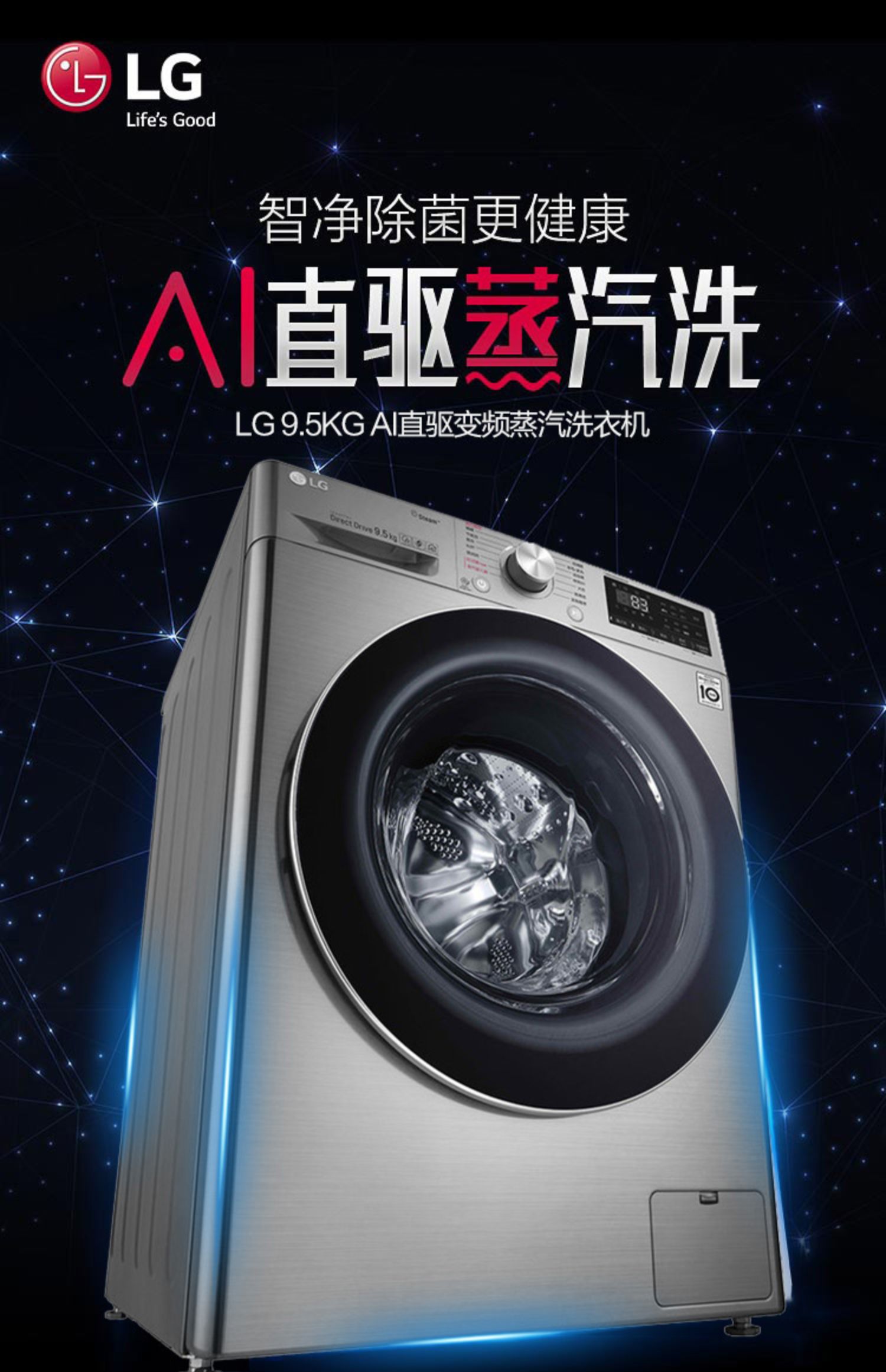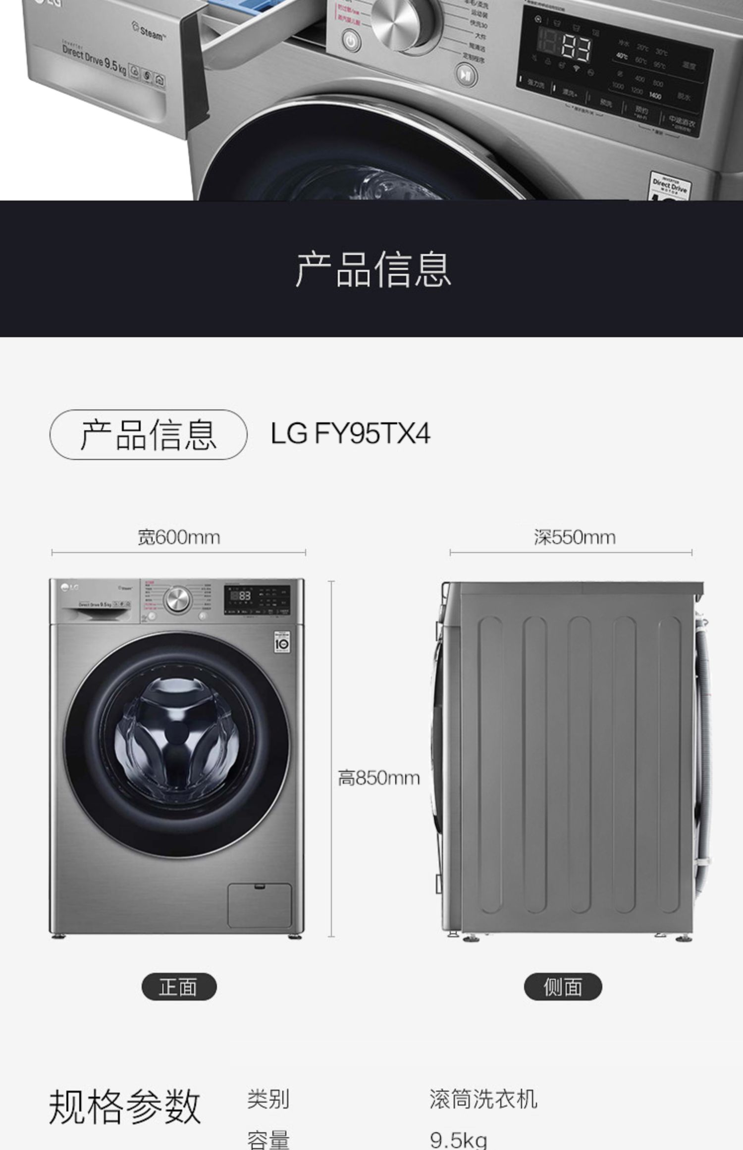 【盛元新生活】LG FY95TX4 9.5公斤家用大容量蒸汽除菌变频直驱滚筒洗衣机全自动