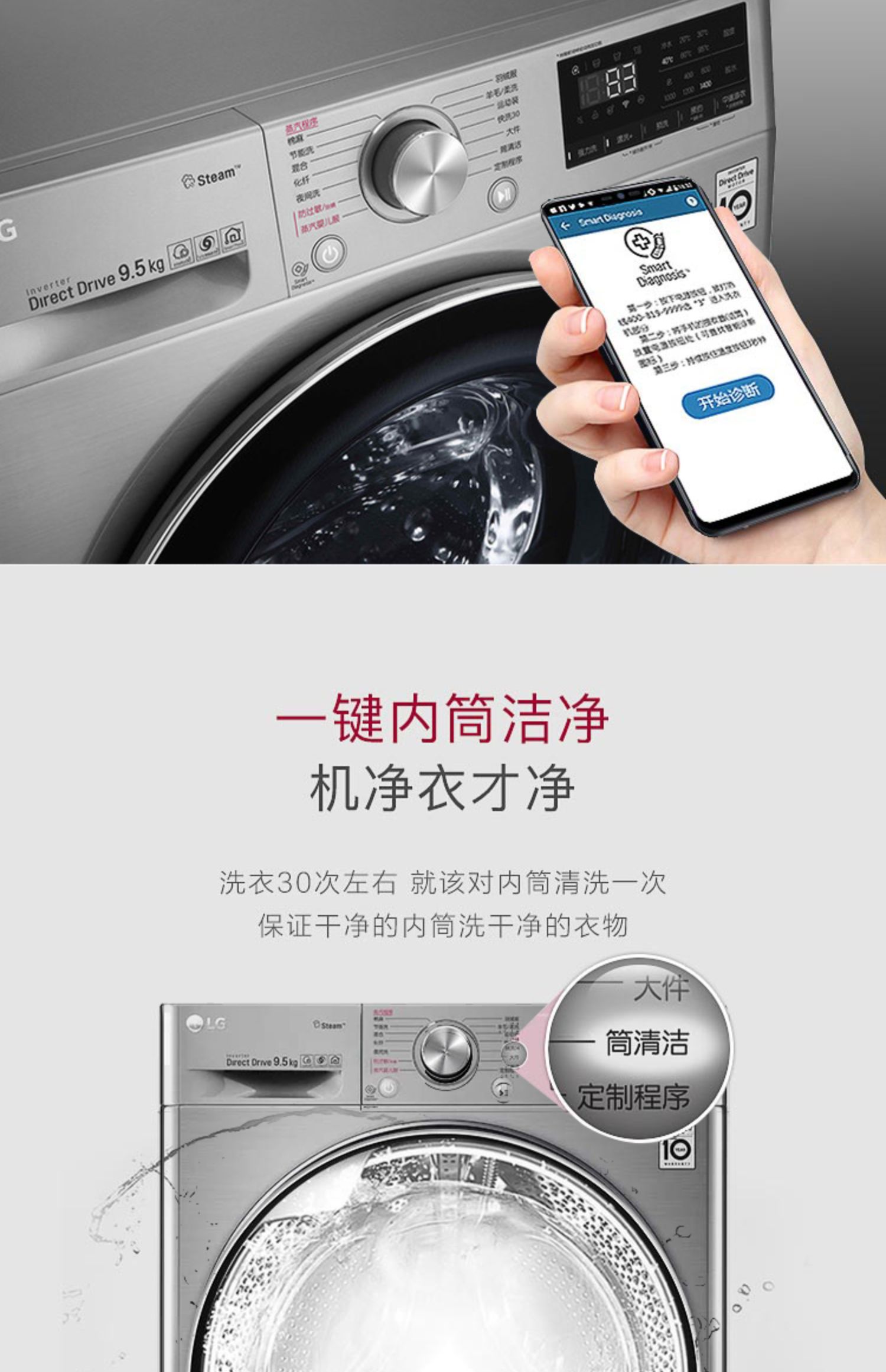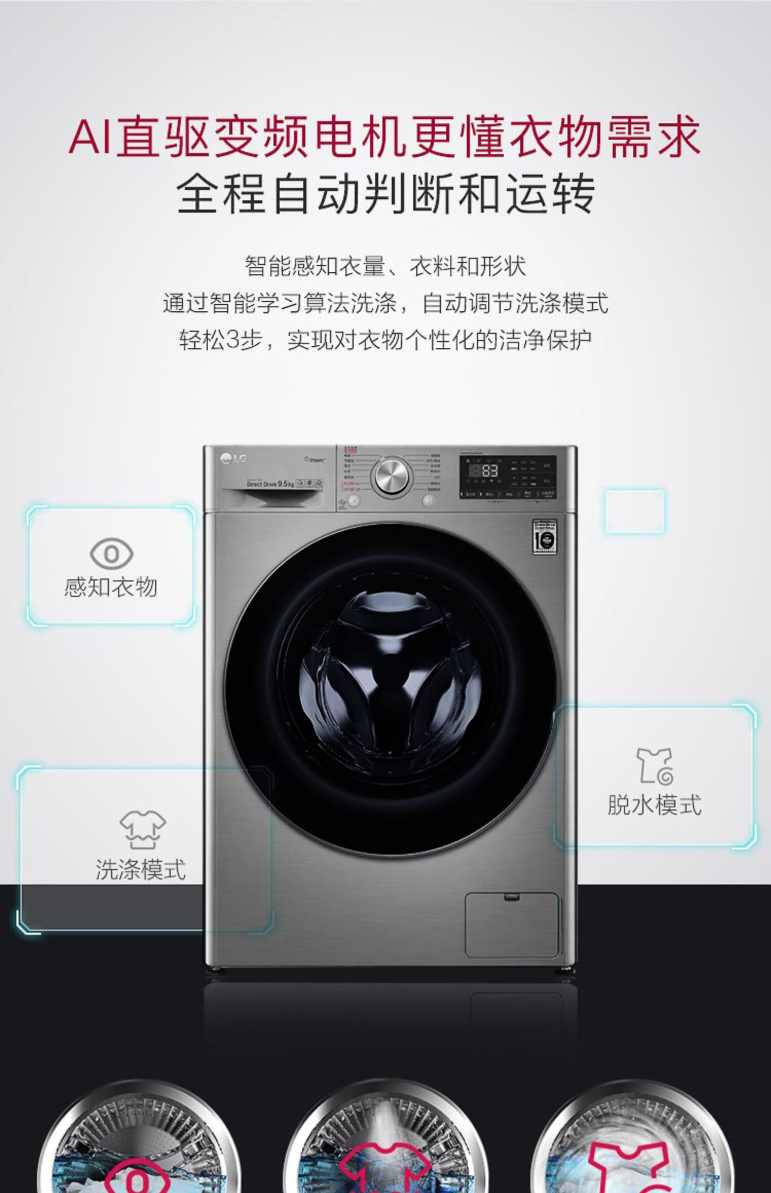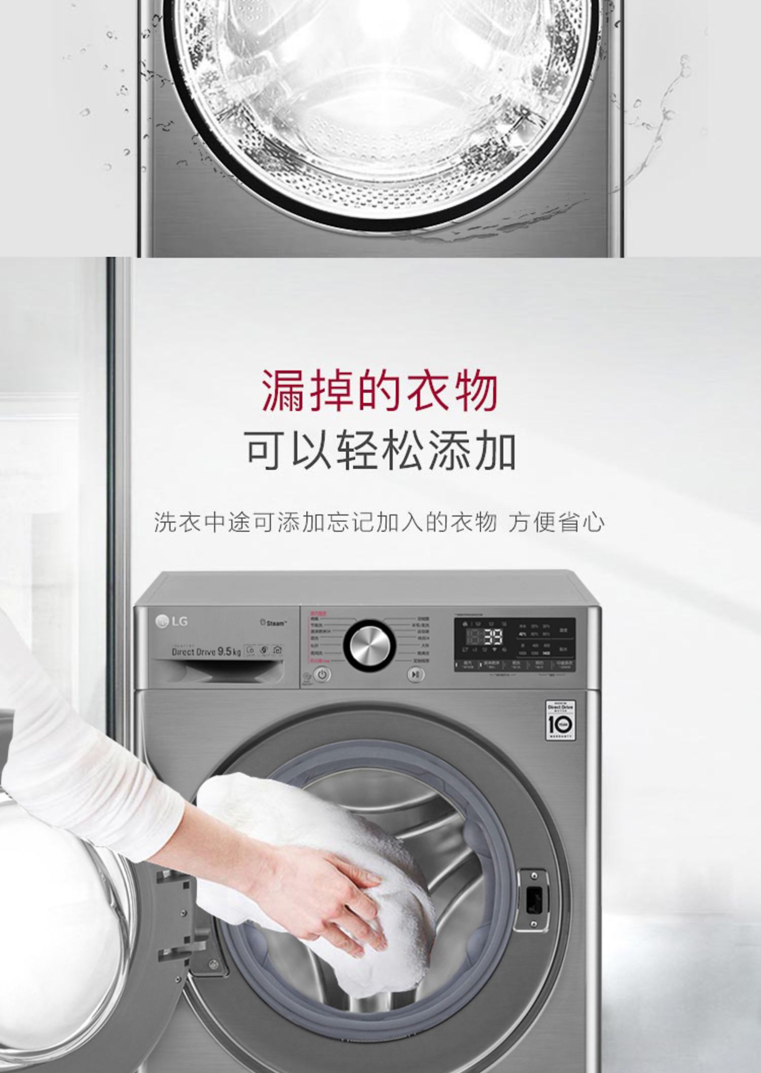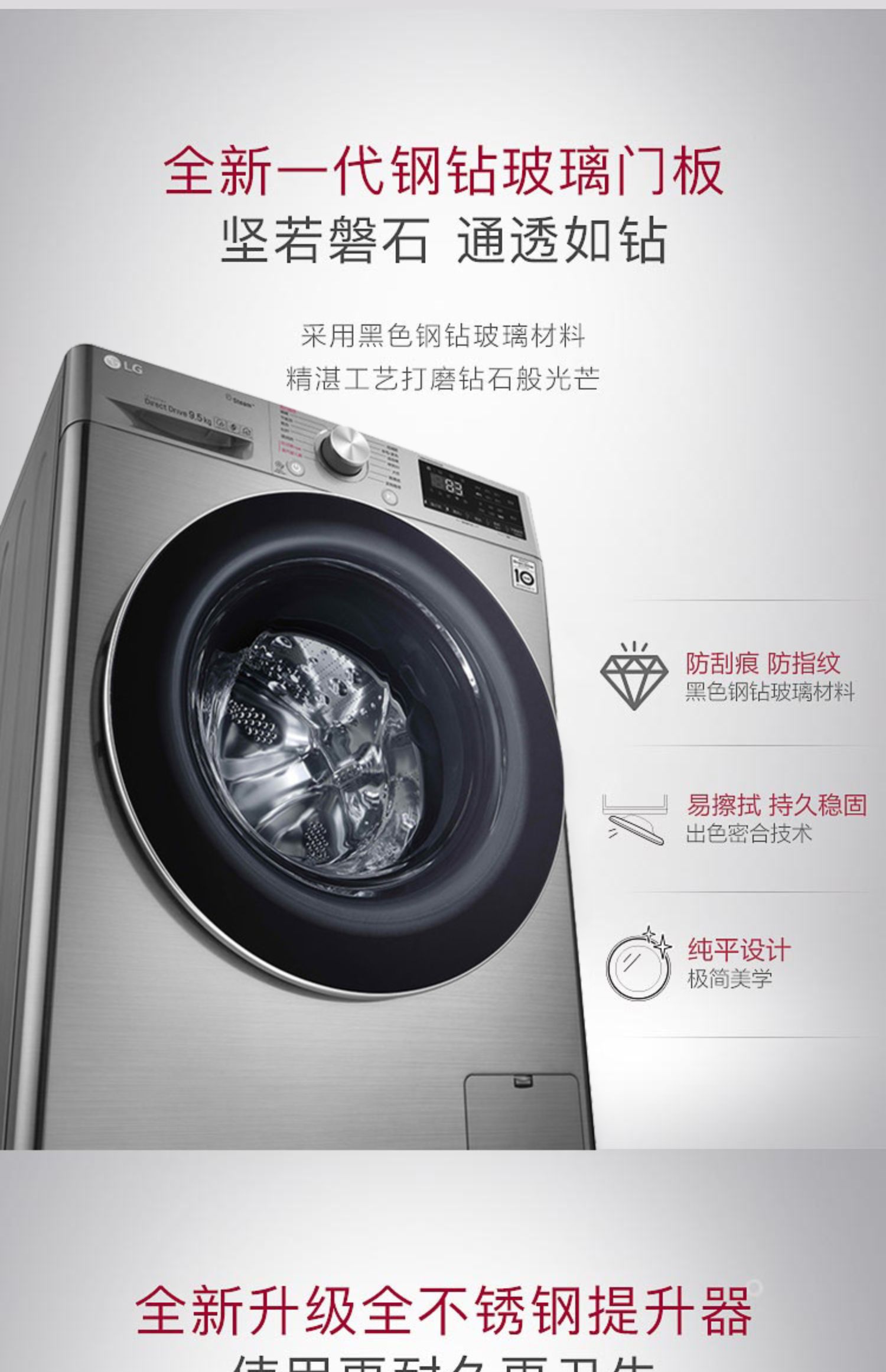 【盛元新生活】LG FY95TX4 9.5公斤家用大容量蒸汽除菌变频直驱滚筒洗衣机全自动