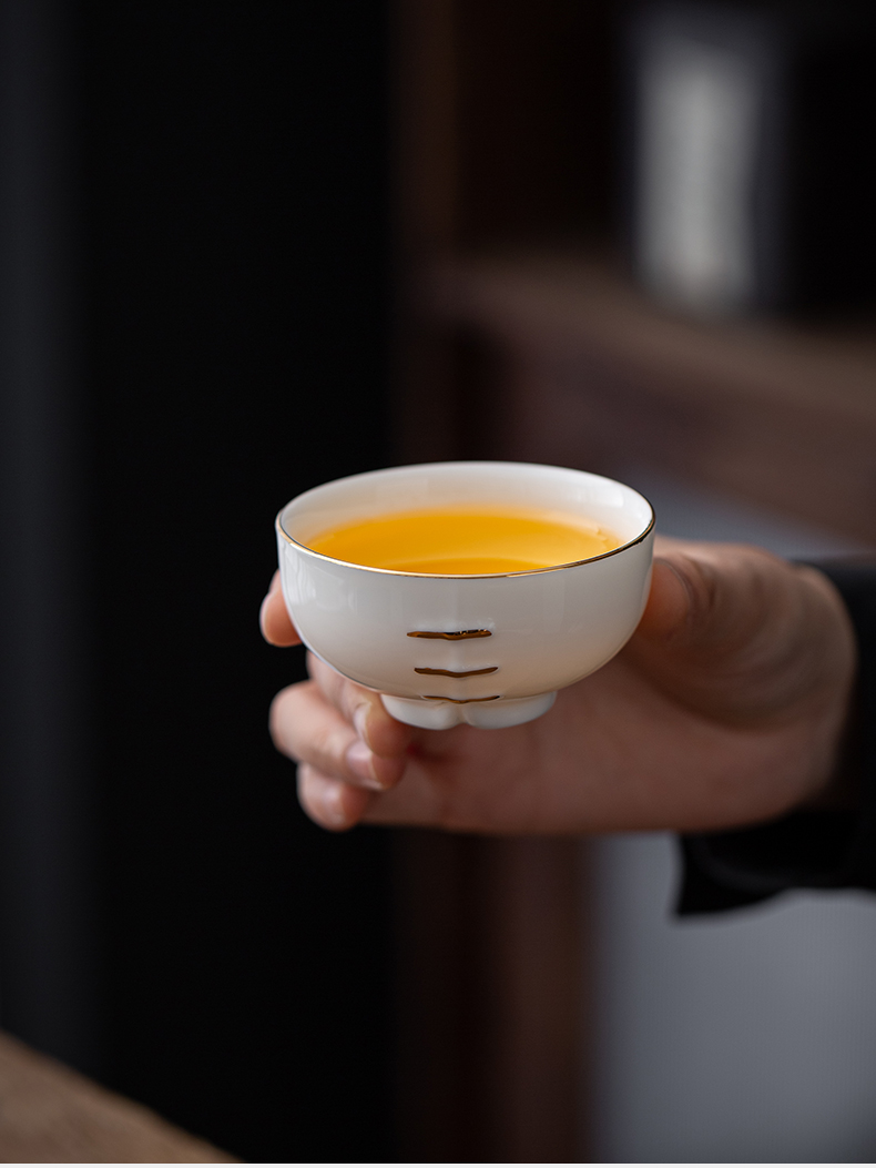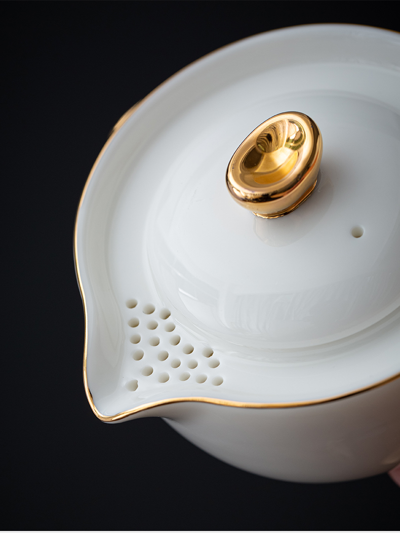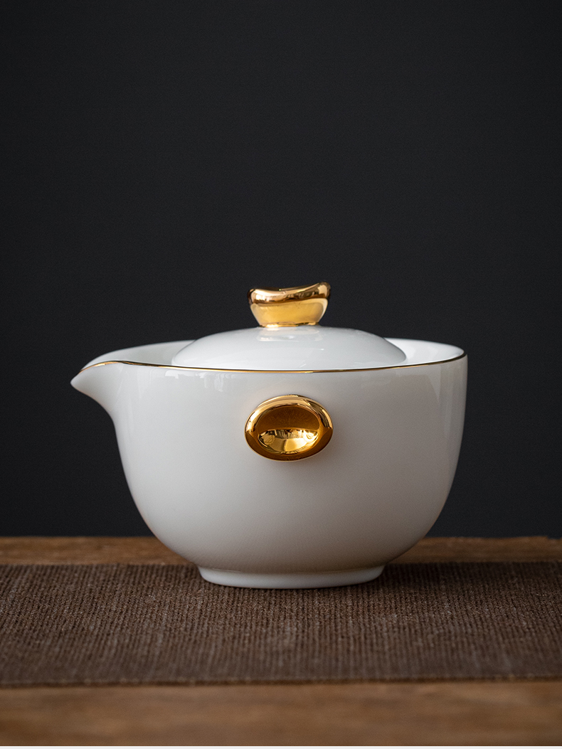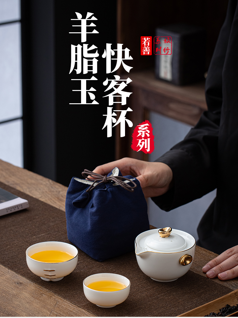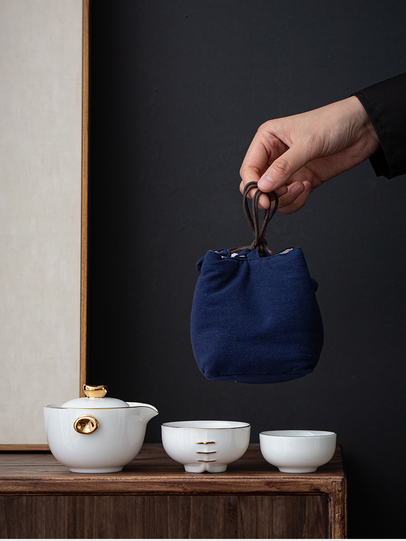 羊脂玉白瓷旅行茶具套装快客杯一壶二杯便携式户外茶具随身高端吉祥三宝 描金快客杯