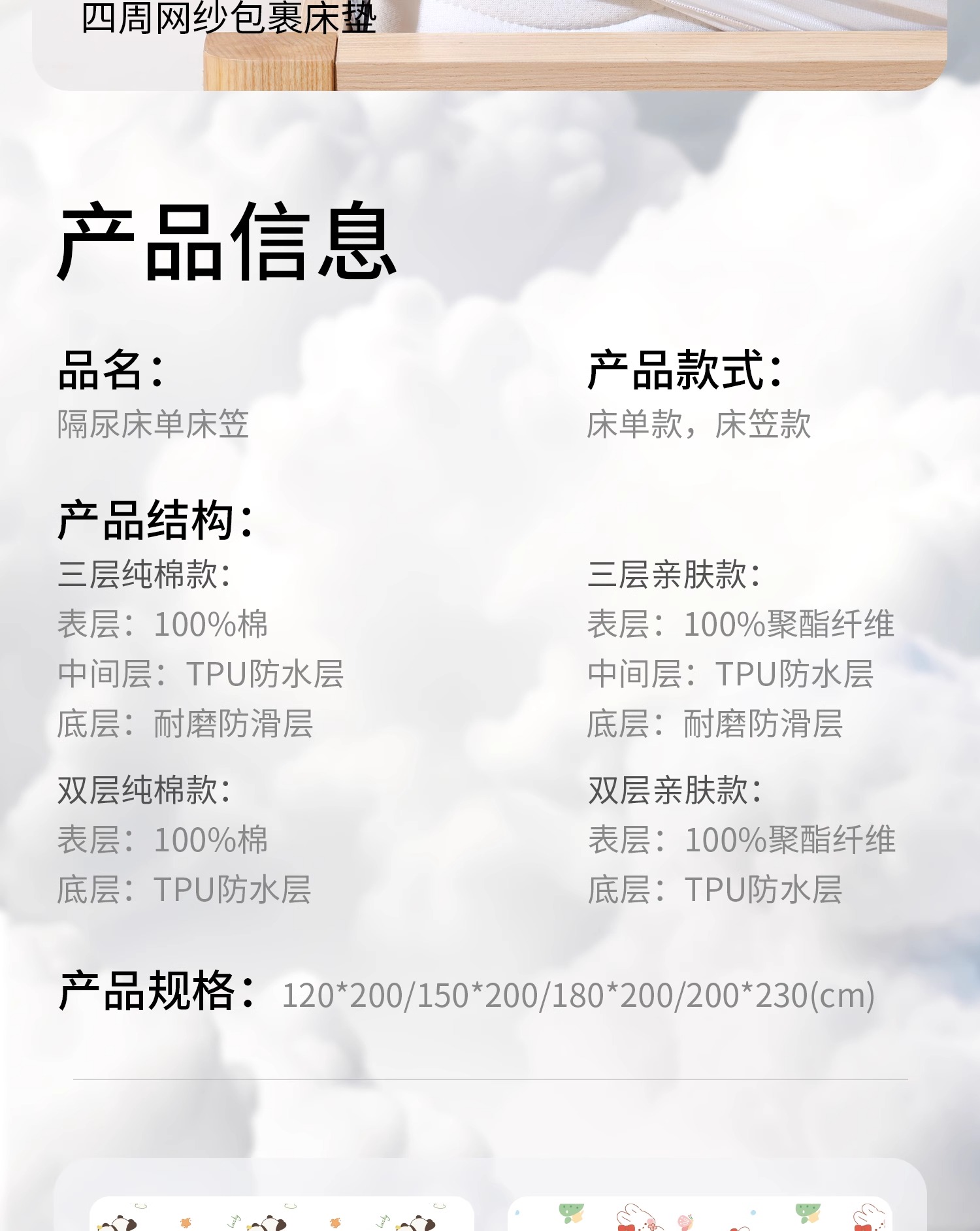科巢隔尿垫床单床笠婴儿儿童防水可洗水洗床姨妈垫整床大尺寸纯棉透气
