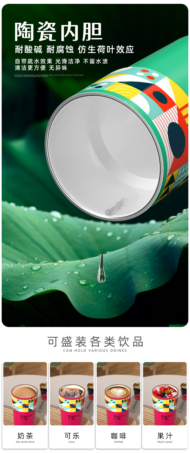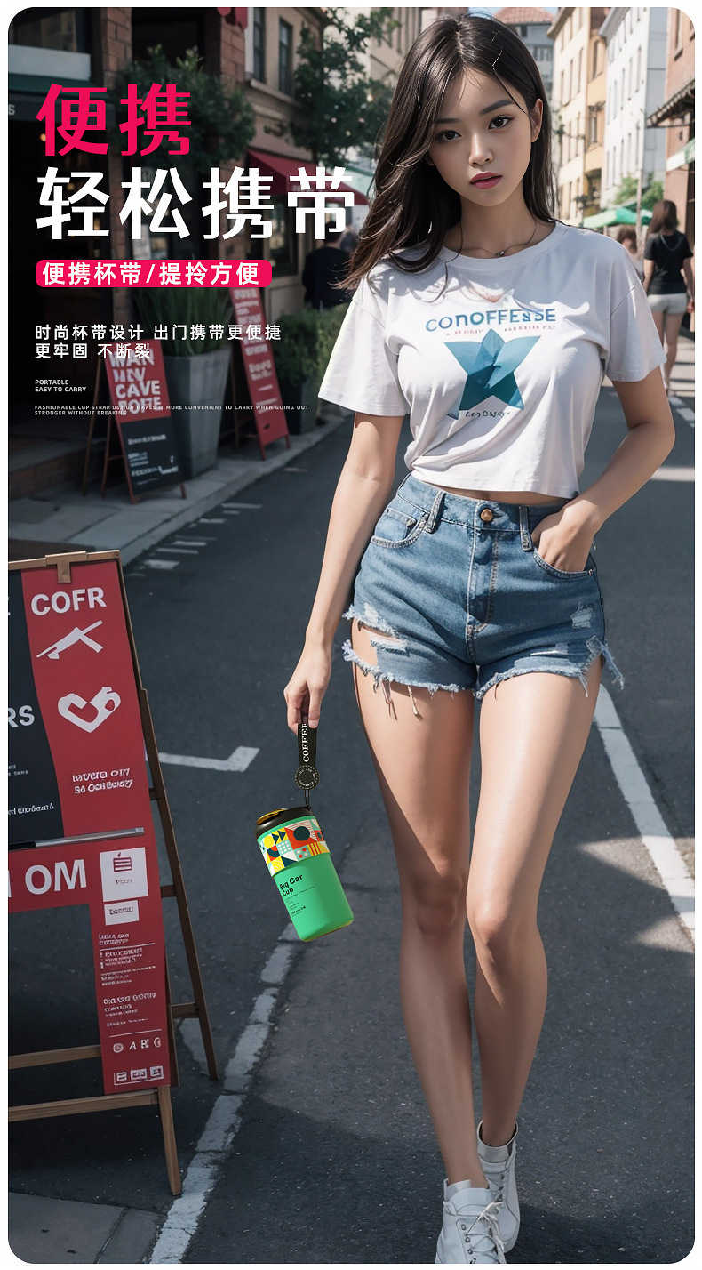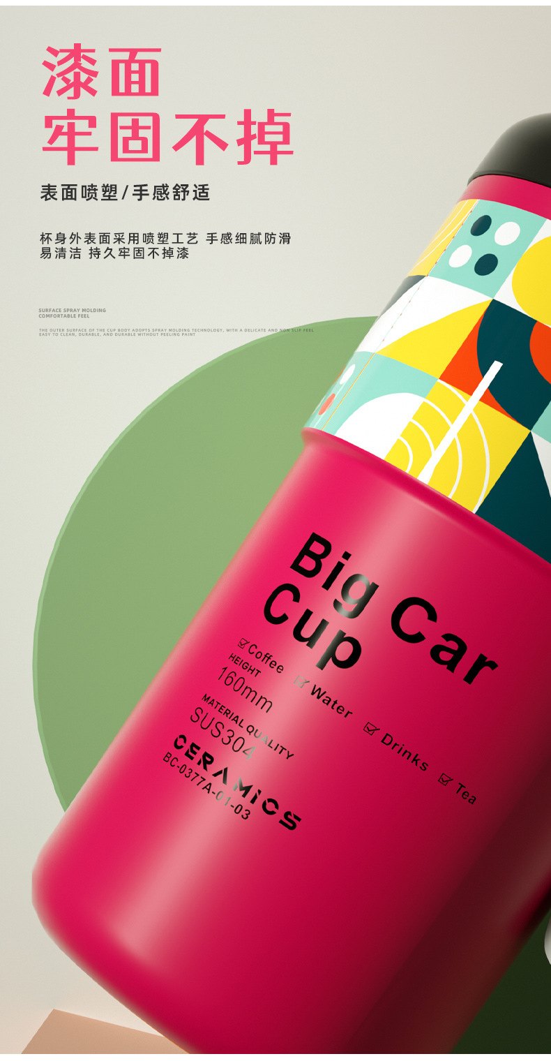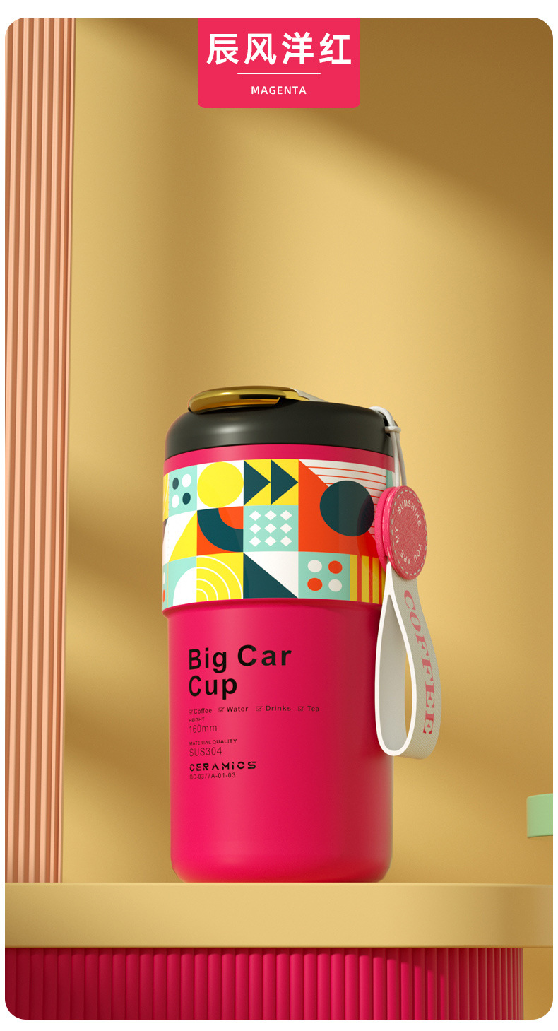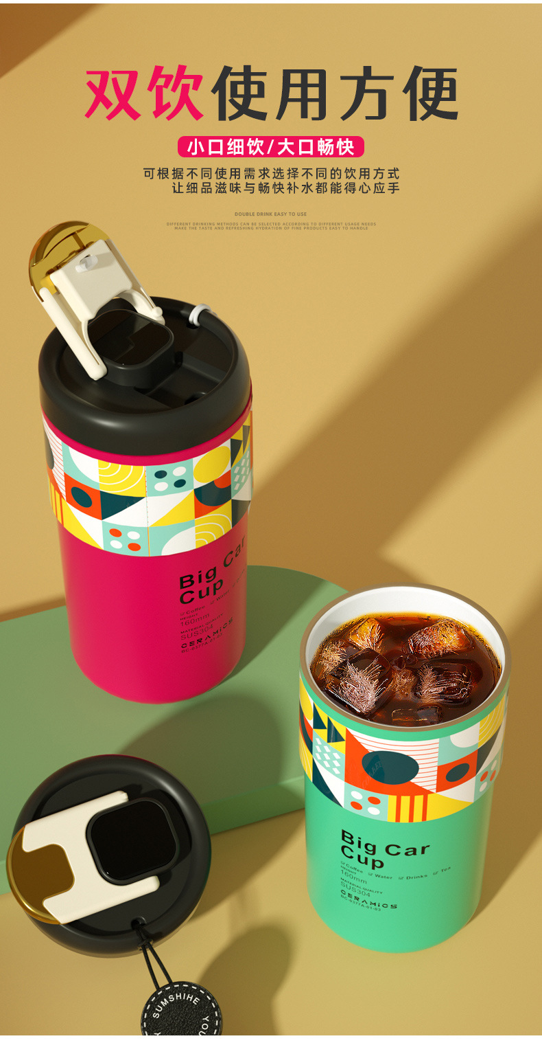 「5色可选!智能数显」智能陶瓷内胆咖啡杯便携颜值保温杯带提绳智能测温不锈钢随行杯餐饮用具