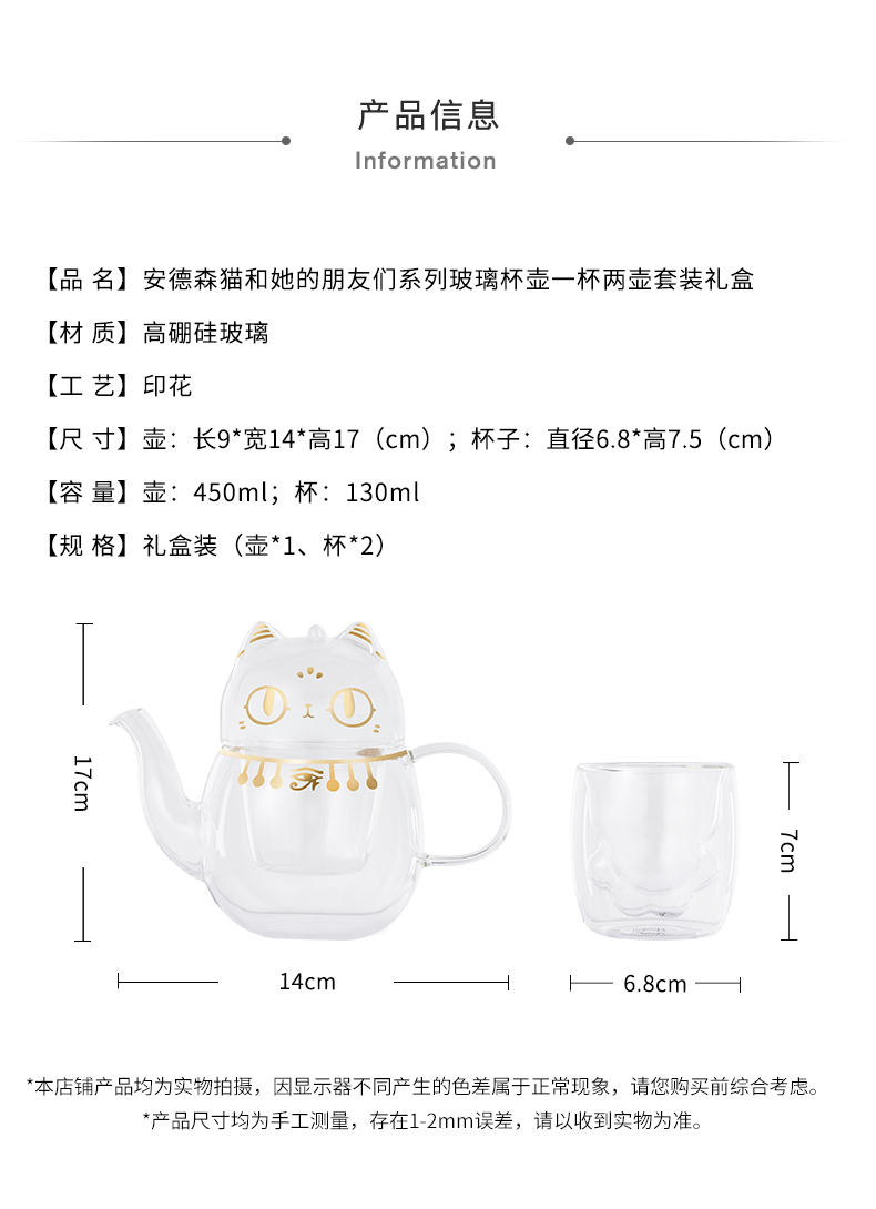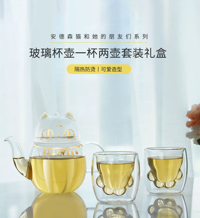 大英博物馆安德森猫玻璃杯壶一壶两杯套装礼盒 送女朋友生日礼物