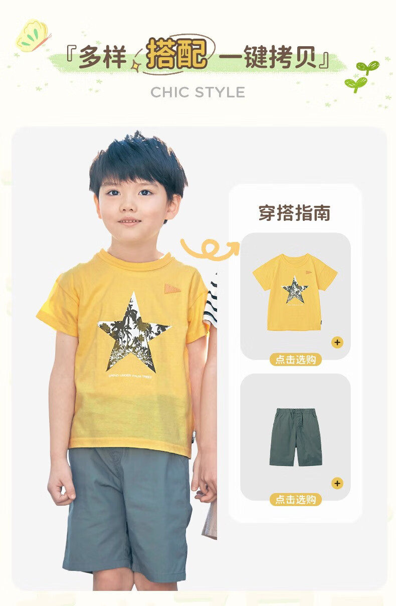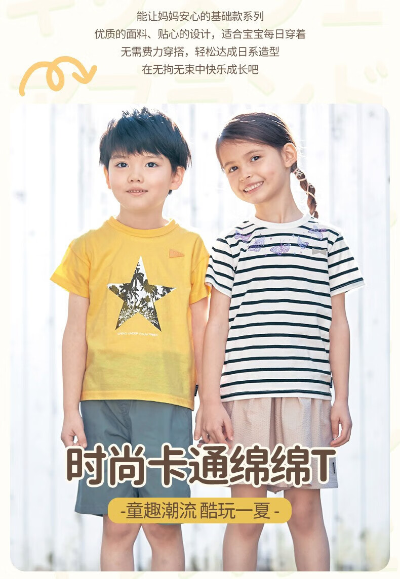 千趣会童装男童T恤夏时尚卡通印花轻薄汗布全棉短袖儿童T恤