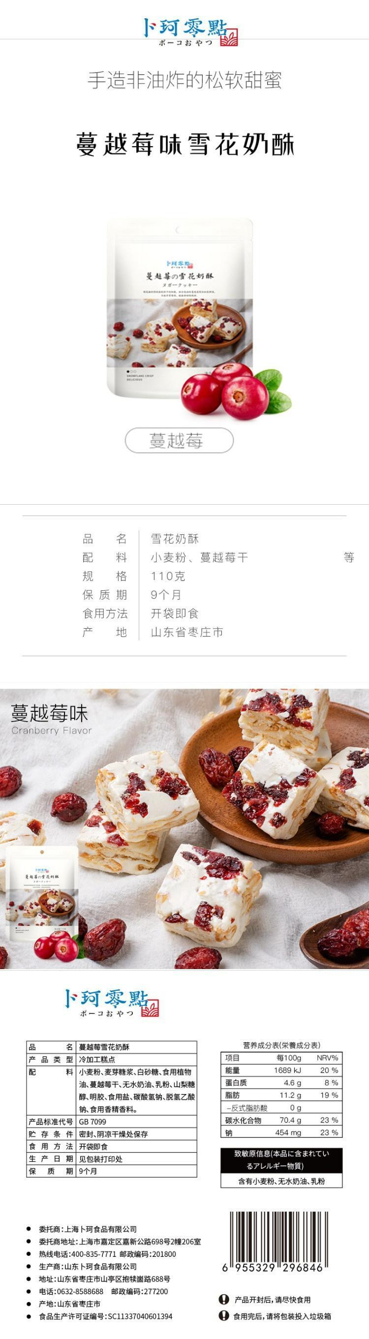 卜珂 蔓越莓味雪花酥 110g*4袋