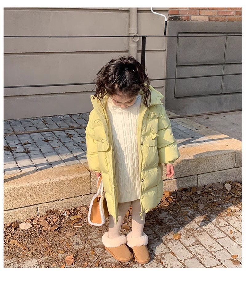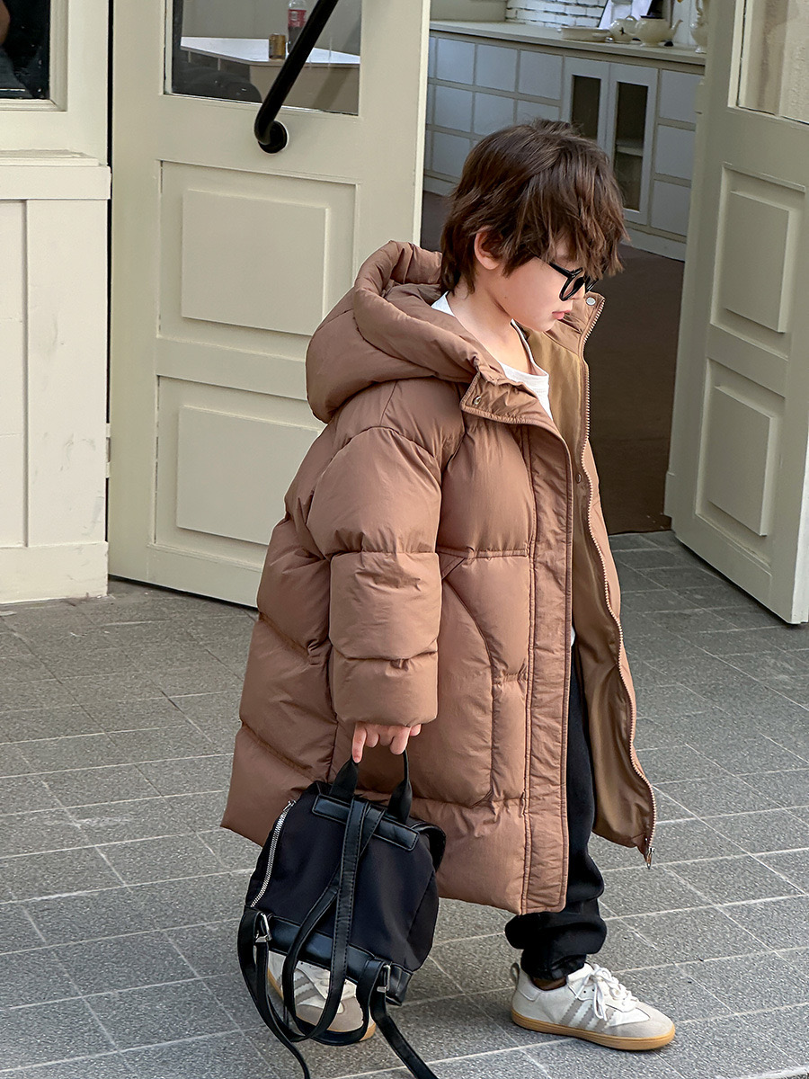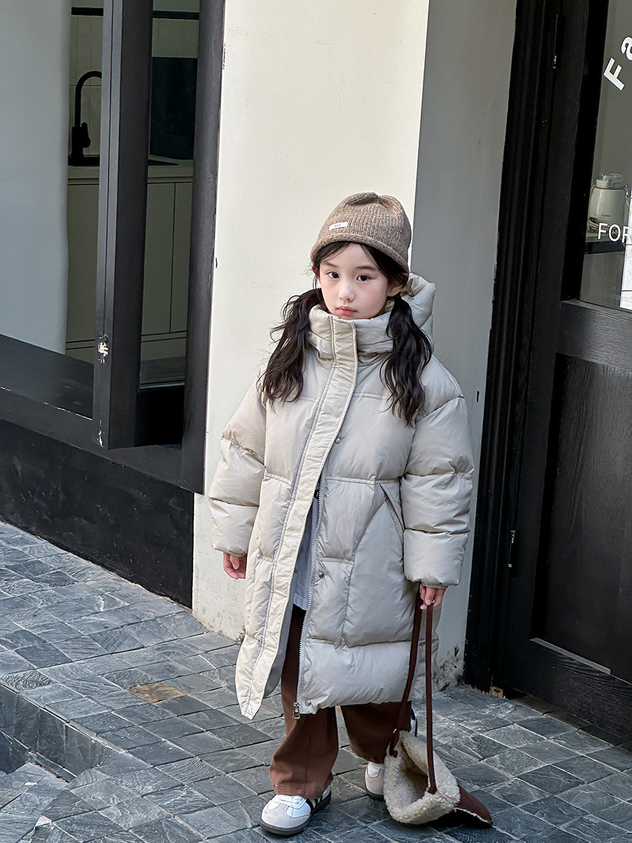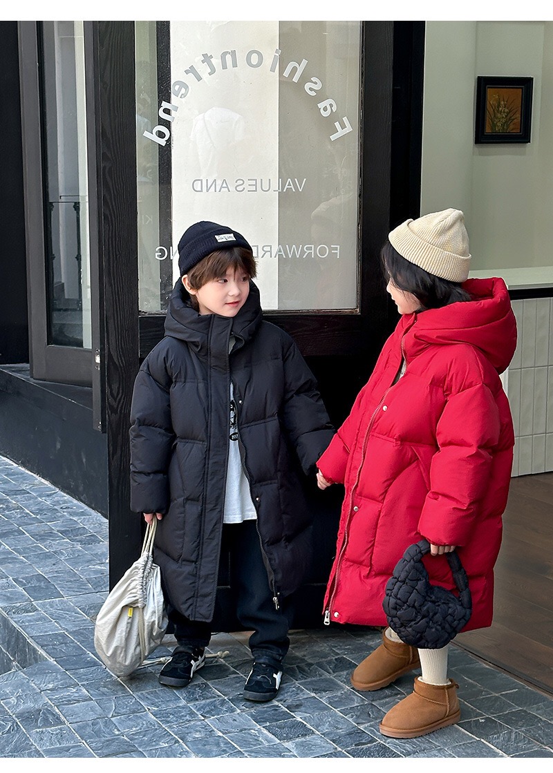 【秋冬保暖|吾家儿童中长款羽绒服】 内里羽绒填充均匀饱满,上身没有厚重感,保暖舒适又轻便,版型宽松适合多种身型,款式简约不挑人,男女宝都能轻松驾驭,适合多种风格与场合的穿搭