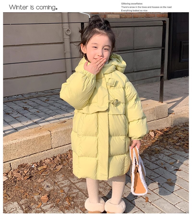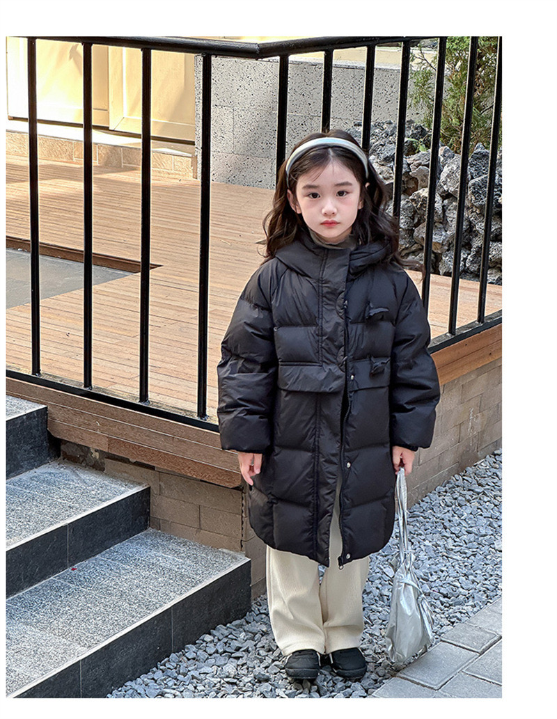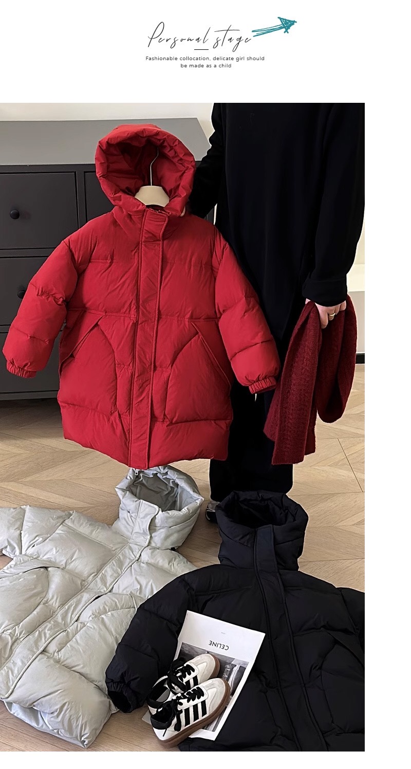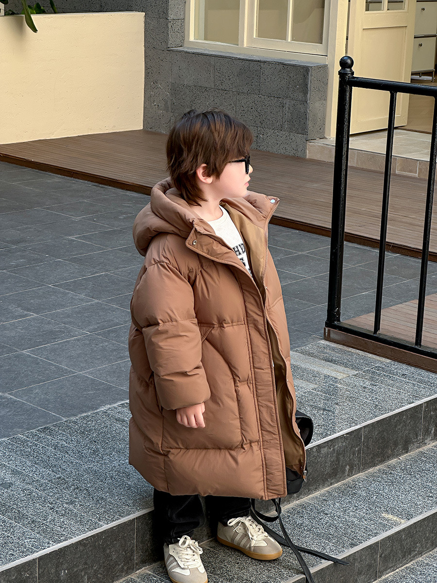 【秋冬保暖|吾家儿童中长款羽绒服】 内里羽绒填充均匀饱满,上身没有厚重感,保暖舒适又轻便,版型宽松适合多种身型,款式简约不挑人,男女宝都能轻松驾驭,适合多种风格与场合的穿搭
