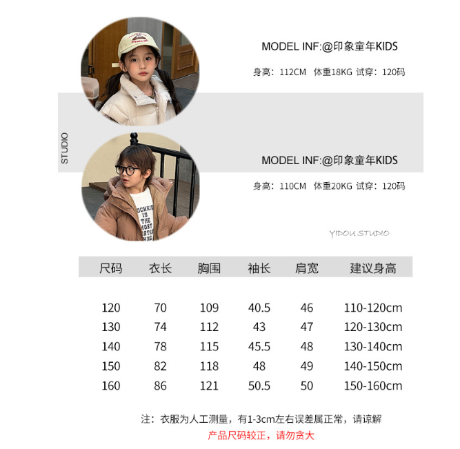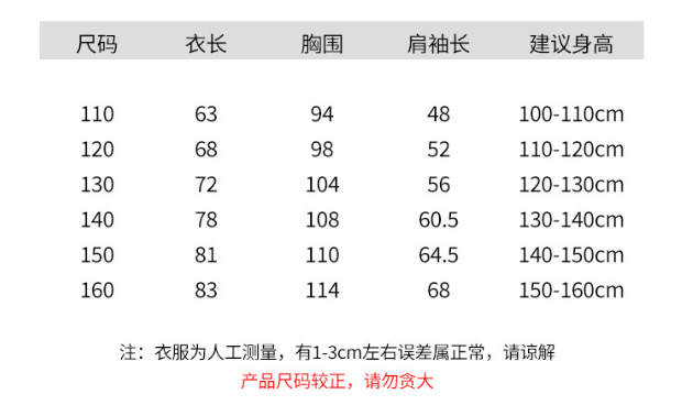 儿童中长款羽绒服2410尺码表(仅供参考)