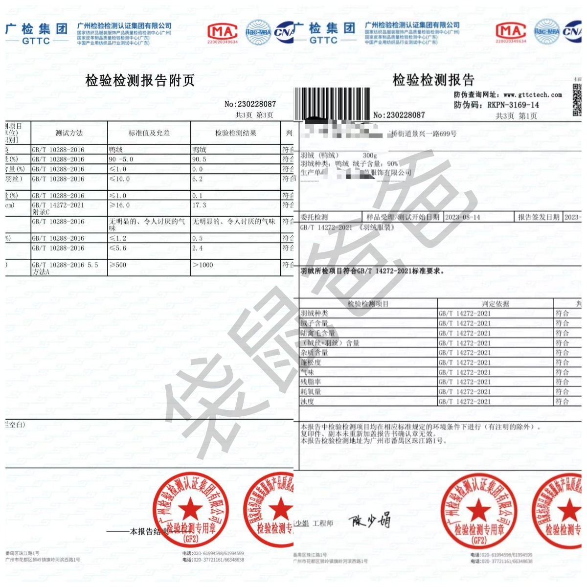 含绒量±10: 110码150g;120码160g;130码170g;140 码180g;150码190g;160码200g