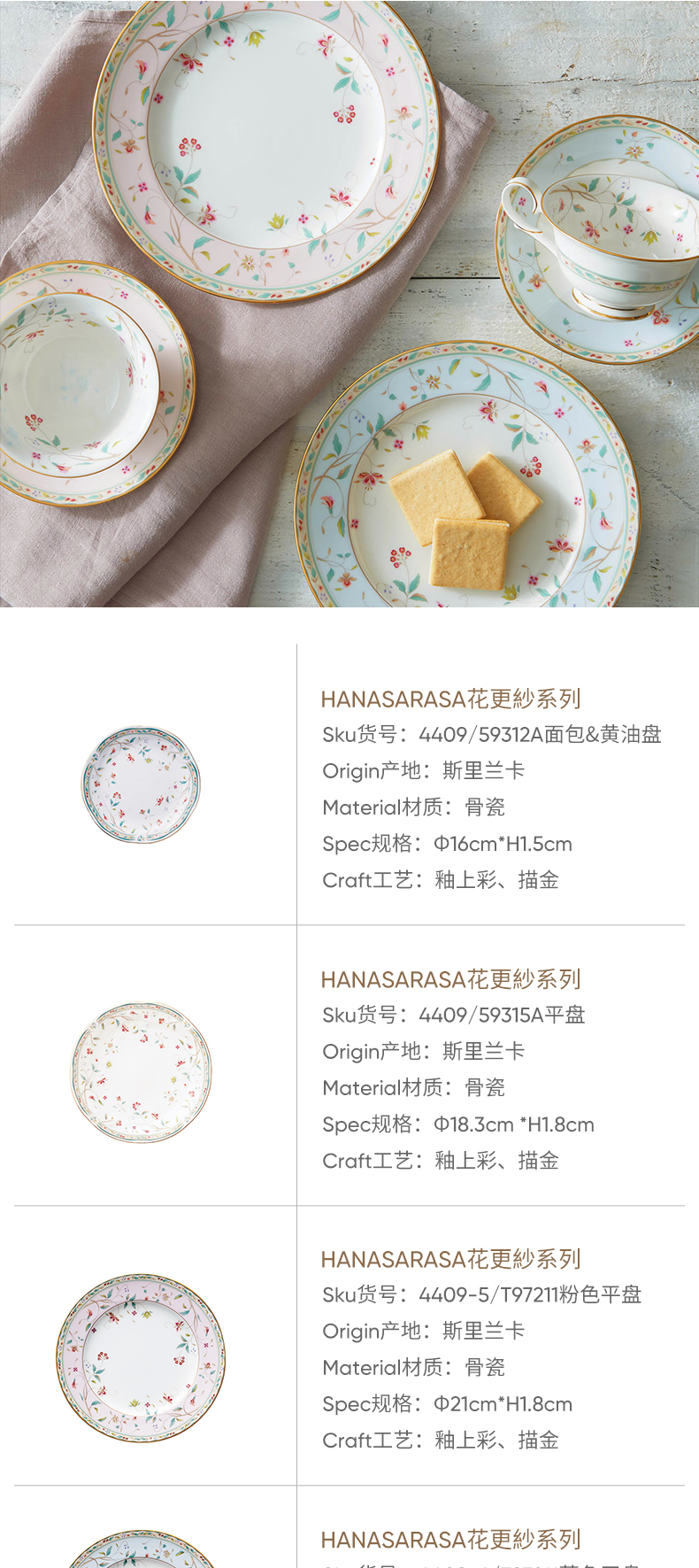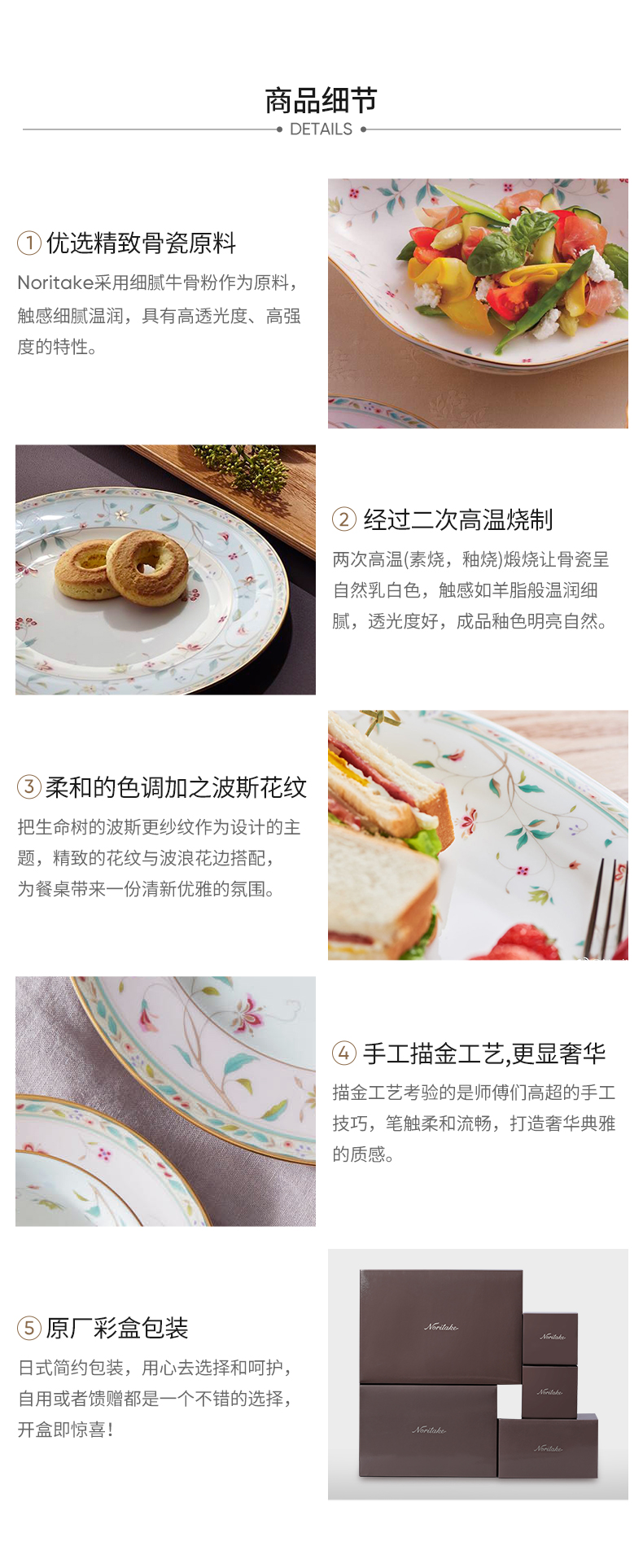 Noritake则武 Hanasarasa花更纱日式小清新盘子点心盘餐盘家用