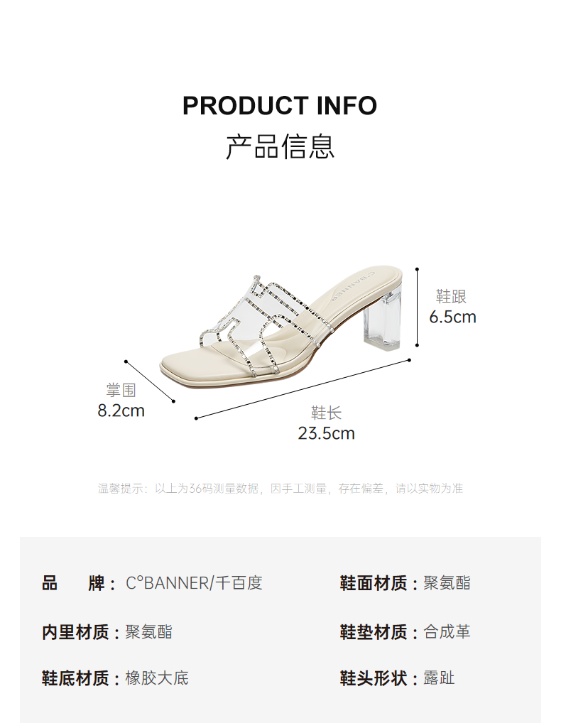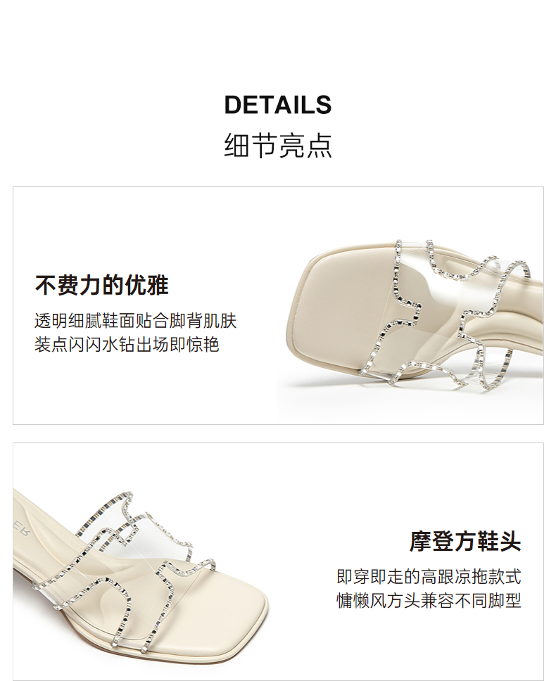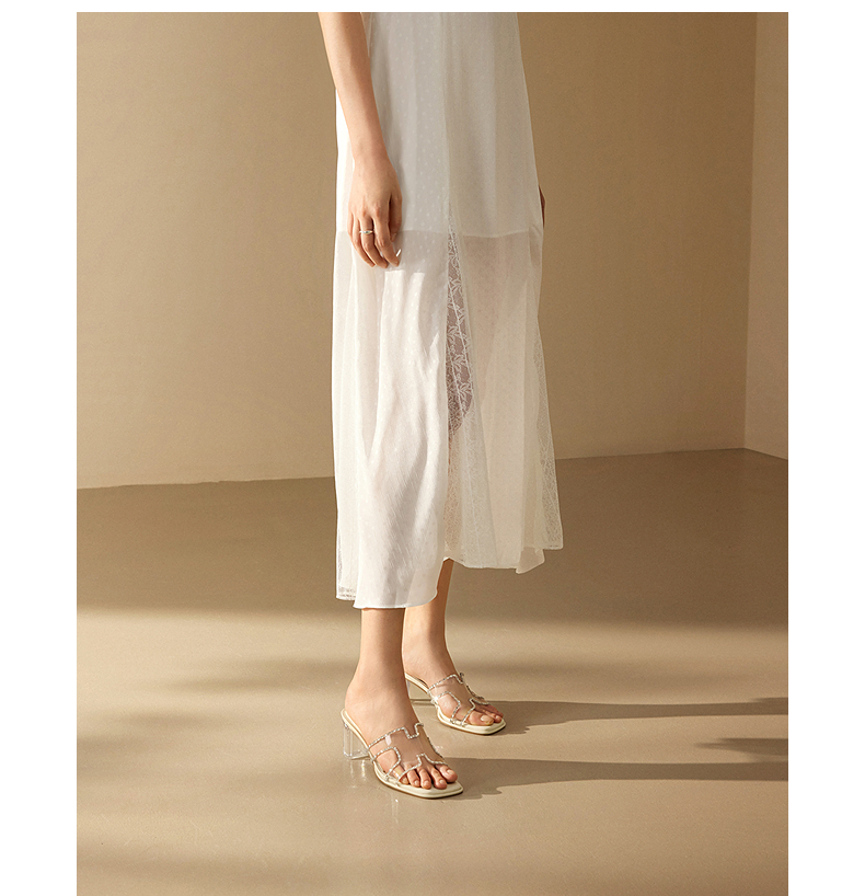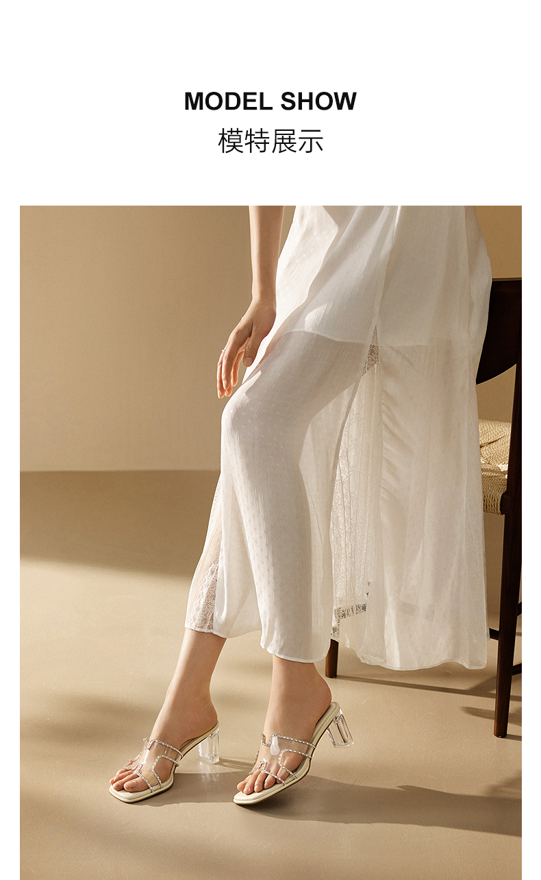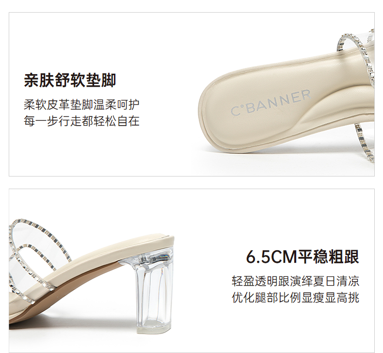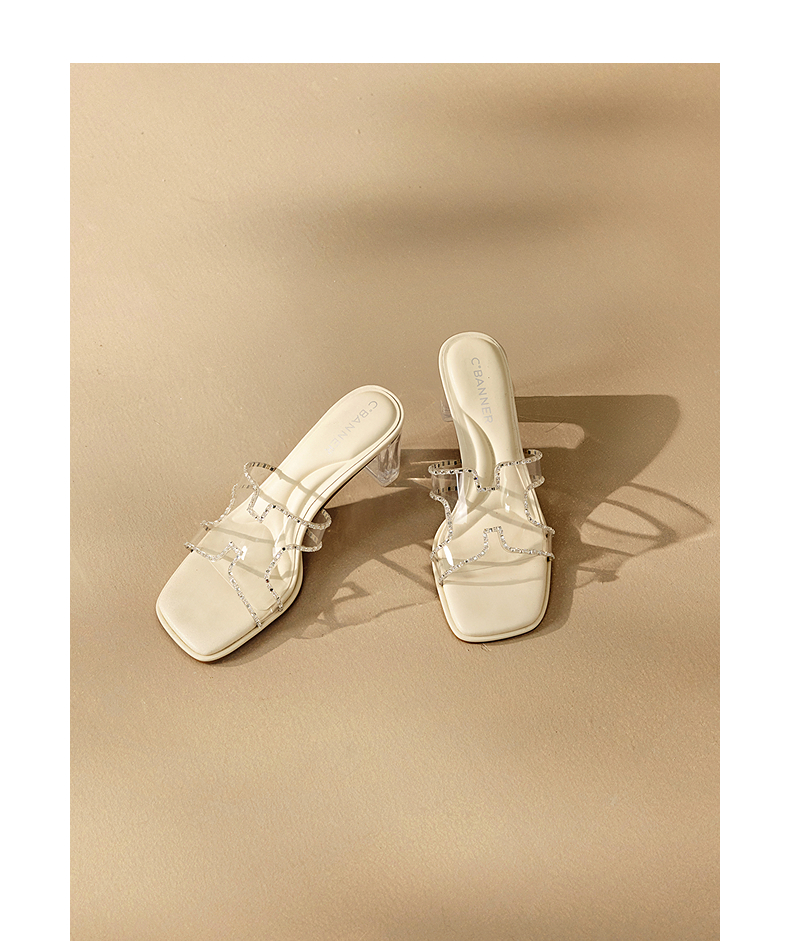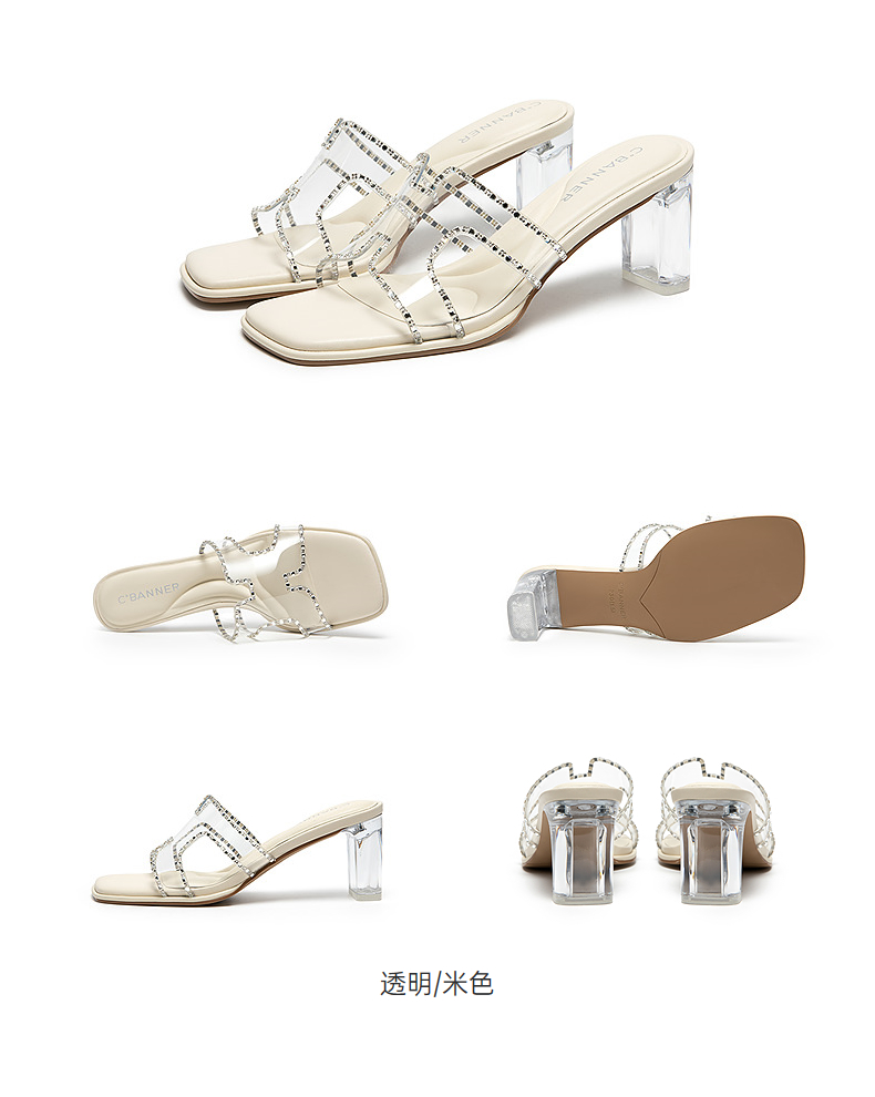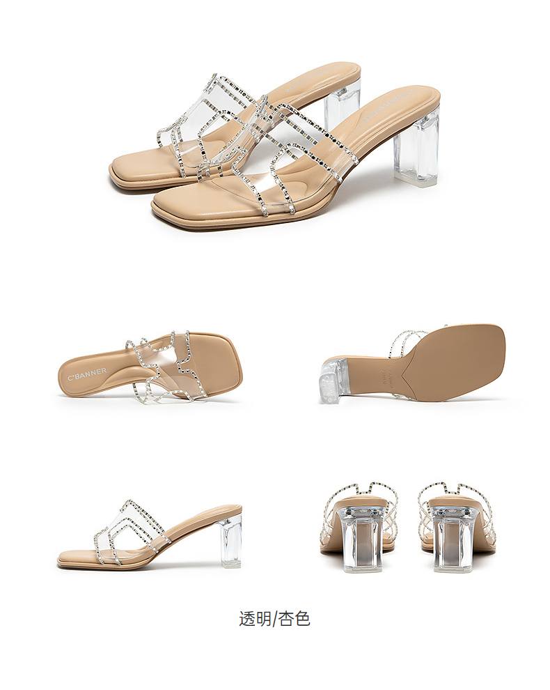 千百度粗高跟水晶透明拖鞋女外穿休闲配裙子凉拖鞋A25377820