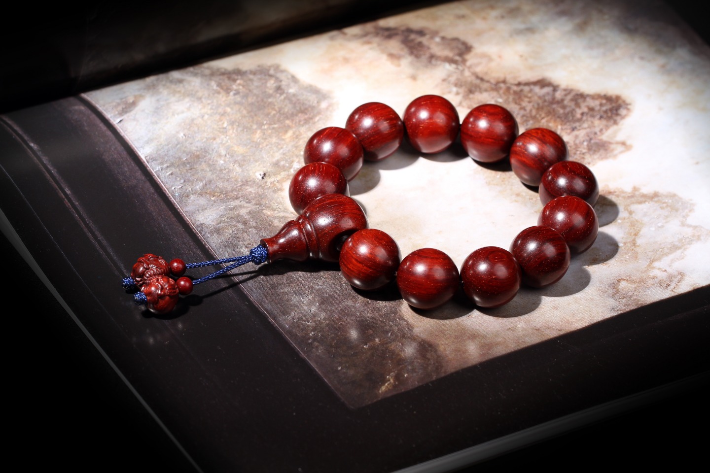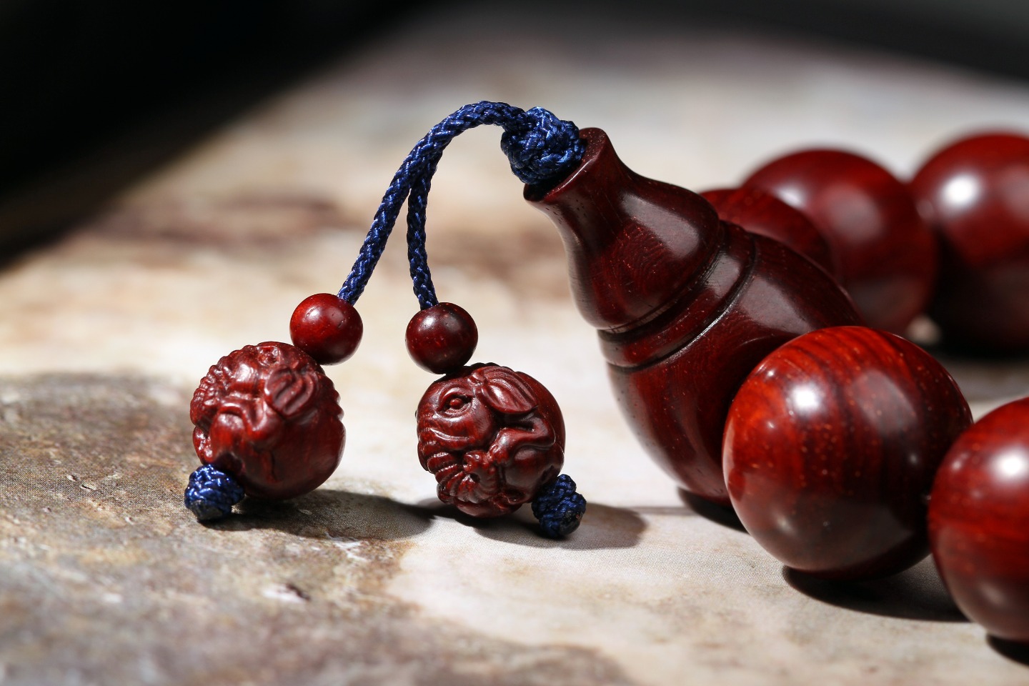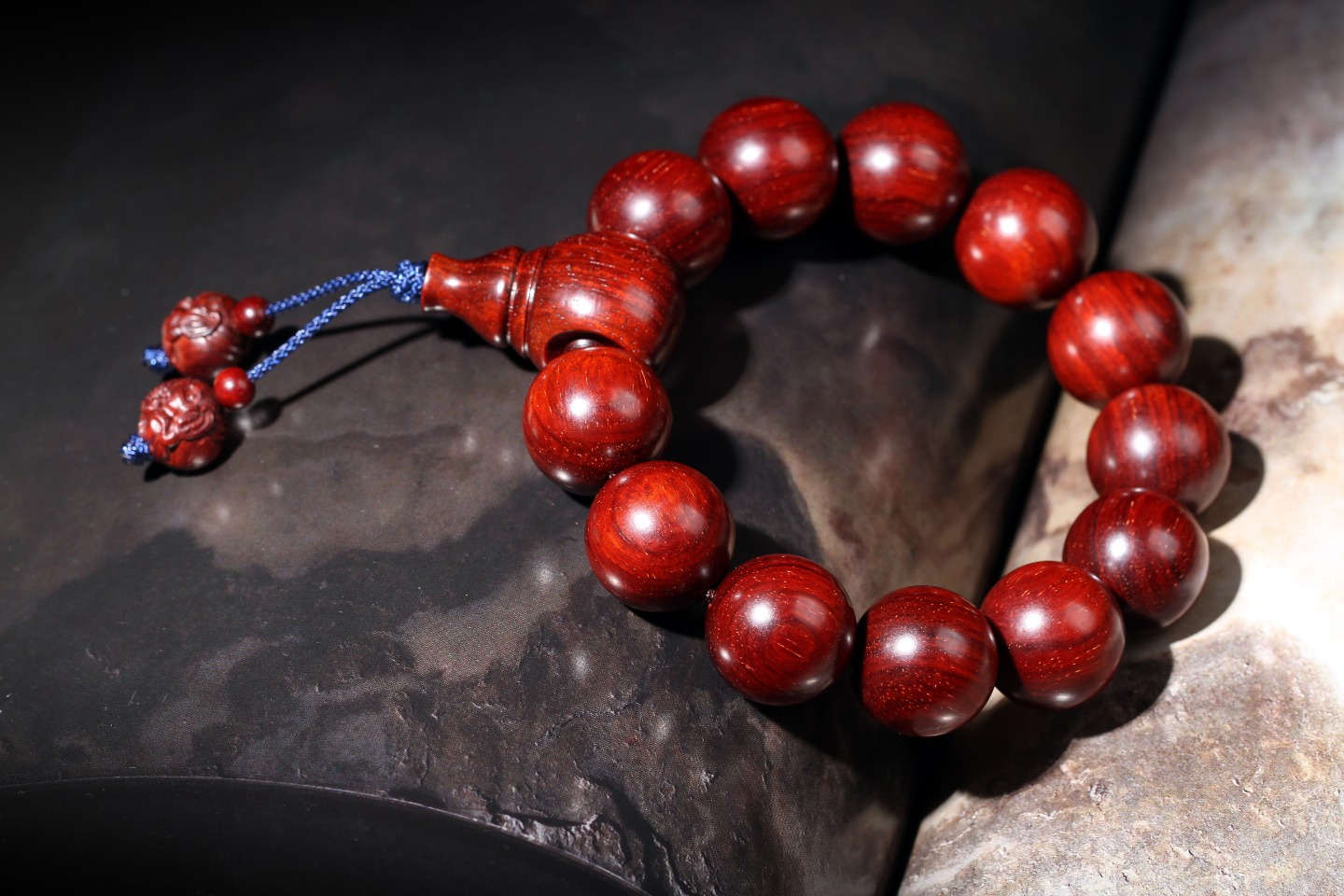 搭配:印度小叶紫檀为主,搭配小叶紫檀素面三通,配紫檀象。