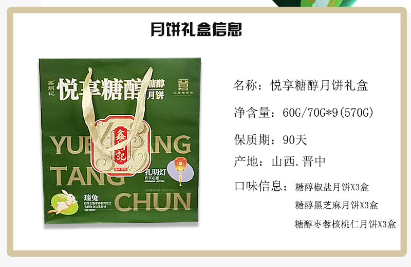 鑫炳记悦享糖醇月饼礼盒570g山西特产中秋晋式糕点礼品送人团购