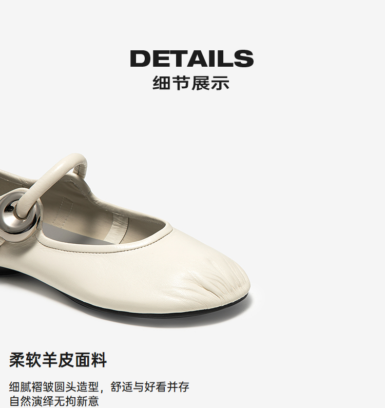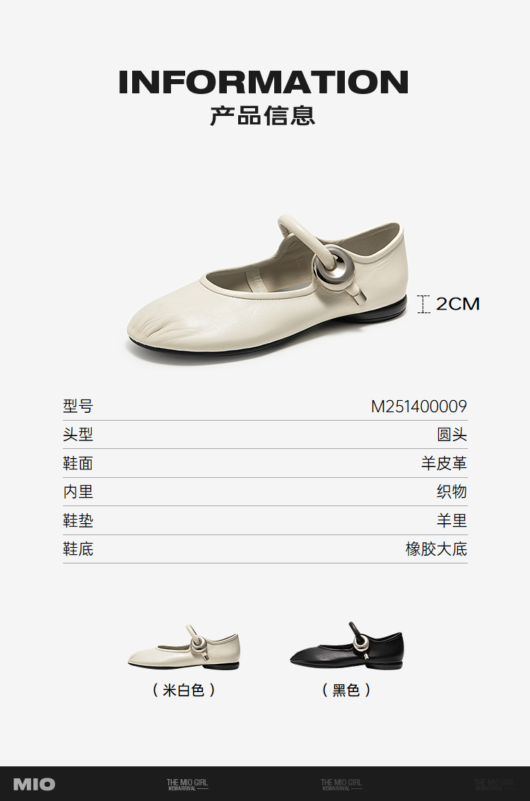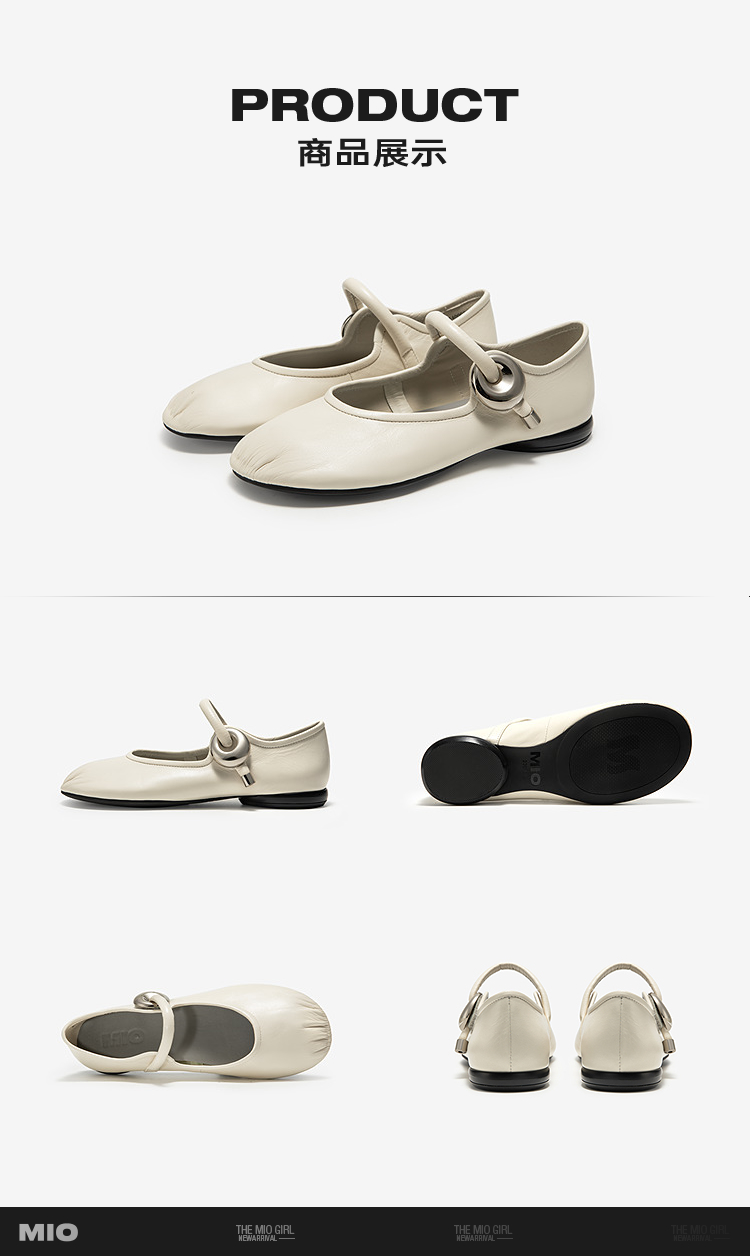MIO米奥时尚甜美玛丽珍鞋羊皮革圆头皮带扣浅口单鞋M251400009