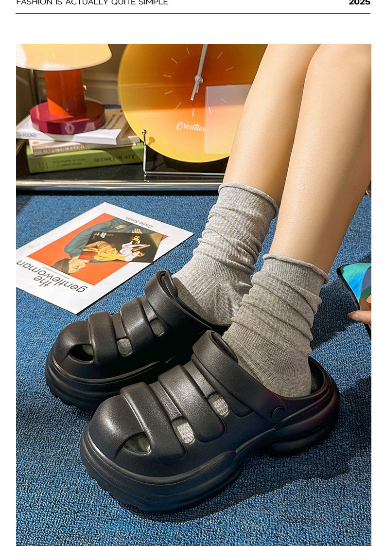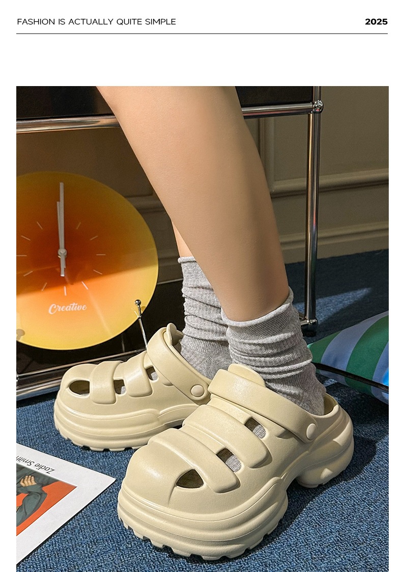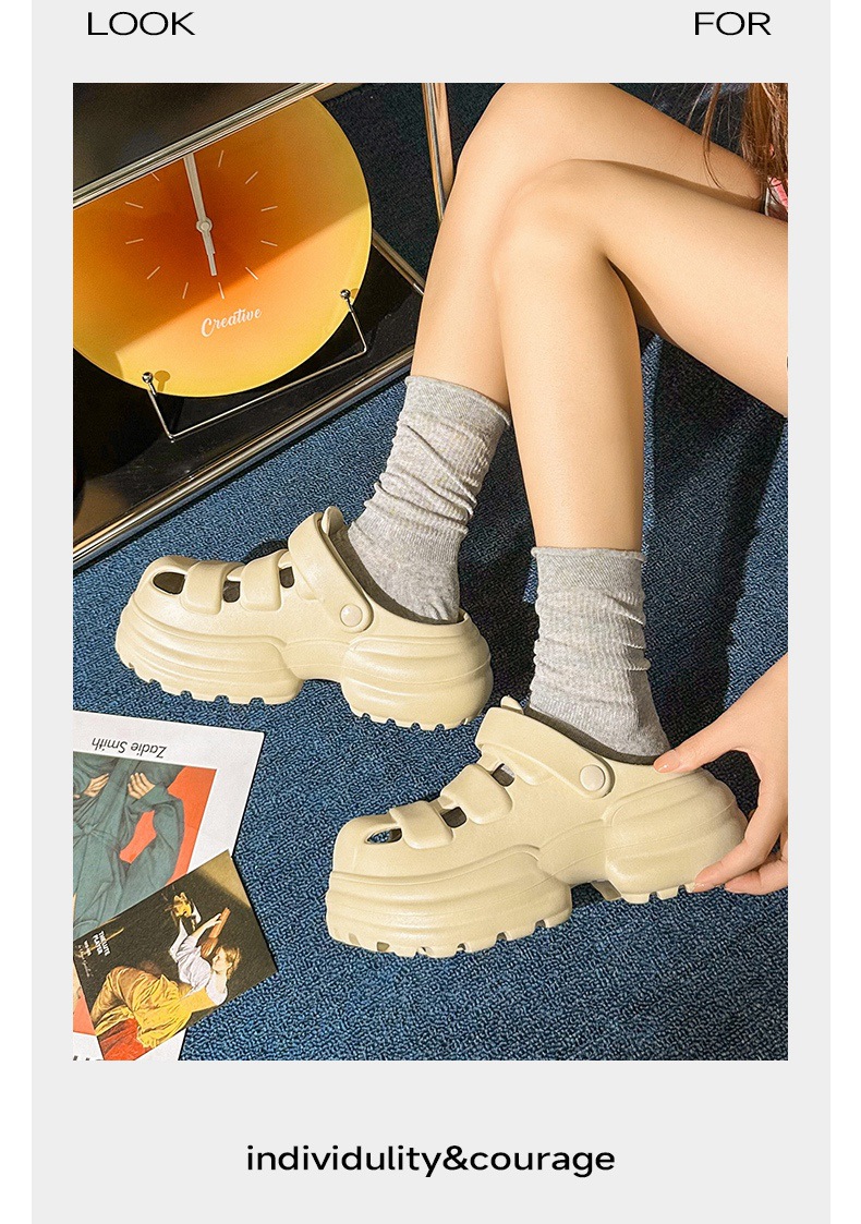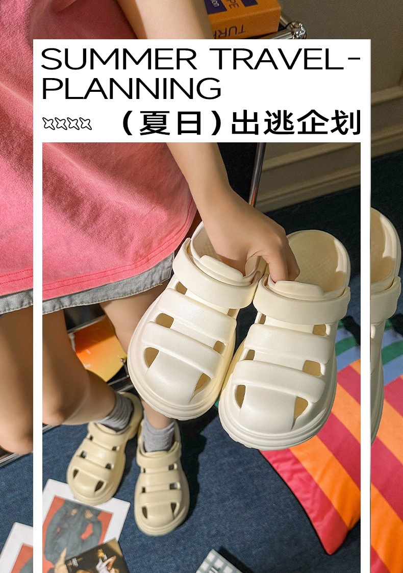 【特价39元】【36-40码】春夏新品时尚简约厚底复古外穿增高女士纯色凉拖鞋包头【WG25232】