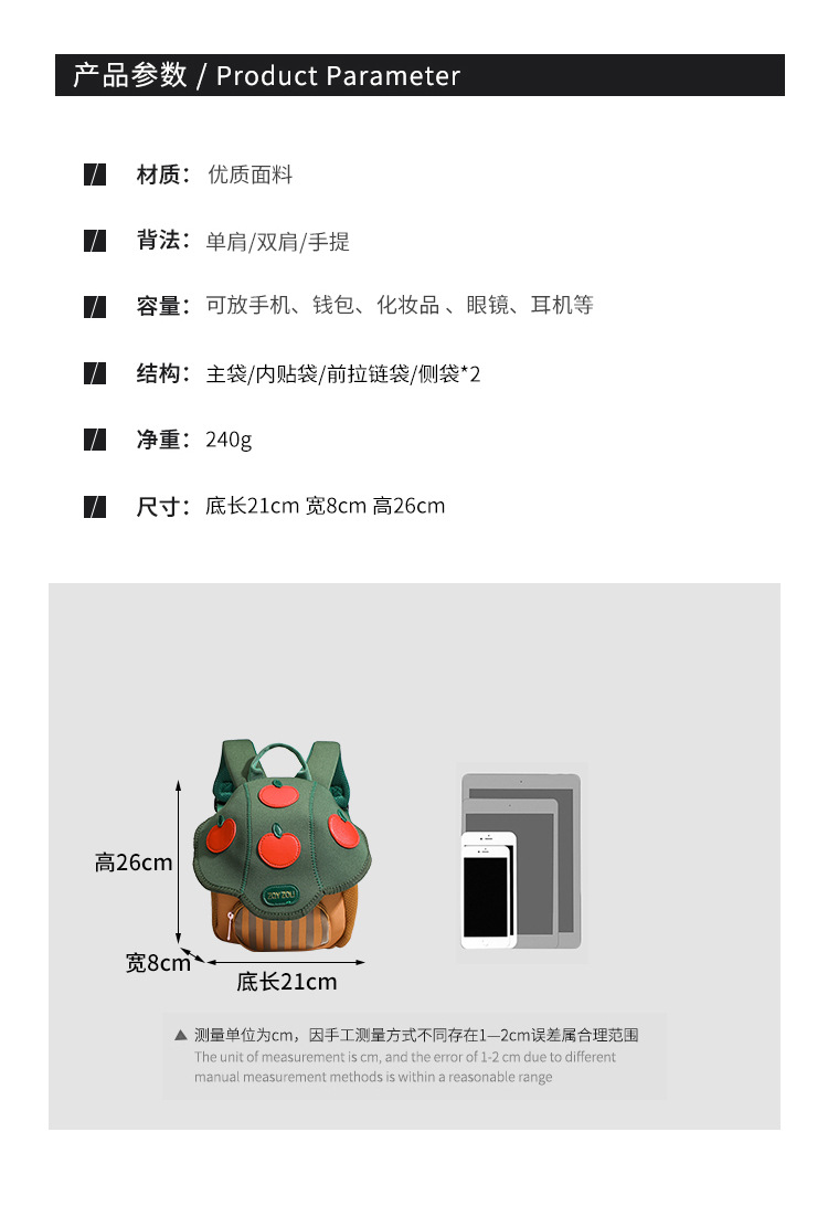 YYOE【超可爱个性蘑菇包】儿童个性幼儿园书 包男女宝宝出游背包 卡通轻便新款旅行包 出行拍照必备潮品
