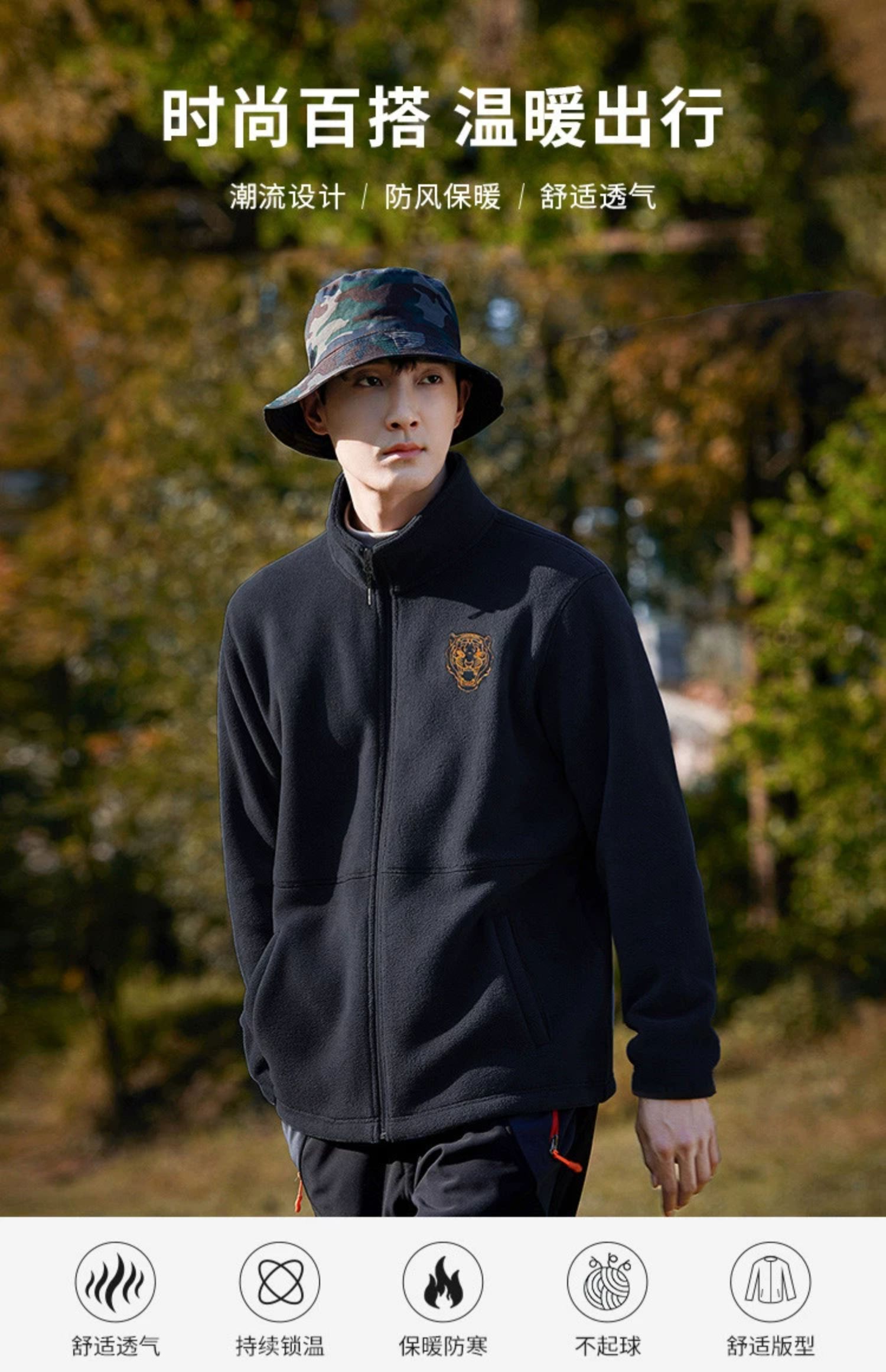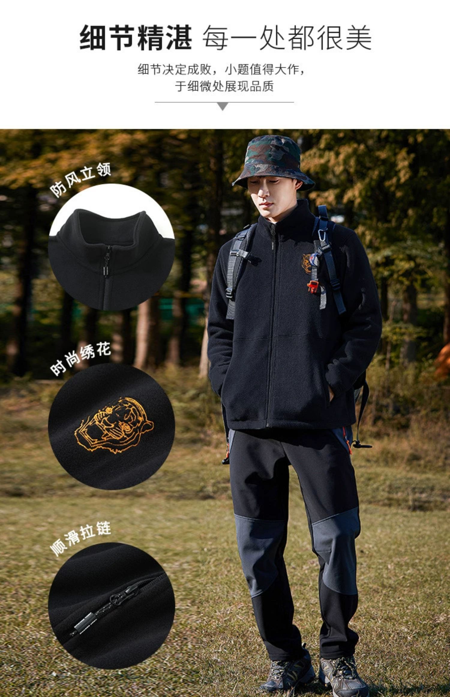 拓路者秋冬季摇粒绒外套男双面绒抓绒衣加厚冲锋衣内胆保暖开衫