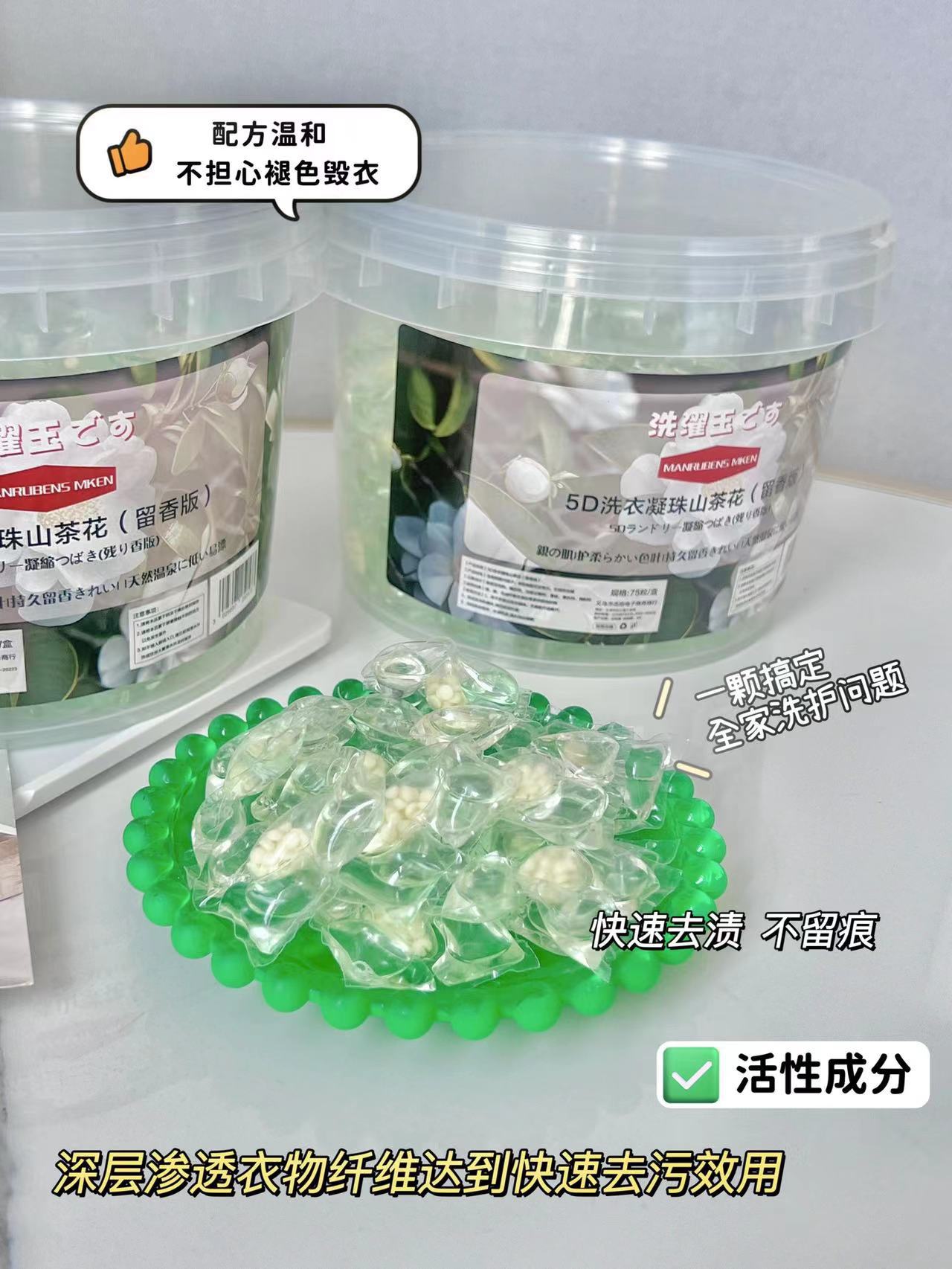 「山姆同款!75粒装」MANRUBENS MKEN5D洗衣凝珠山茶花(留香版)一桶75粒 居家日用清洁工具