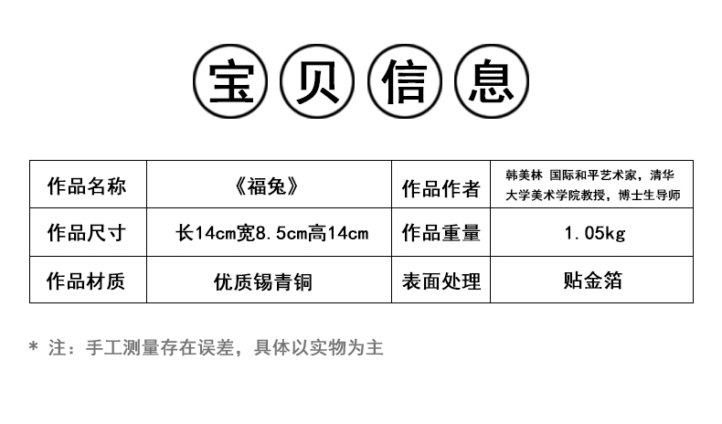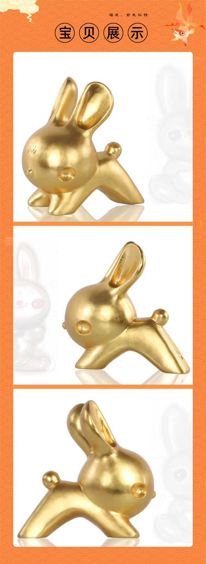 宇达兔年新作 著名艺术家韩美林作品 青铜贴金《福兔》艺术品摆件