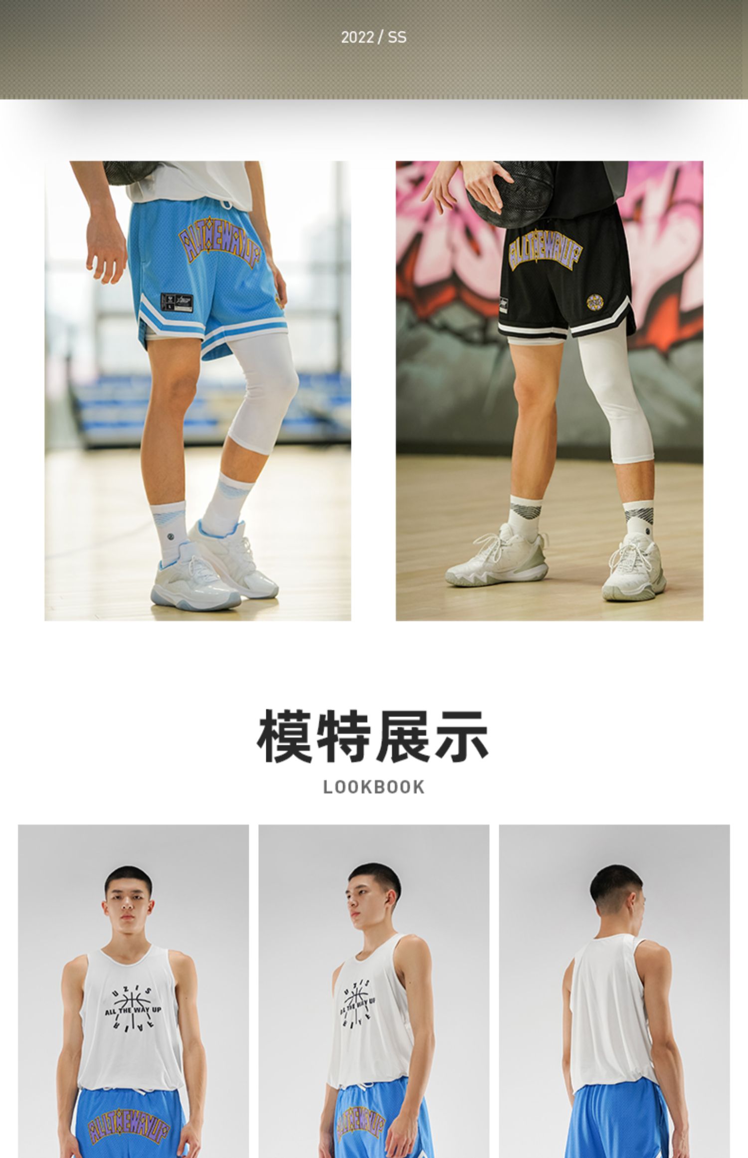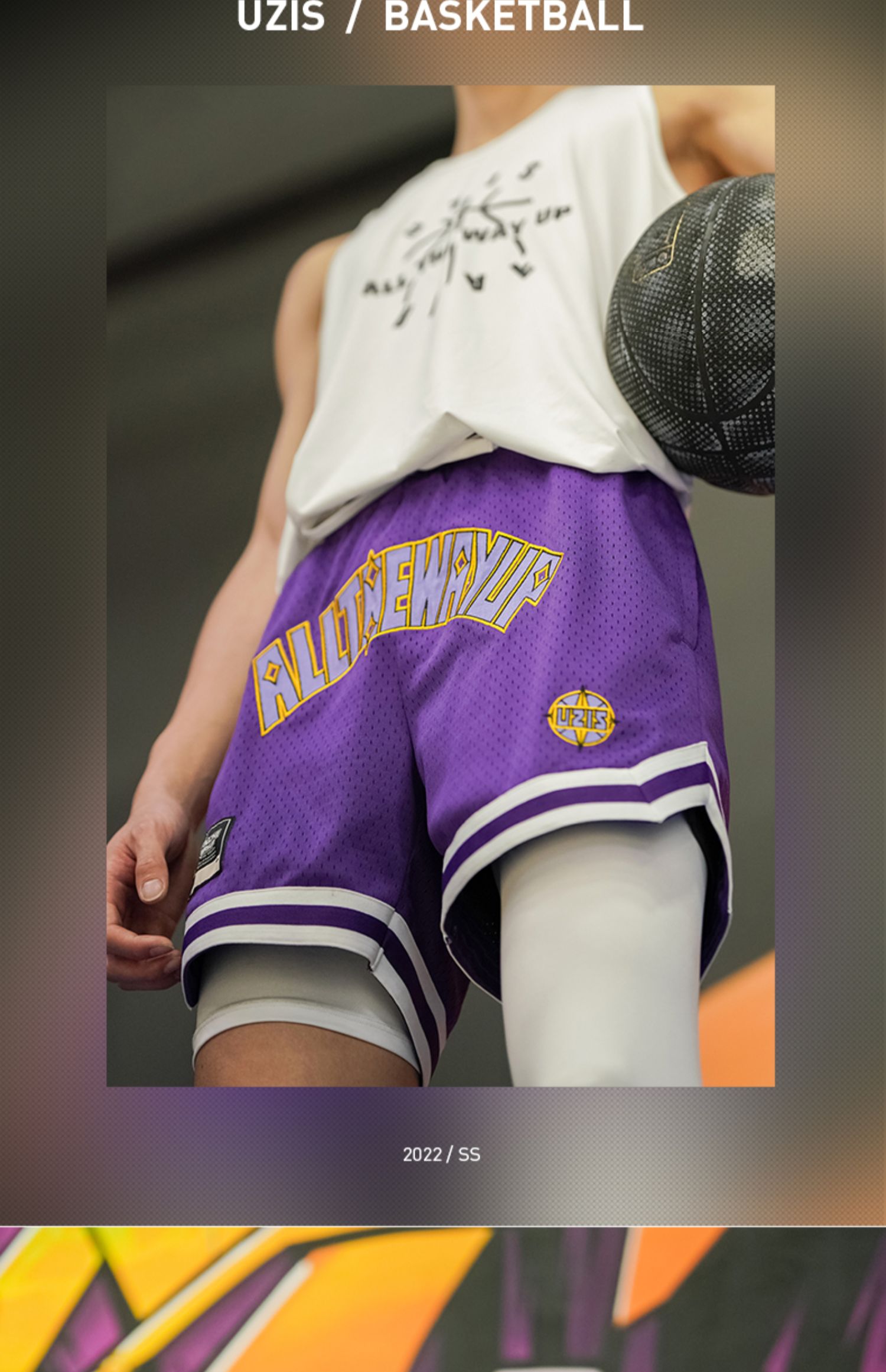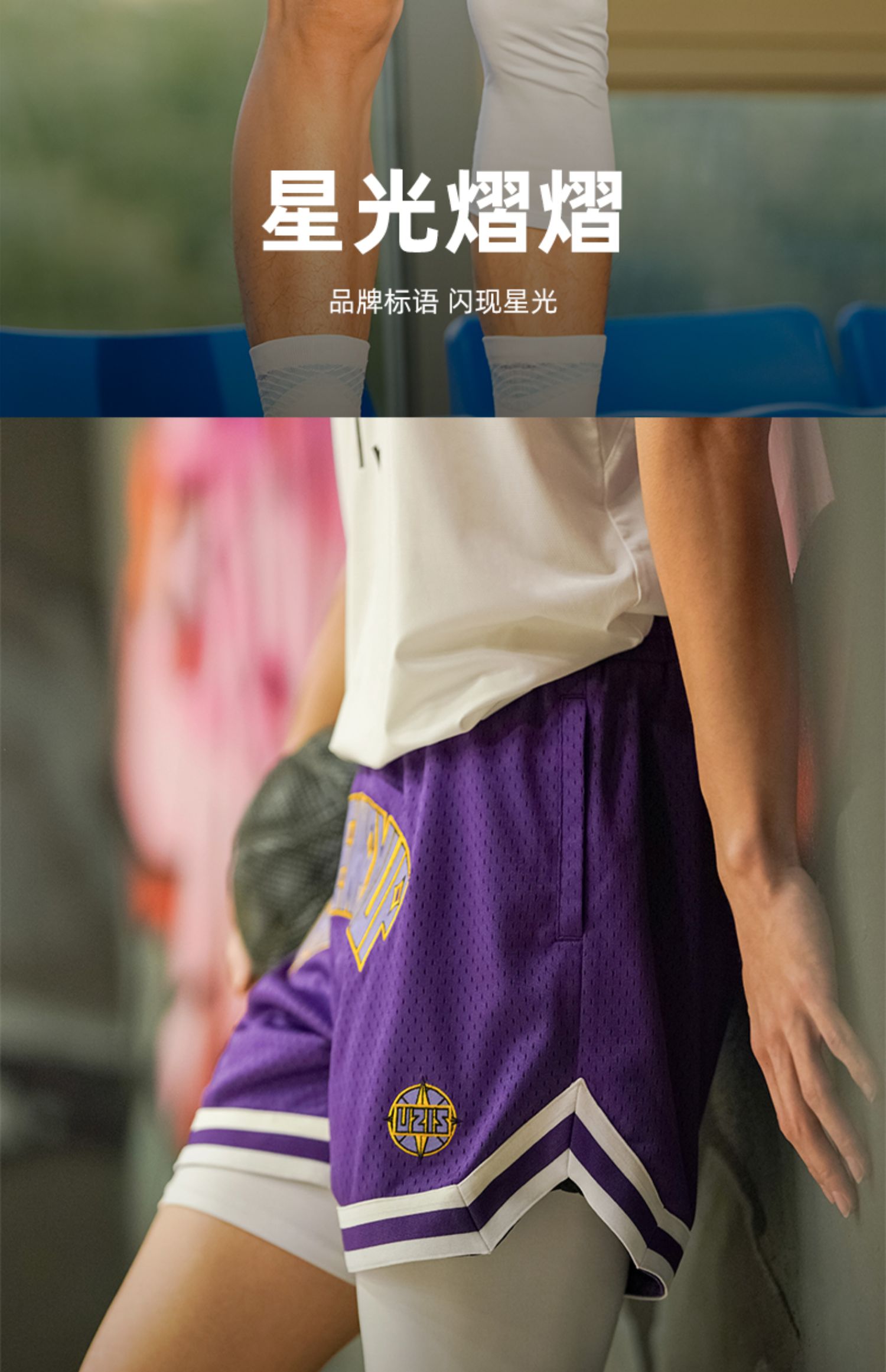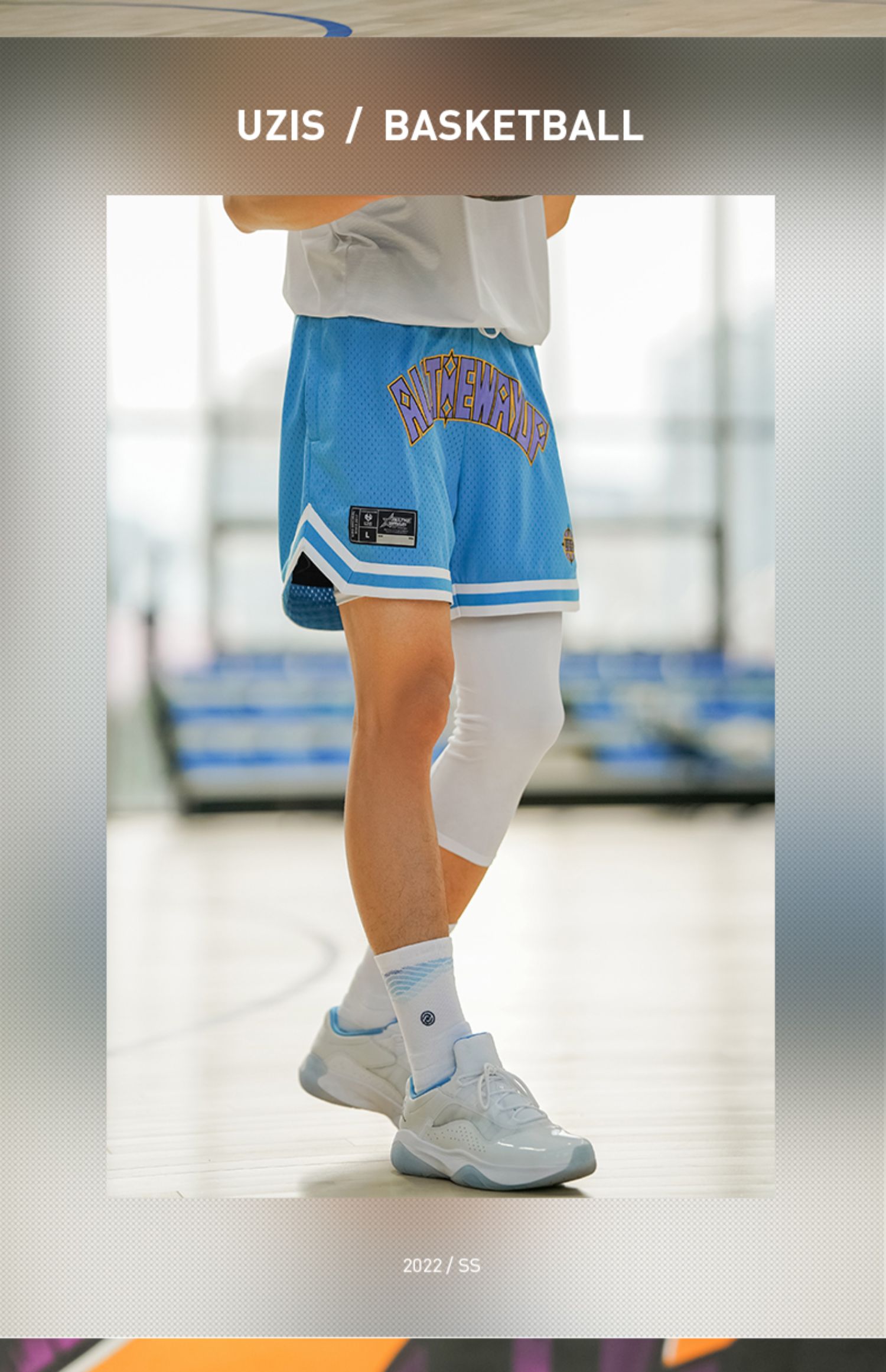 无界 UZIS篮球美式小短裤男夏季针织网眼不过膝复古健身球裤星芒