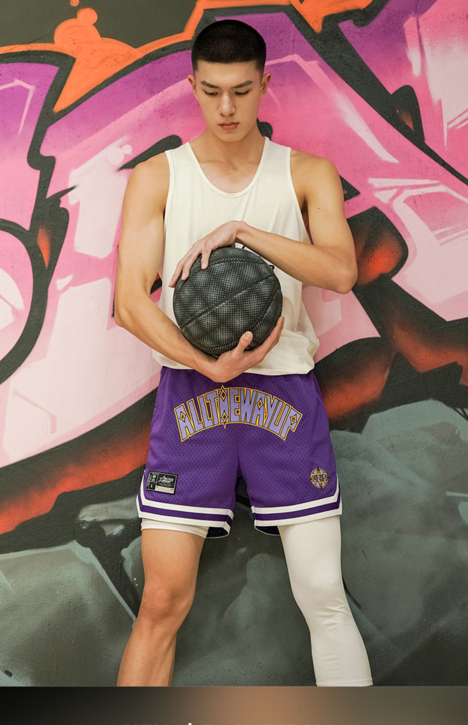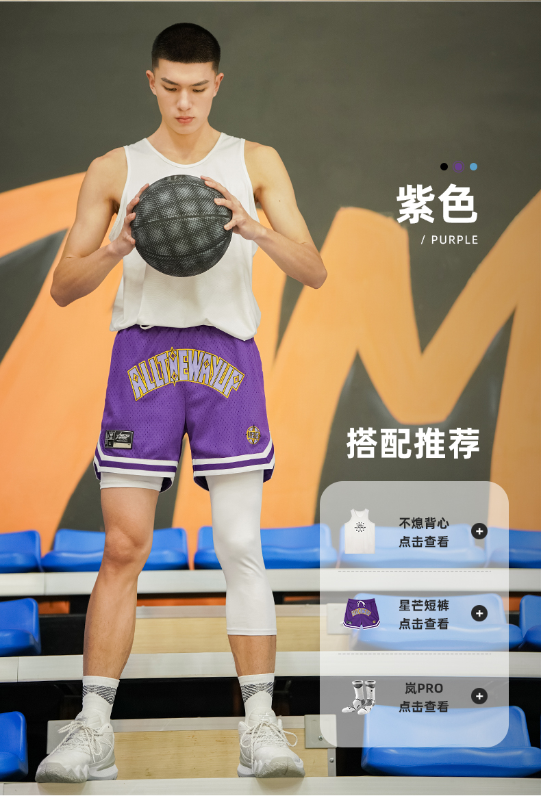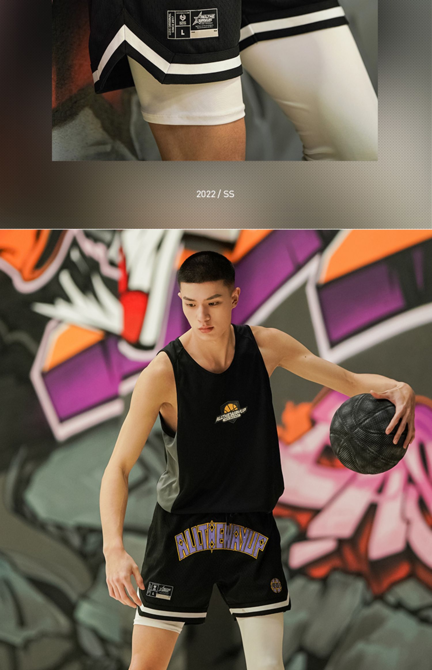 无界 UZIS篮球美式小短裤男夏季针织网眼不过膝复古健身球裤星芒