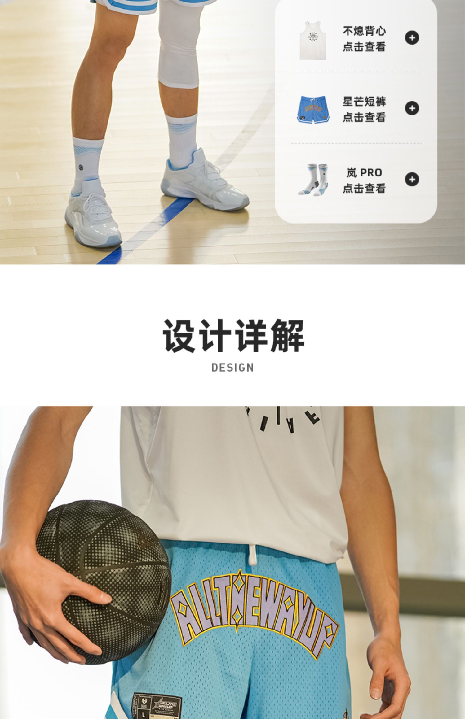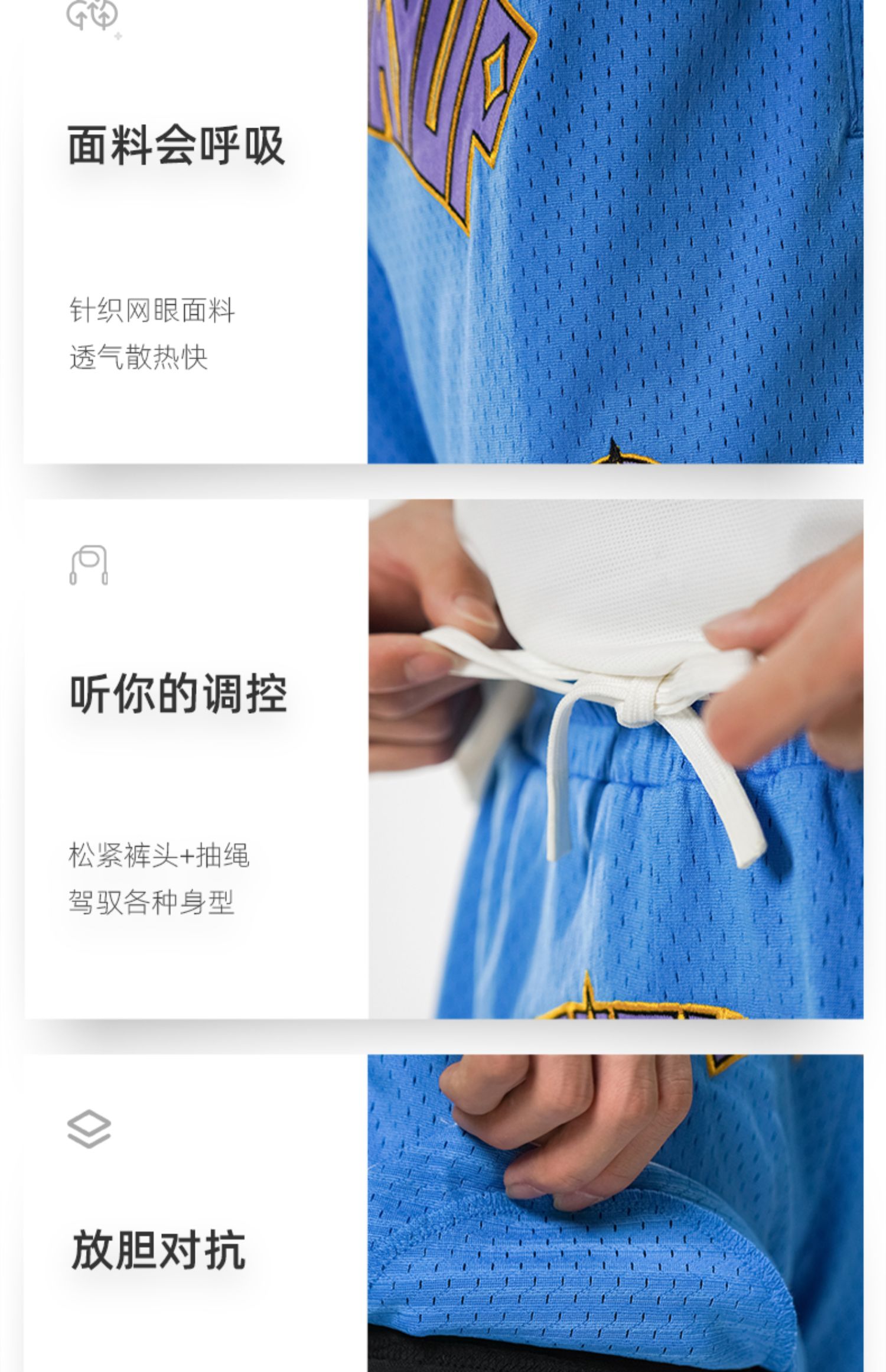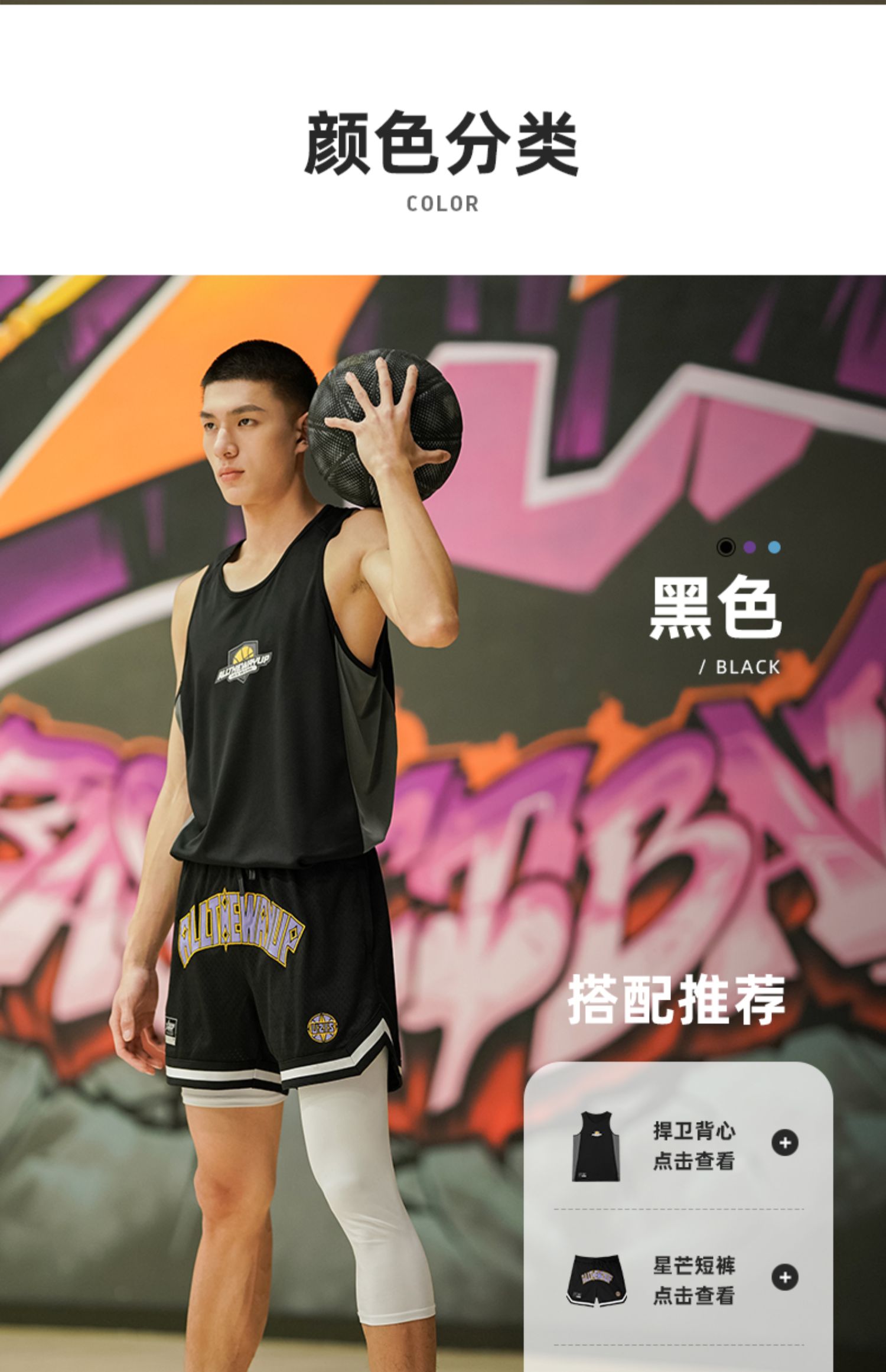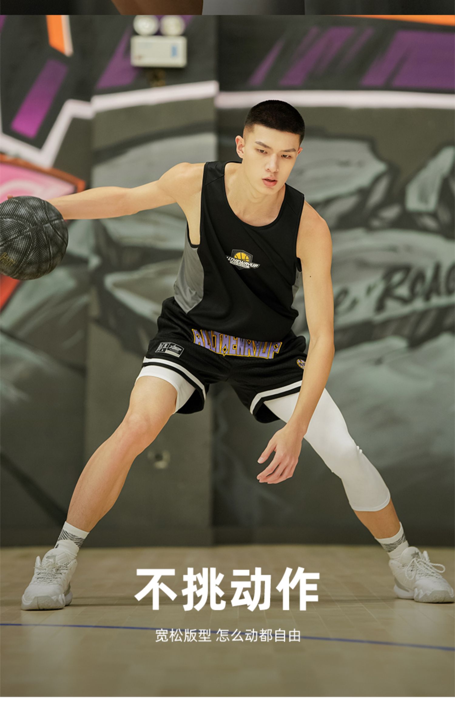 无界 UZIS篮球美式小短裤男夏季针织网眼不过膝复古健身球裤星芒