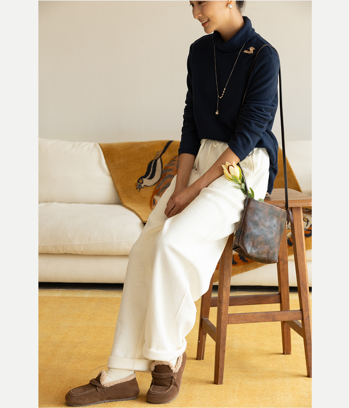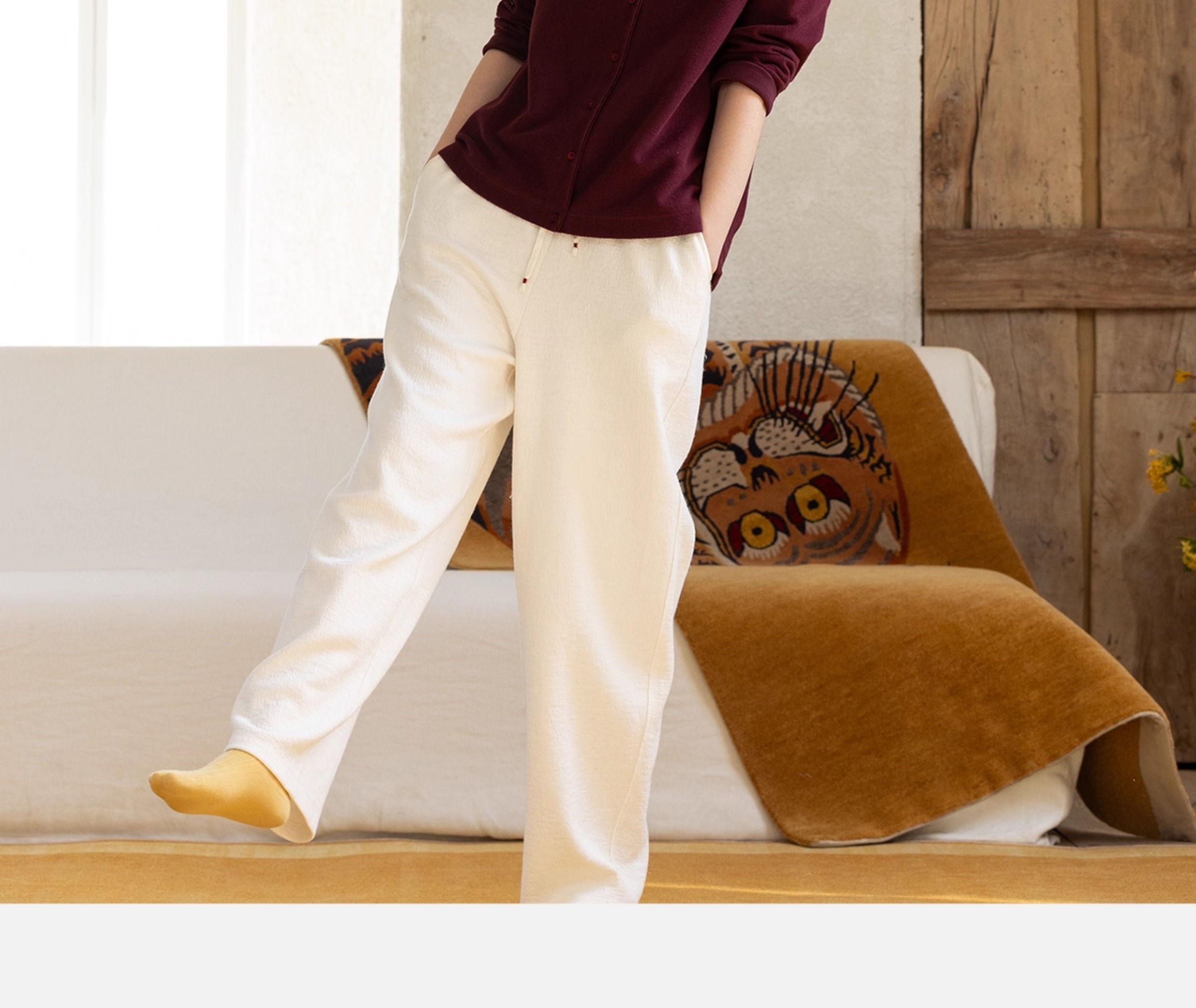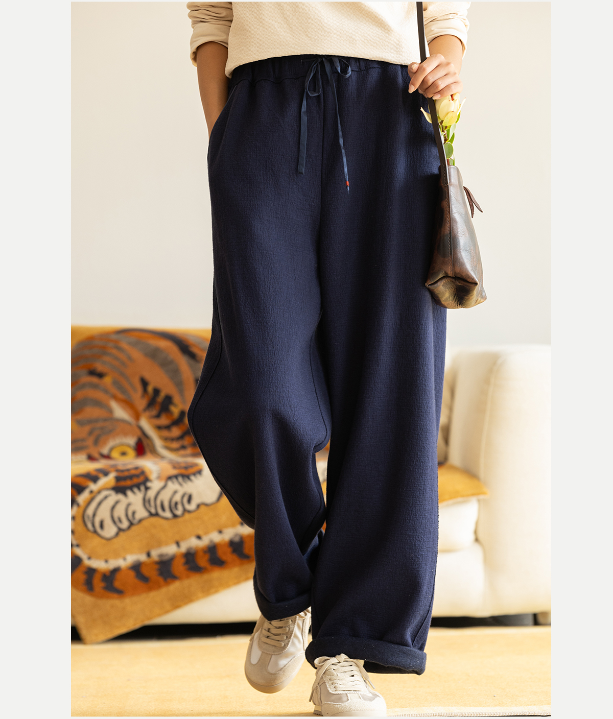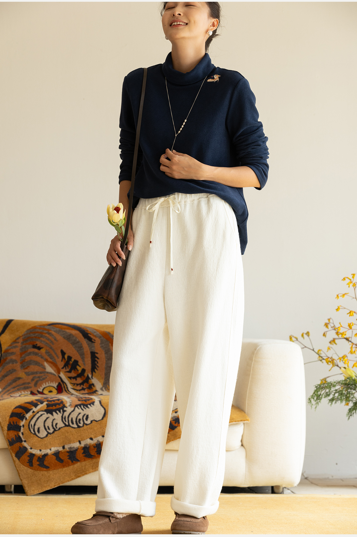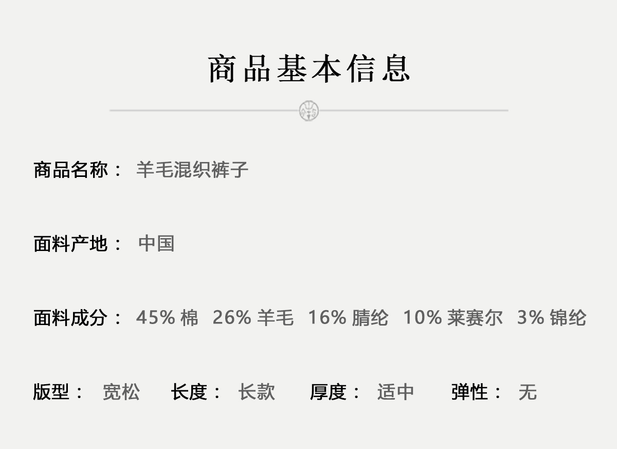 牧衣游原创 羊毛混织裤子女新款舒适柔软宽松保暖百搭休闲裤 谣曲