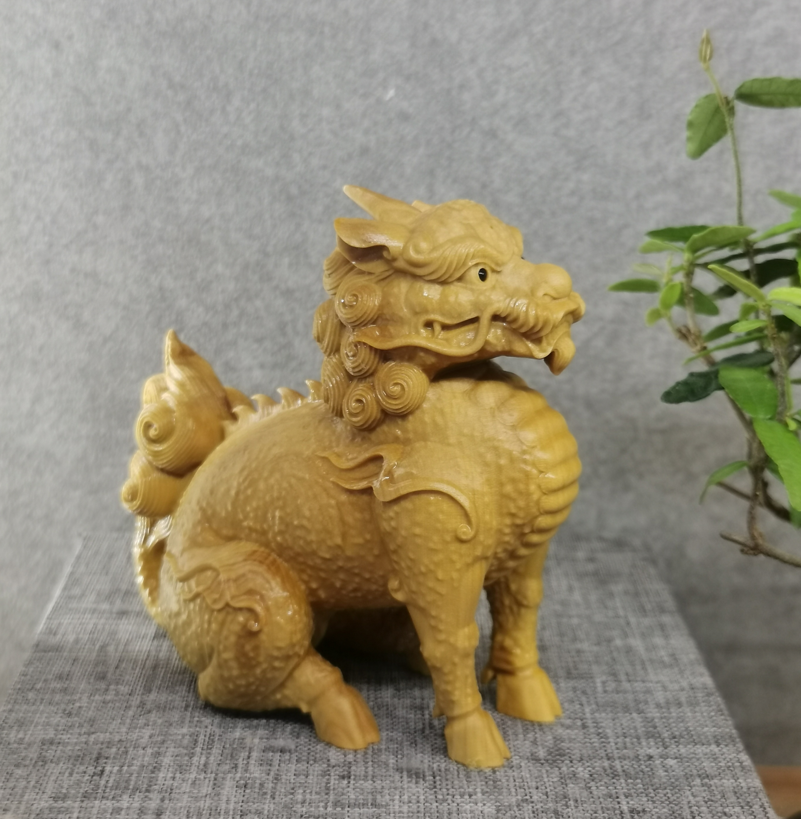 黄杨木小麒麟摆件