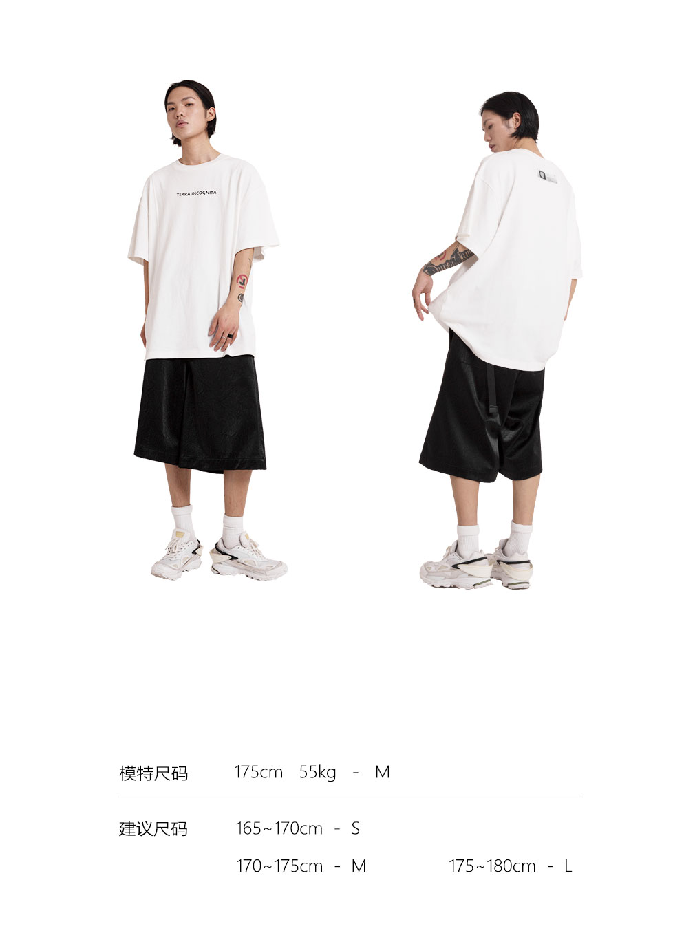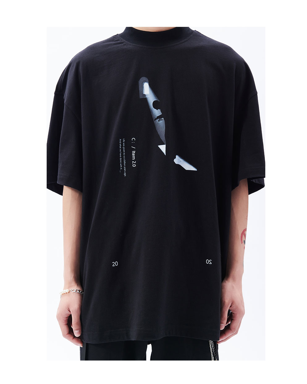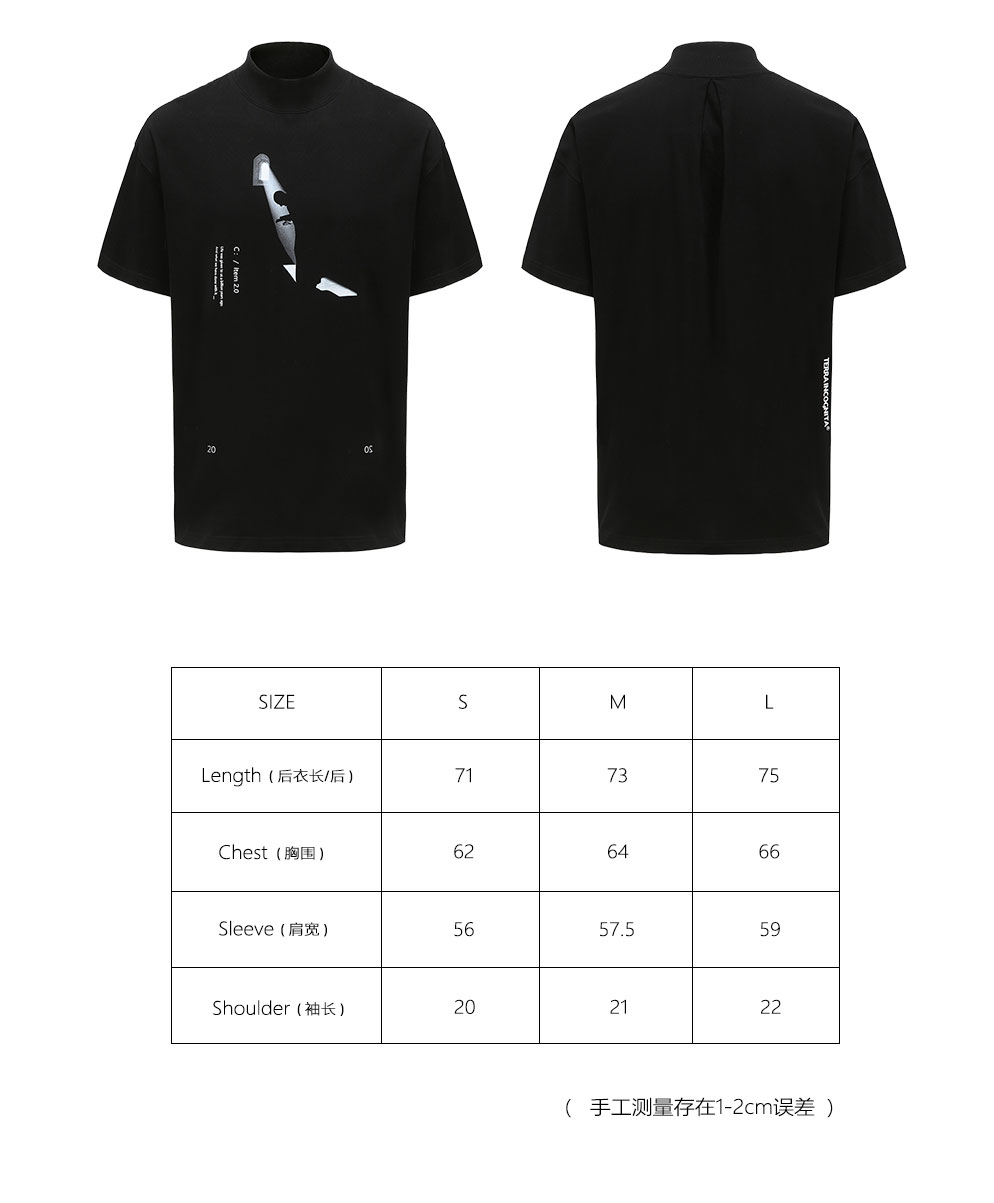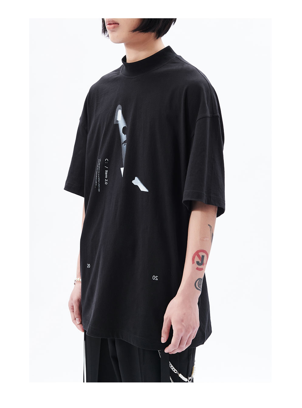 TERRAINCOGNITA20SS印花宽松褶皱微高领短袖男潮流高级感T恤百搭