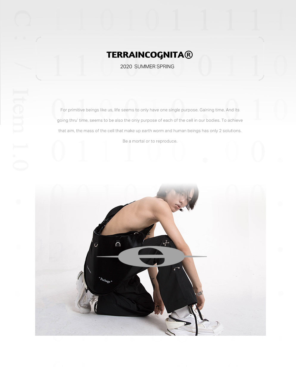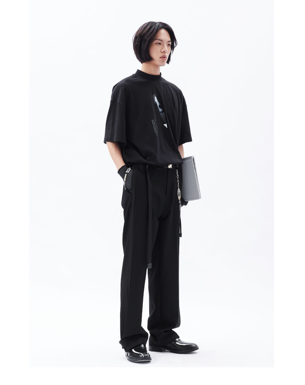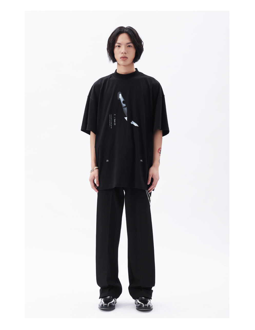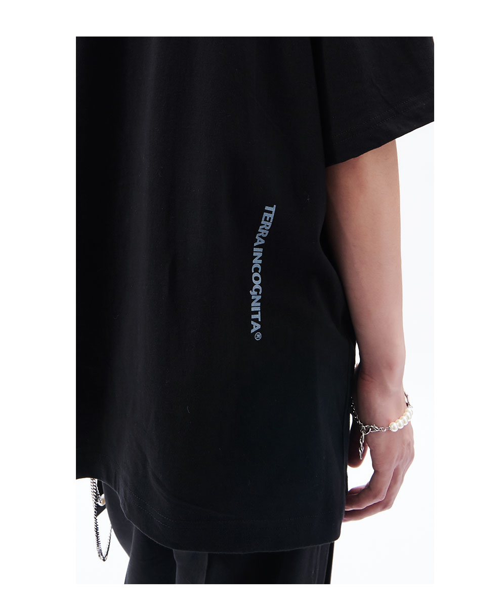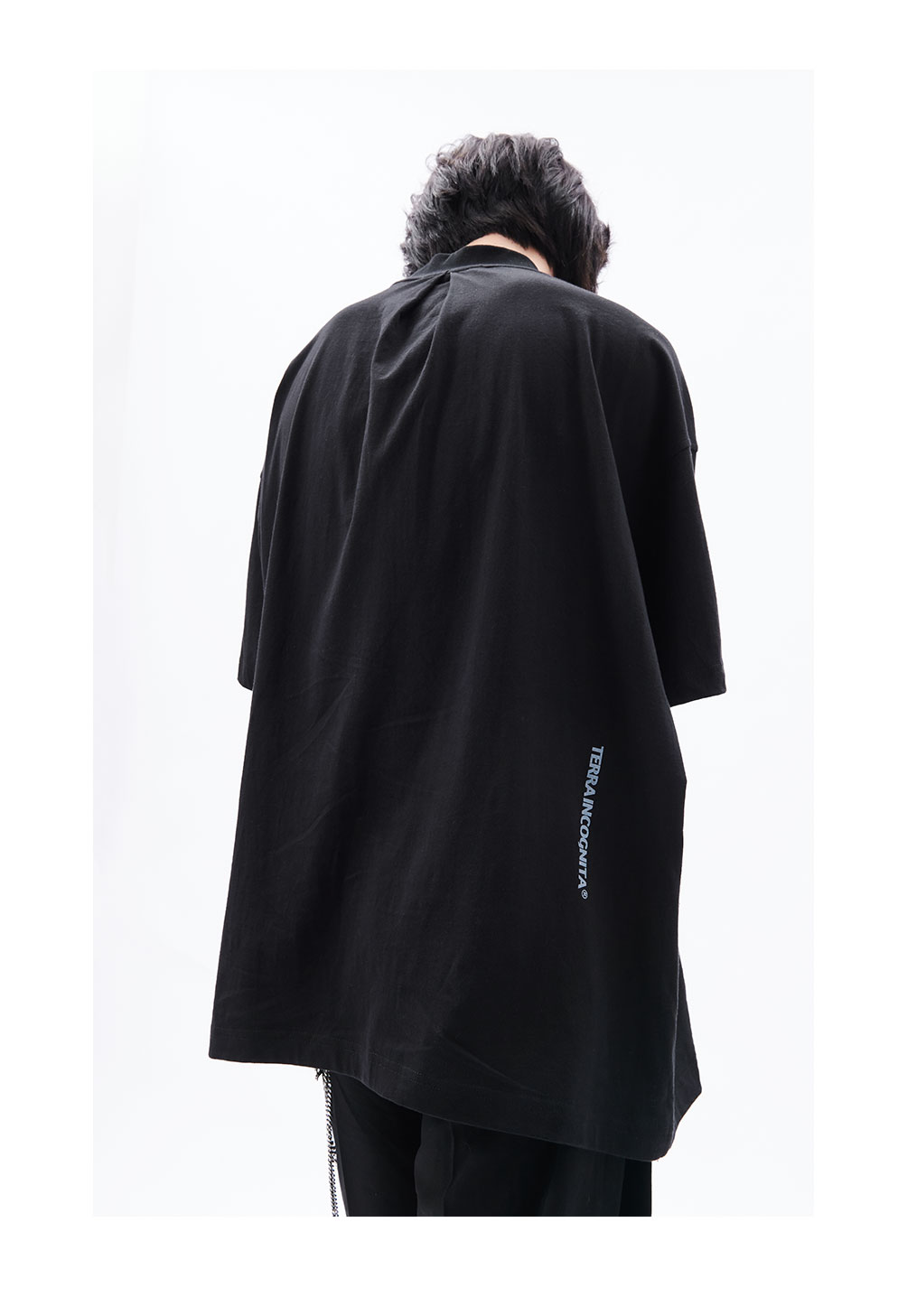 TERRAINCOGNITA20SS印花宽松褶皱微高领短袖男潮流高级感T恤百搭