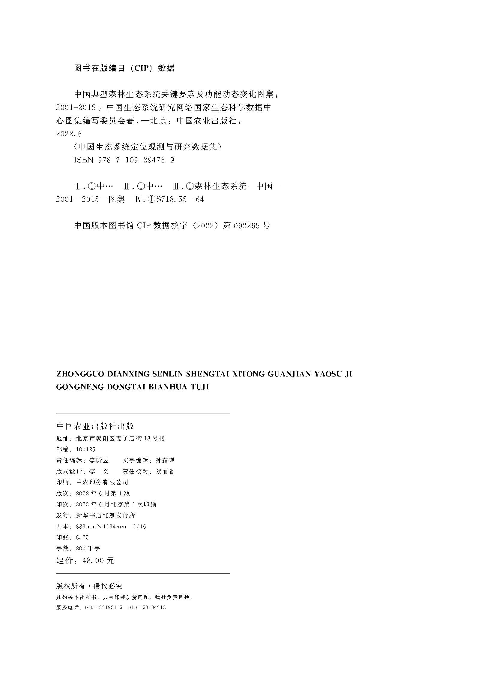 中国典型森林生态系统关键要素及功能动态变化图集(2001-2015)